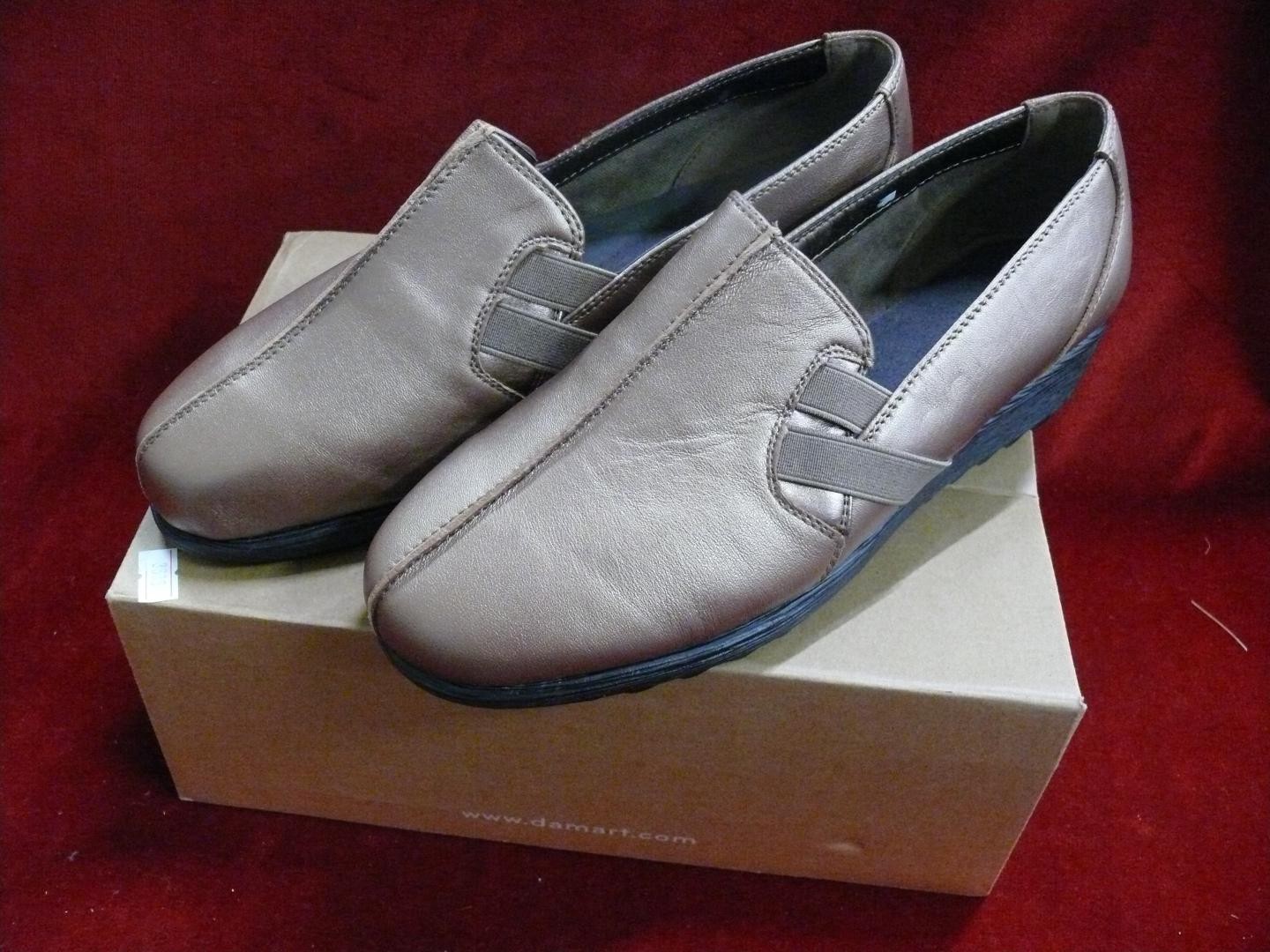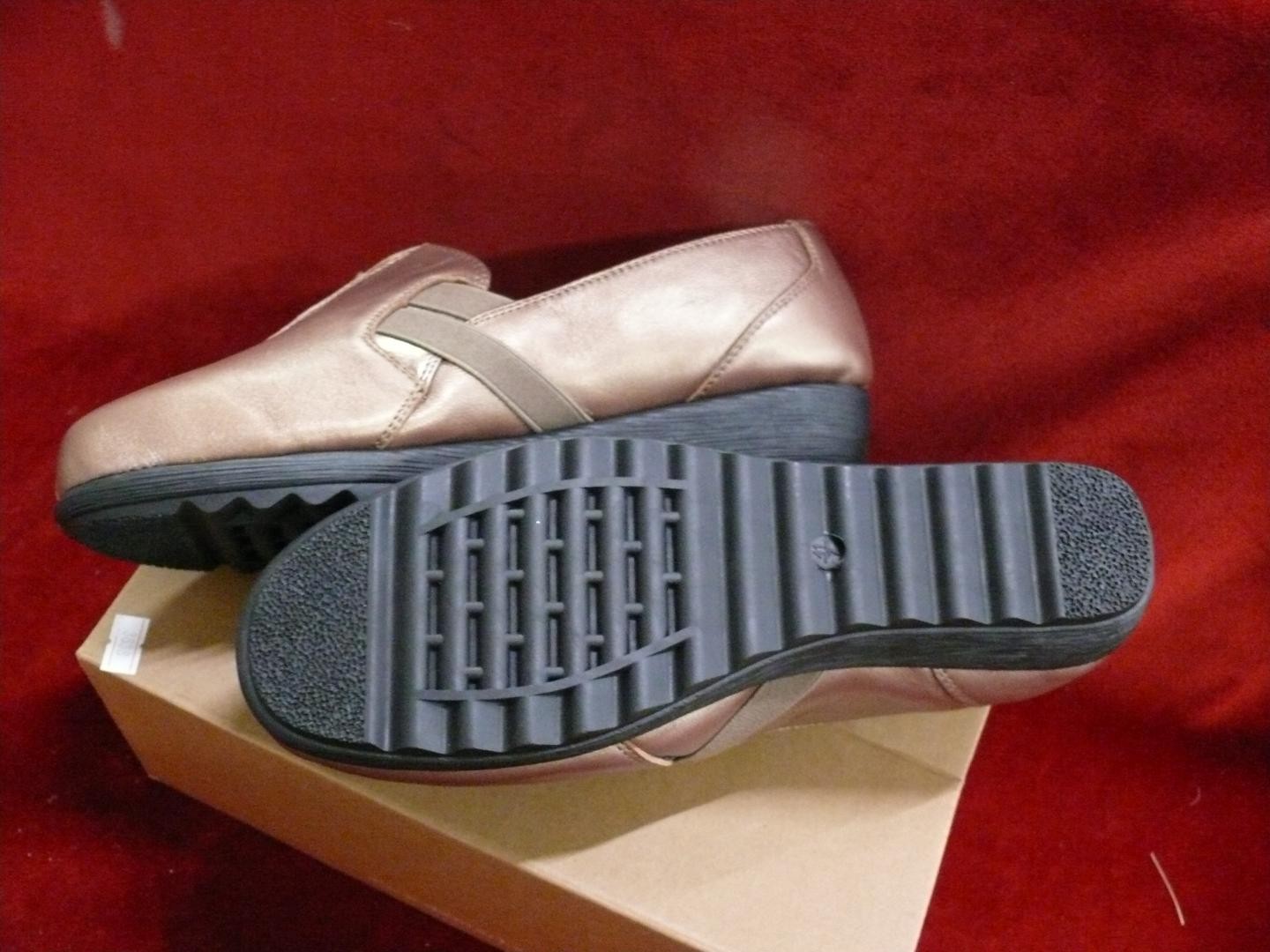Damart, pair of ladies Bronze slip on shoes, new and boxed, size 7