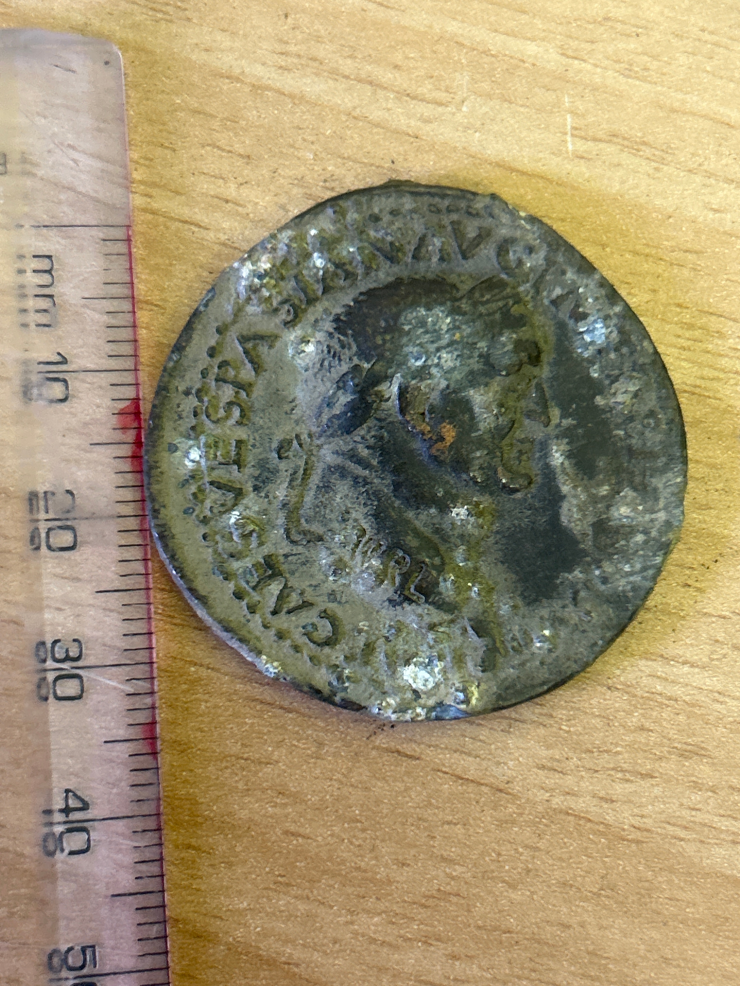 Roman coin Vespasian AD 69-79. A.E Dupondius. Laureate head with Roma seated.35mm dia, weight 19.5 grams