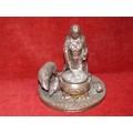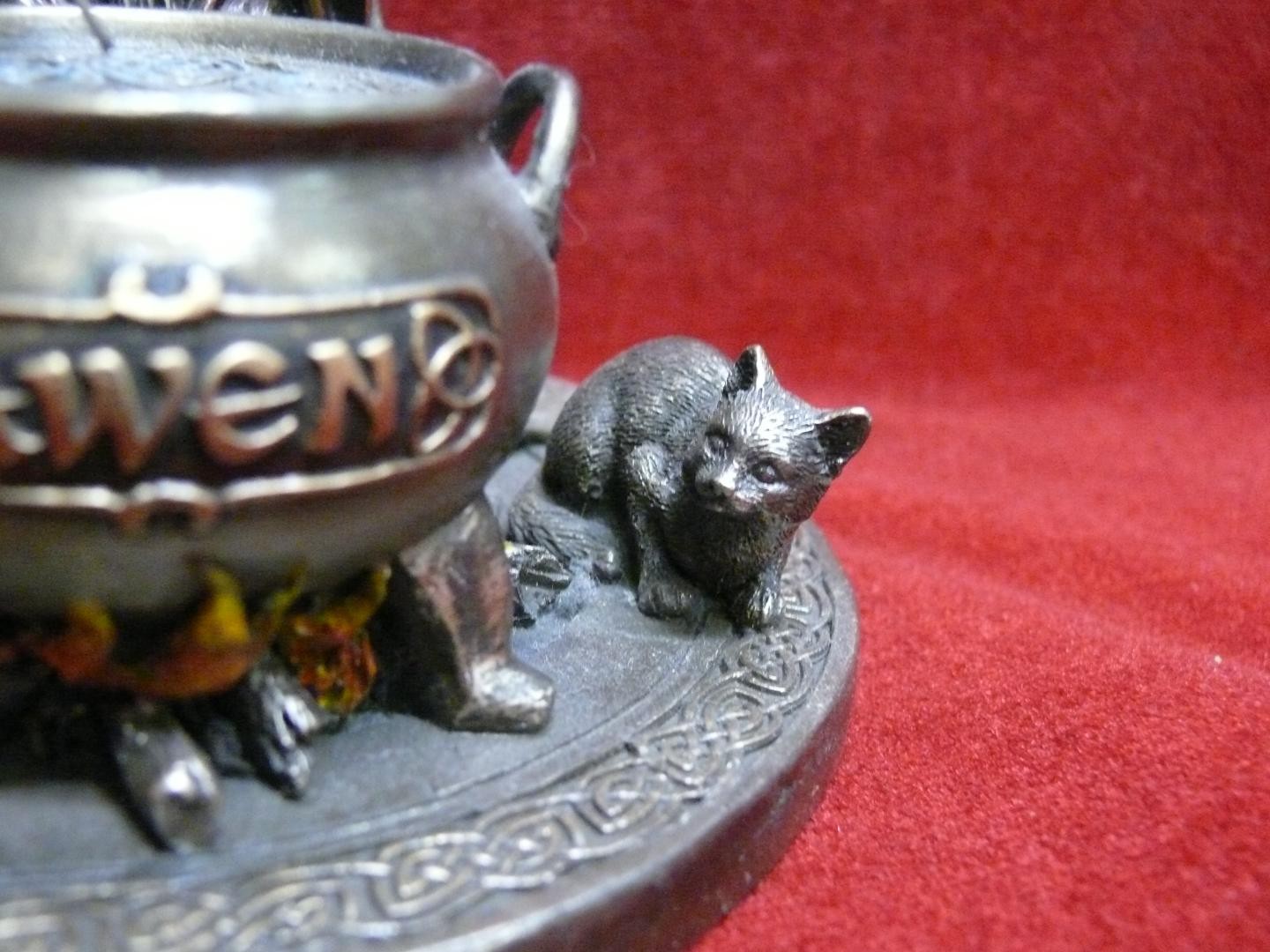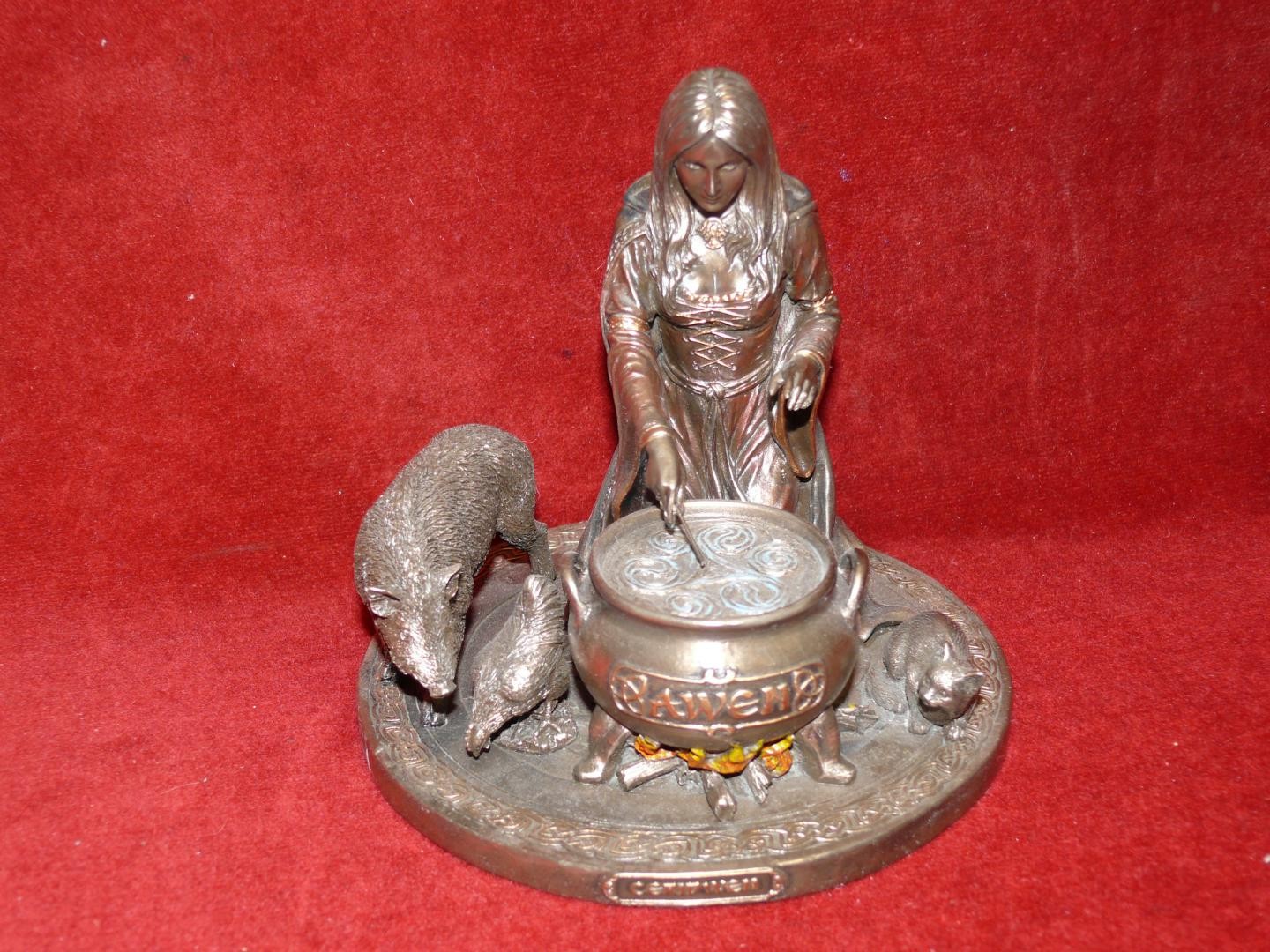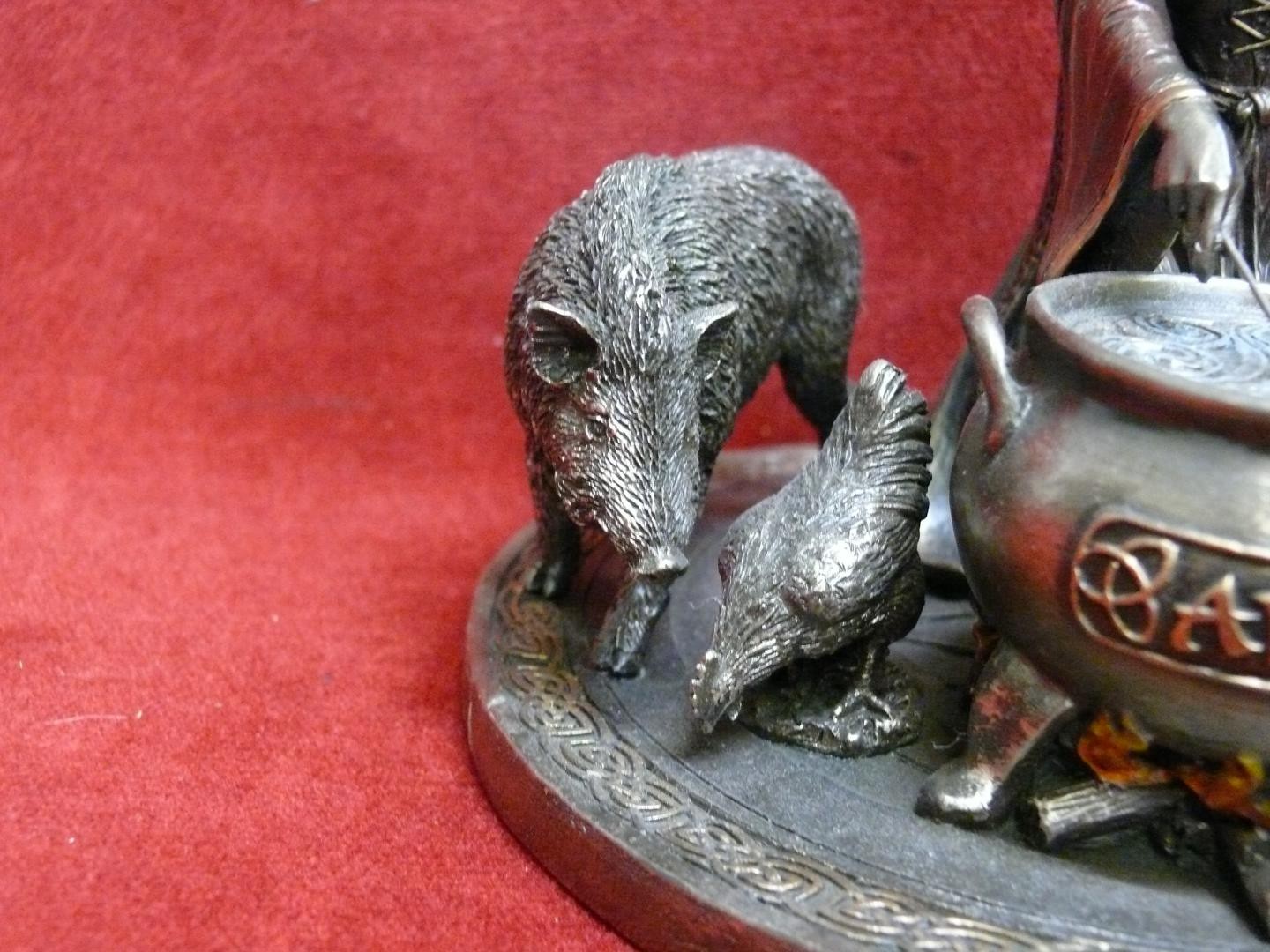 A FIGURINE OR DRUID WITCH WITH HER FAMILIARS AROUND