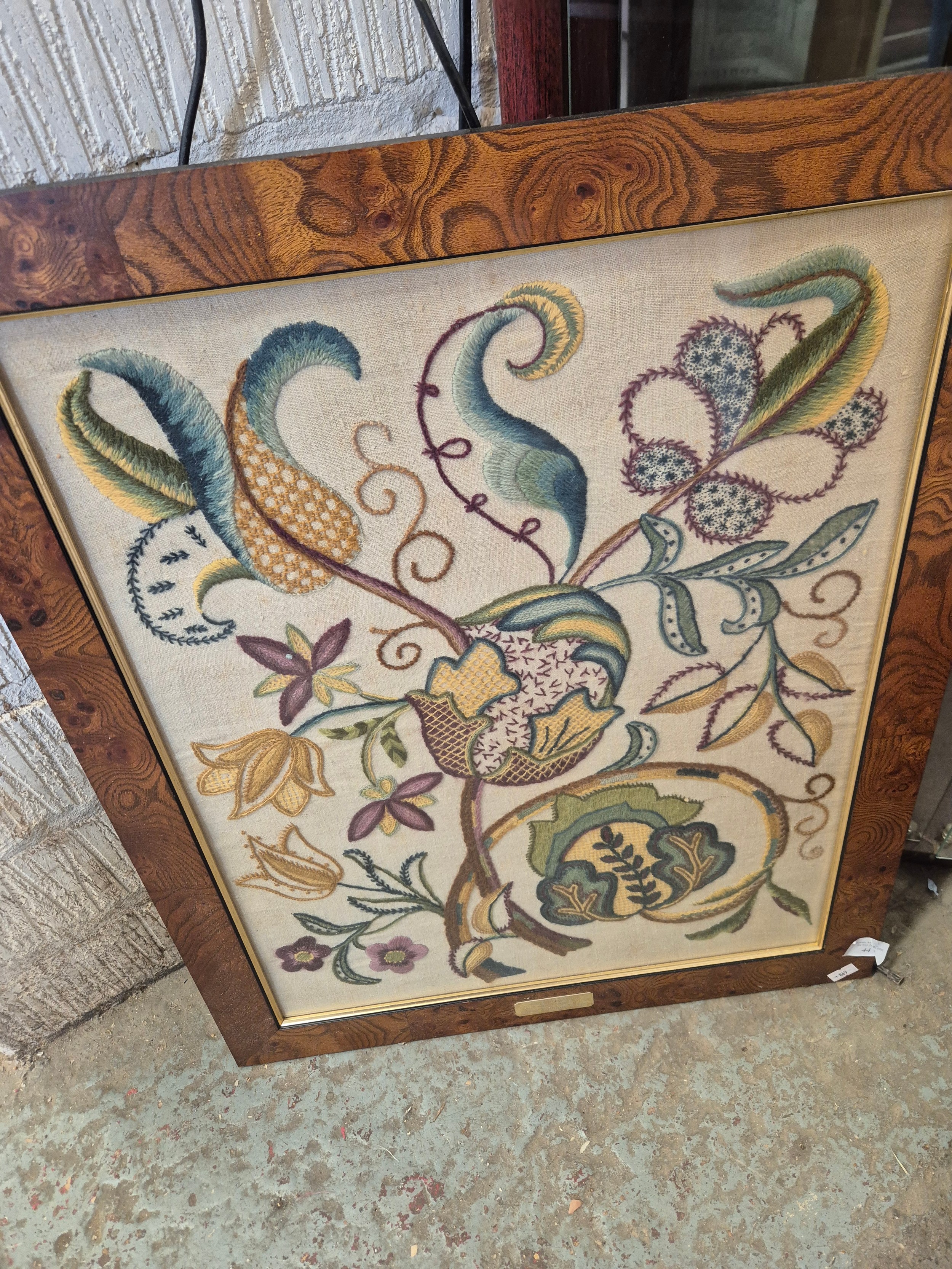 ORIGINAL WOOLWORK FRAMED PICTURE IN THE JACOBEAN STYLE BY ETHEL WOOD, LITTLE WALTHAM