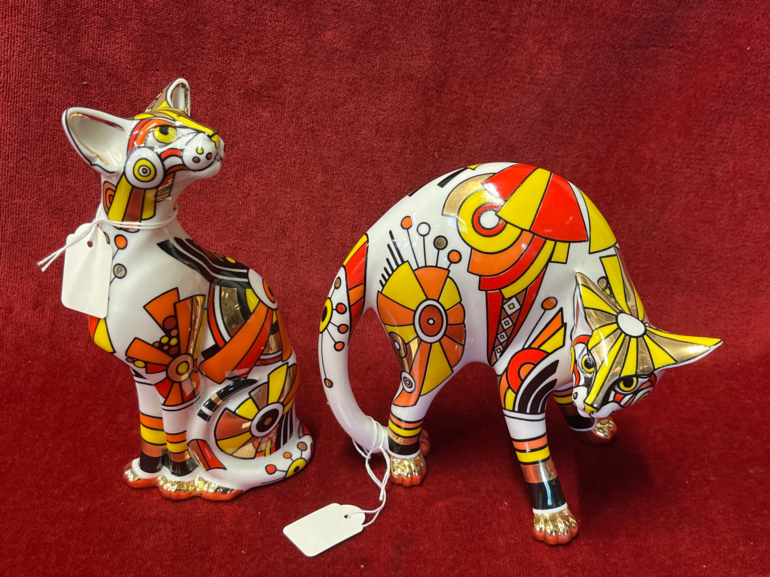 Pair of Art Deco 'Cool Catz' figurines by Paul Cardew Designs, both new with boxes