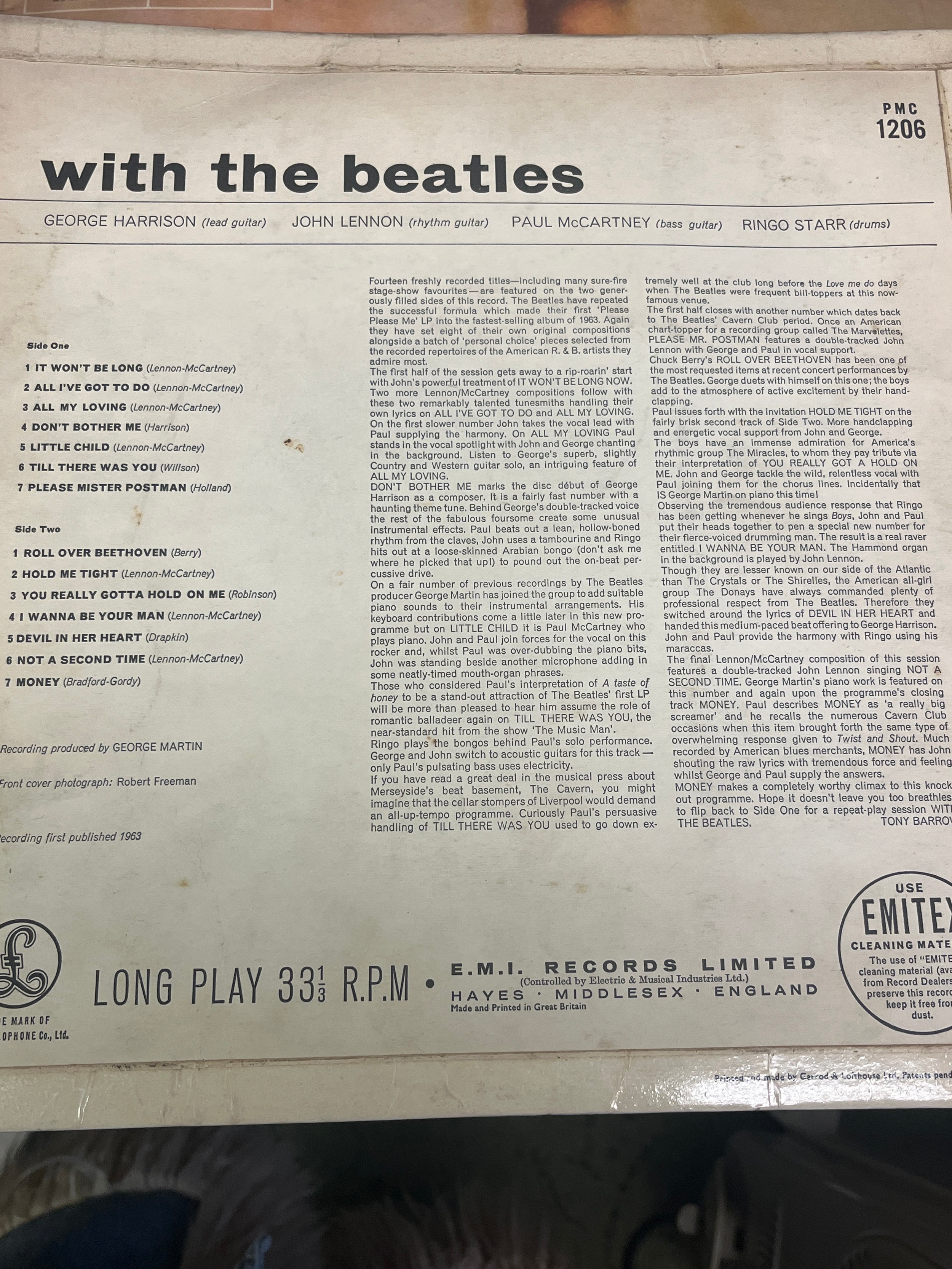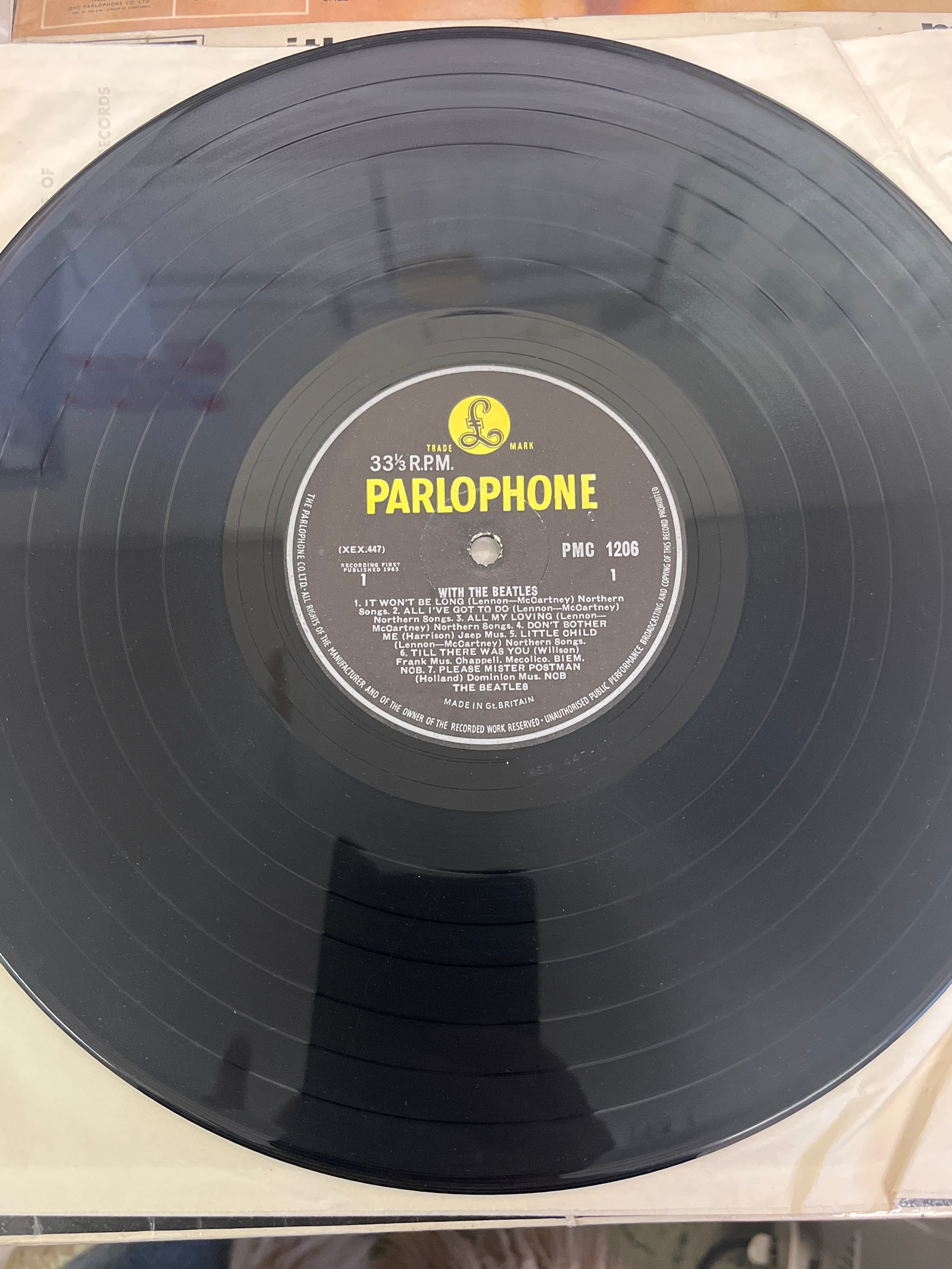 1963 Beatles LP "With The Beatles" has rare jobete credit at end of track Money, Misspelling "Gotta" on both sleeve and label PMC 1206 XEX 447-IN 448-IN Side 1 2 - MG Side 2 1-GD