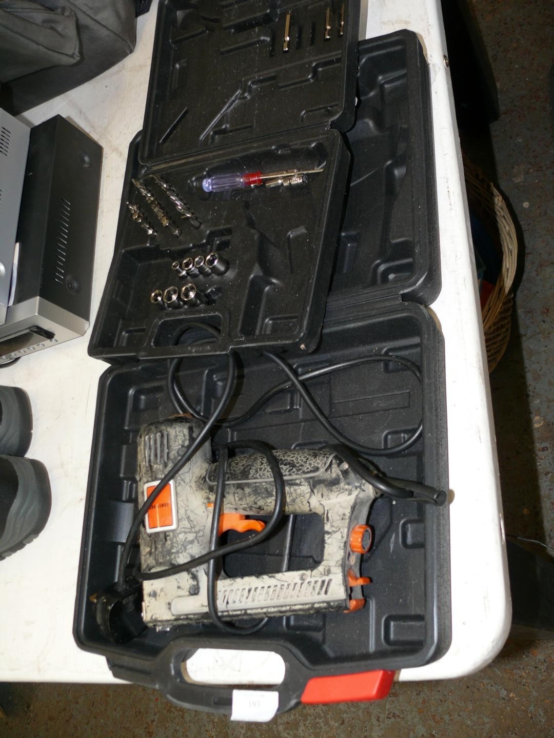 A CHALLENGE STAPLE GUN PLUS DRILL BITS ETC