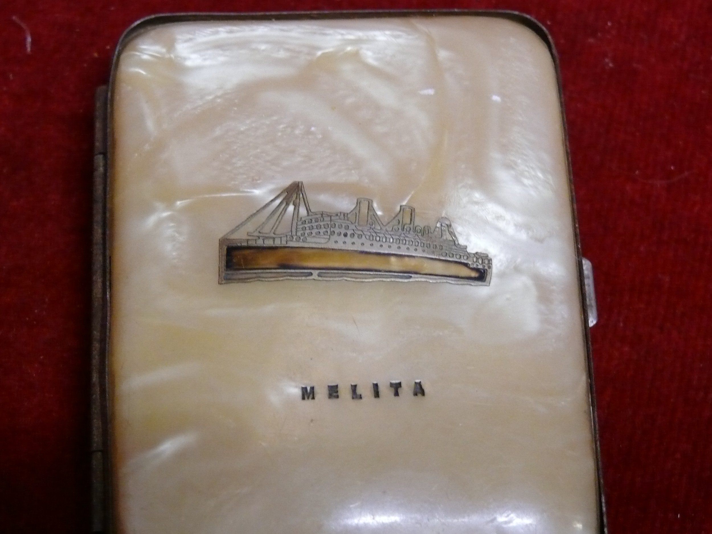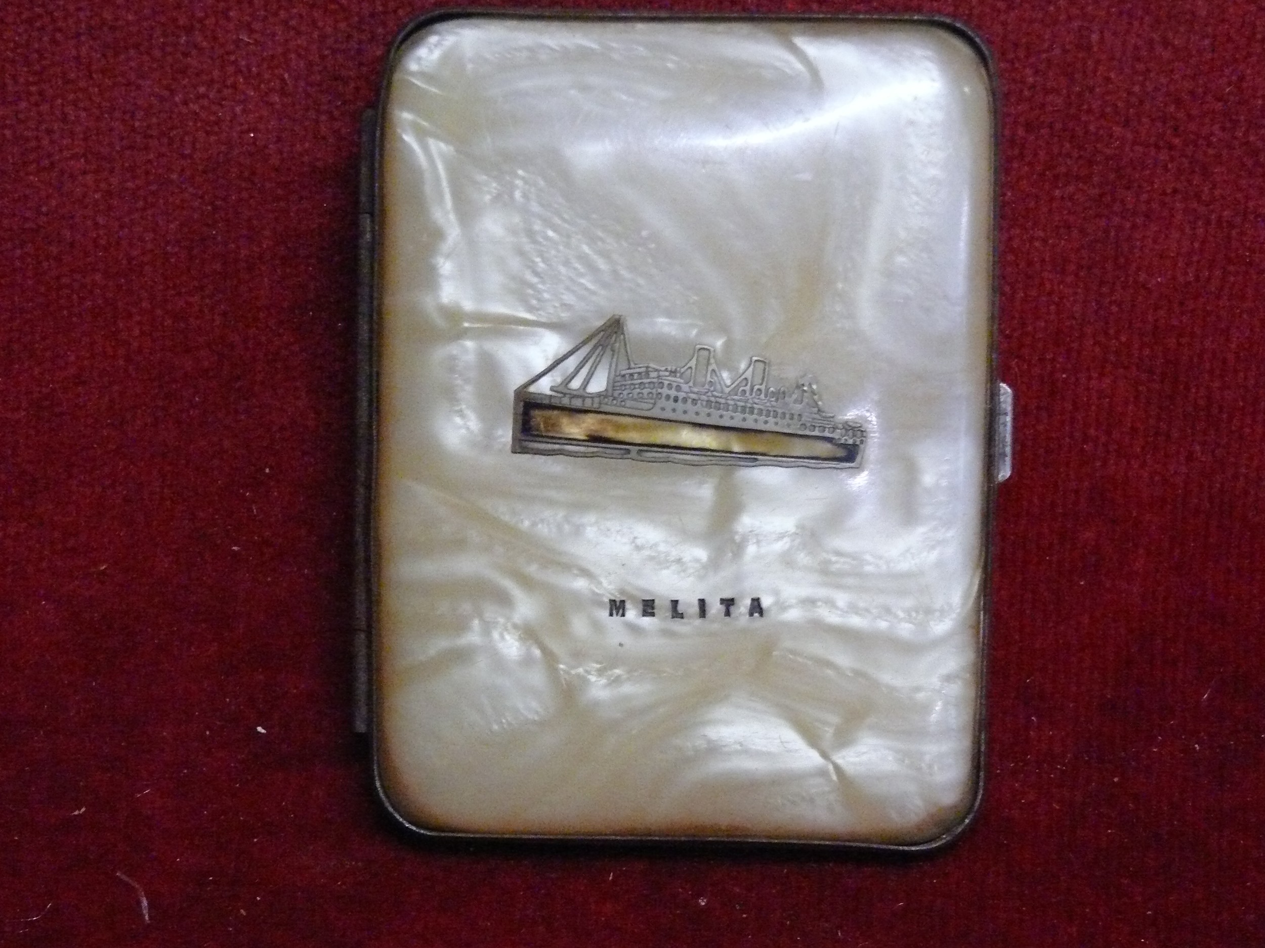 A CIGARETTE CASE FROM THE SHIP "MELITA" "The Melita" refers to most notably the Canadian Pacific liner SS Melita (launched 1917, sunk 1940) famous for transatlantic service, and an 1888 Royal Navy sloop HMS Melita, the only RN warship built in Malta, later