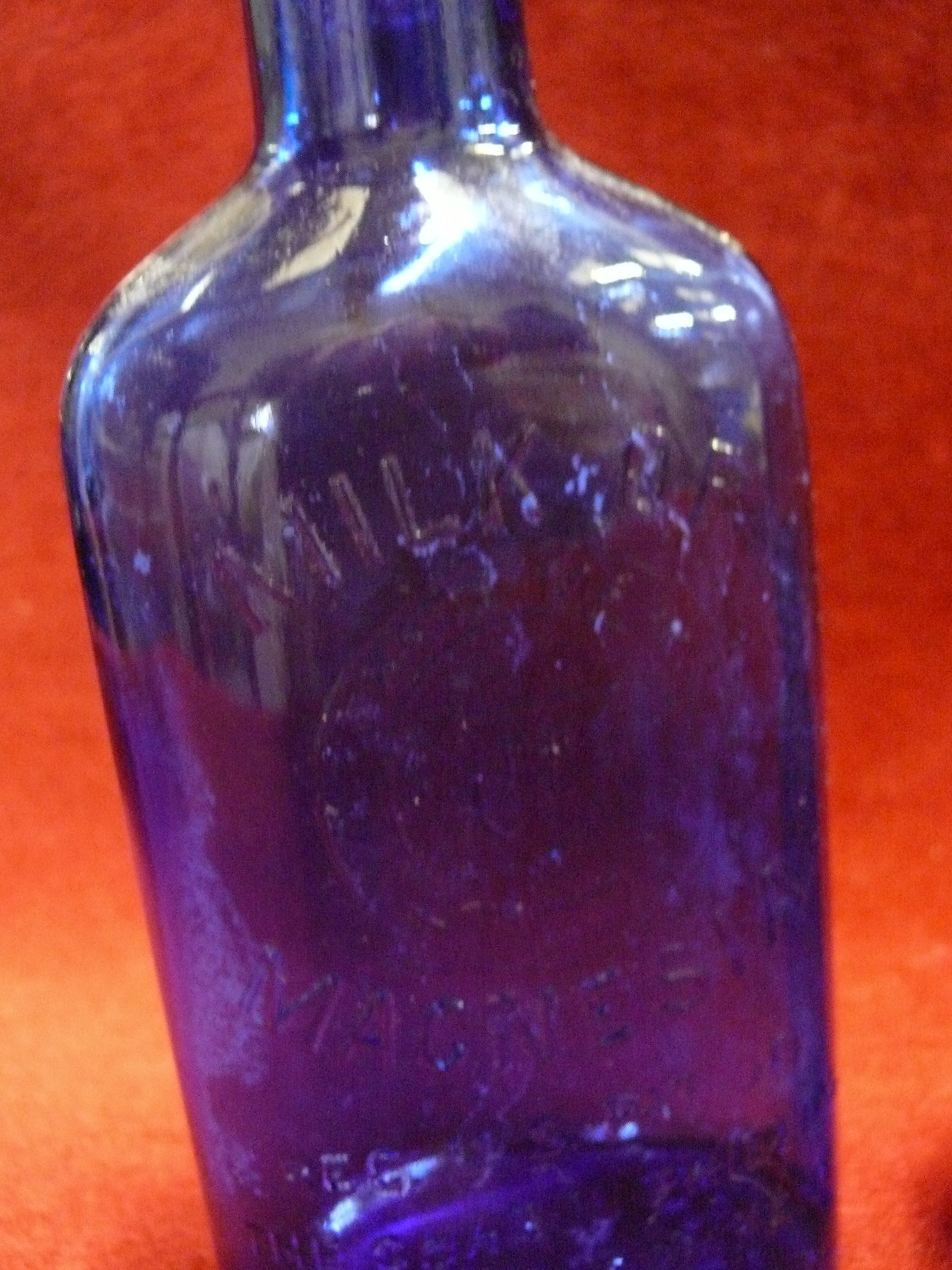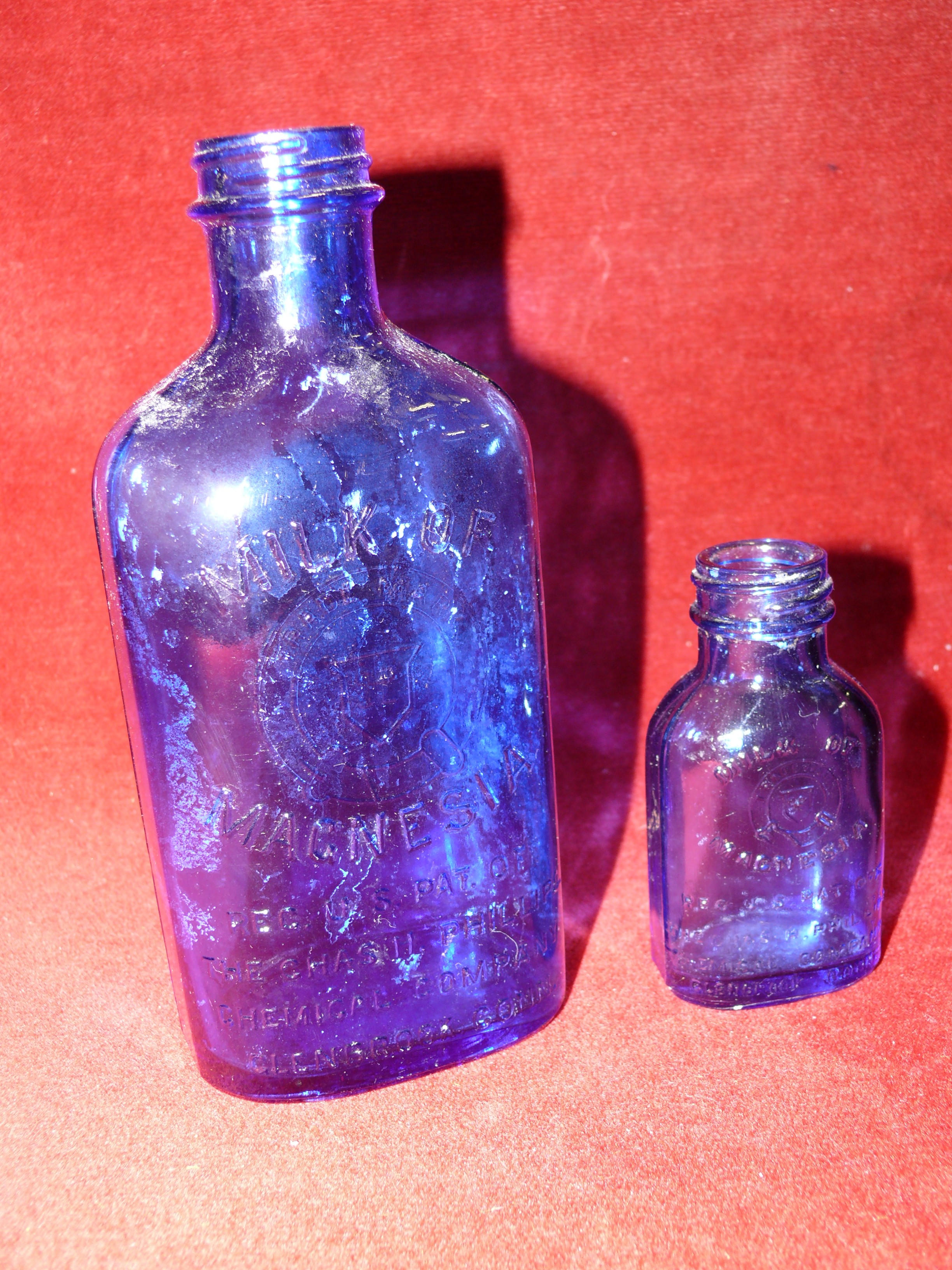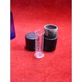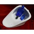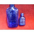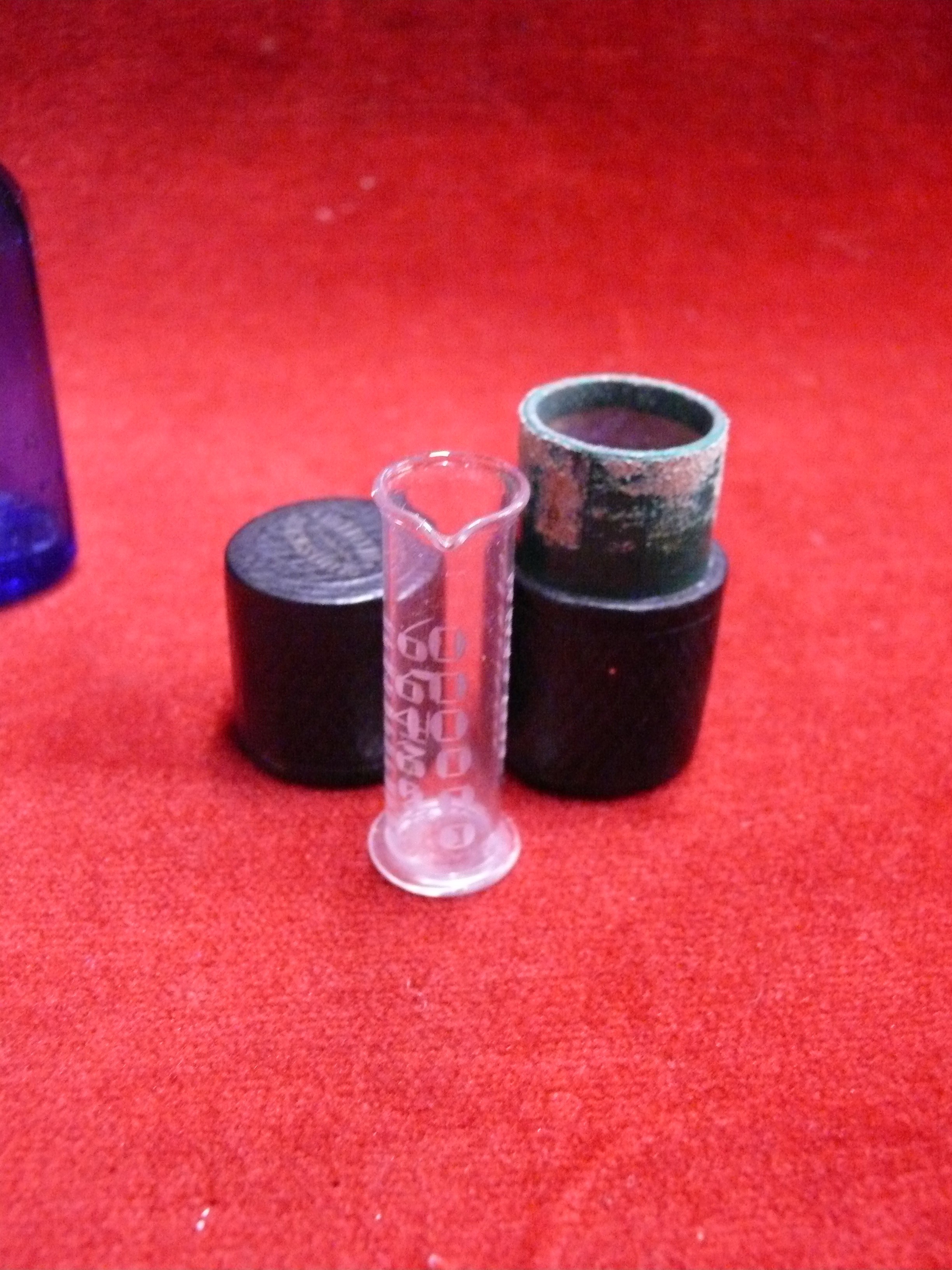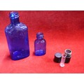 SLIPPER BED PAN TOGETHER WITH TWO MILK OF MAGNESIA BLUE BOTTLES & AN ANTIQUE MINIM MEASURE IN LEATHER CASE BY T W LONDON