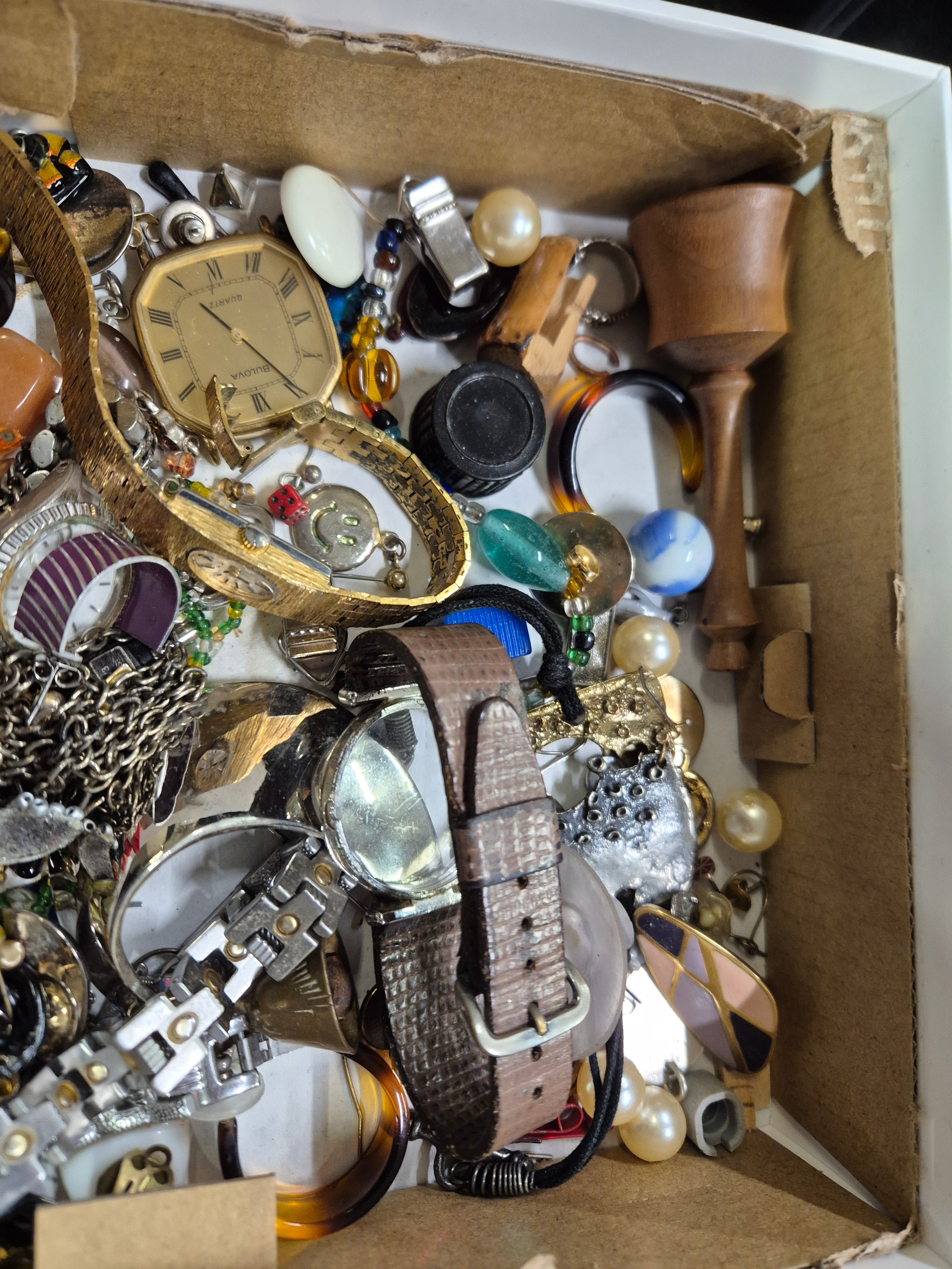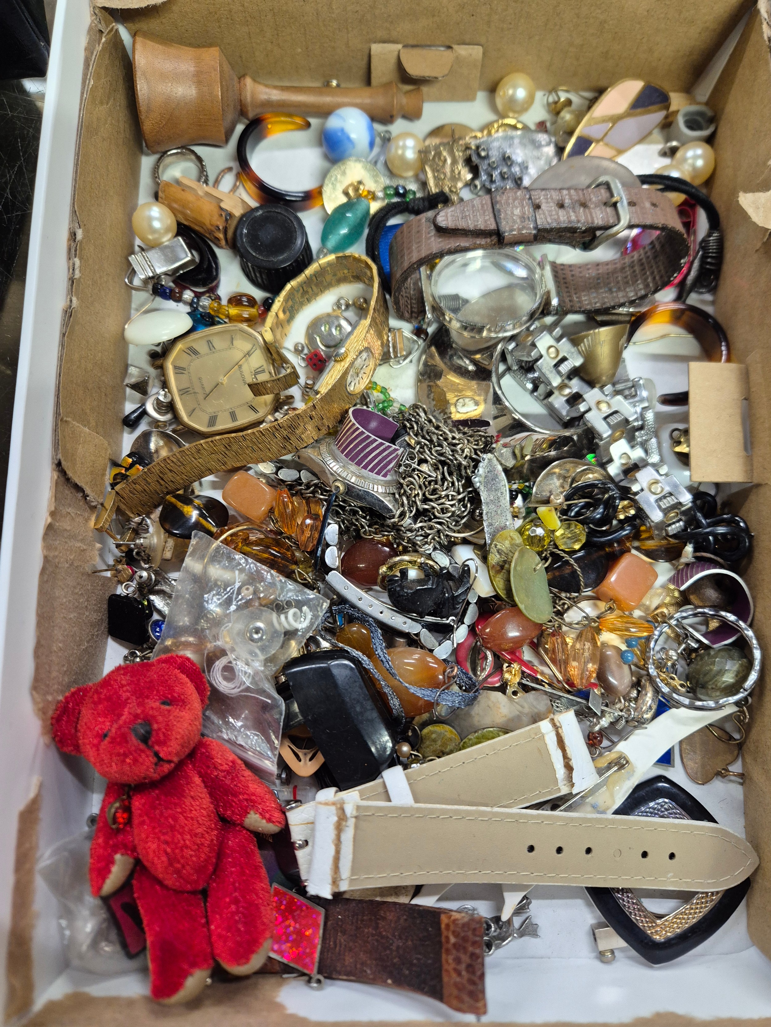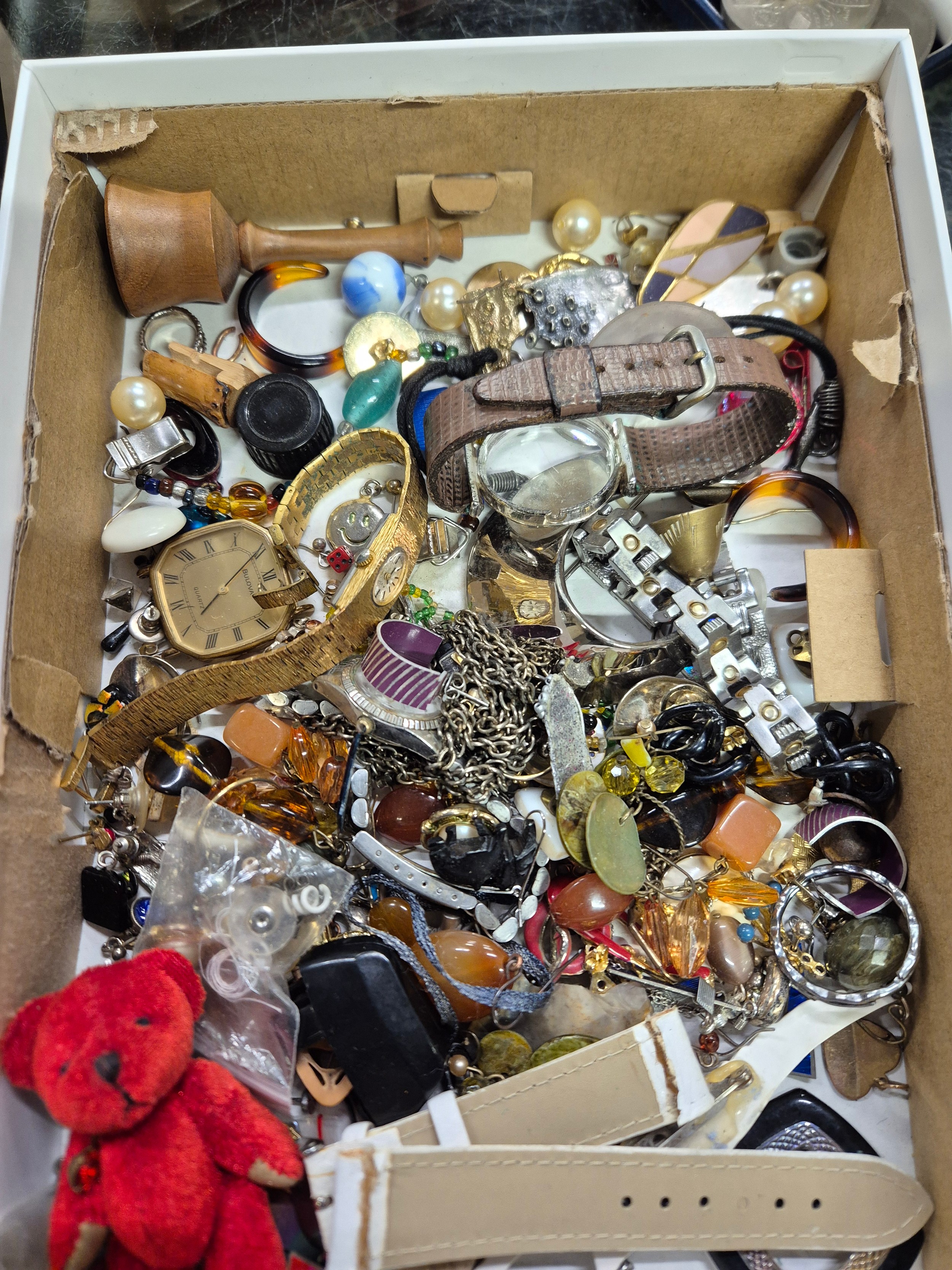Tray of costume jewellery, watches, crimson teddy key ring etc