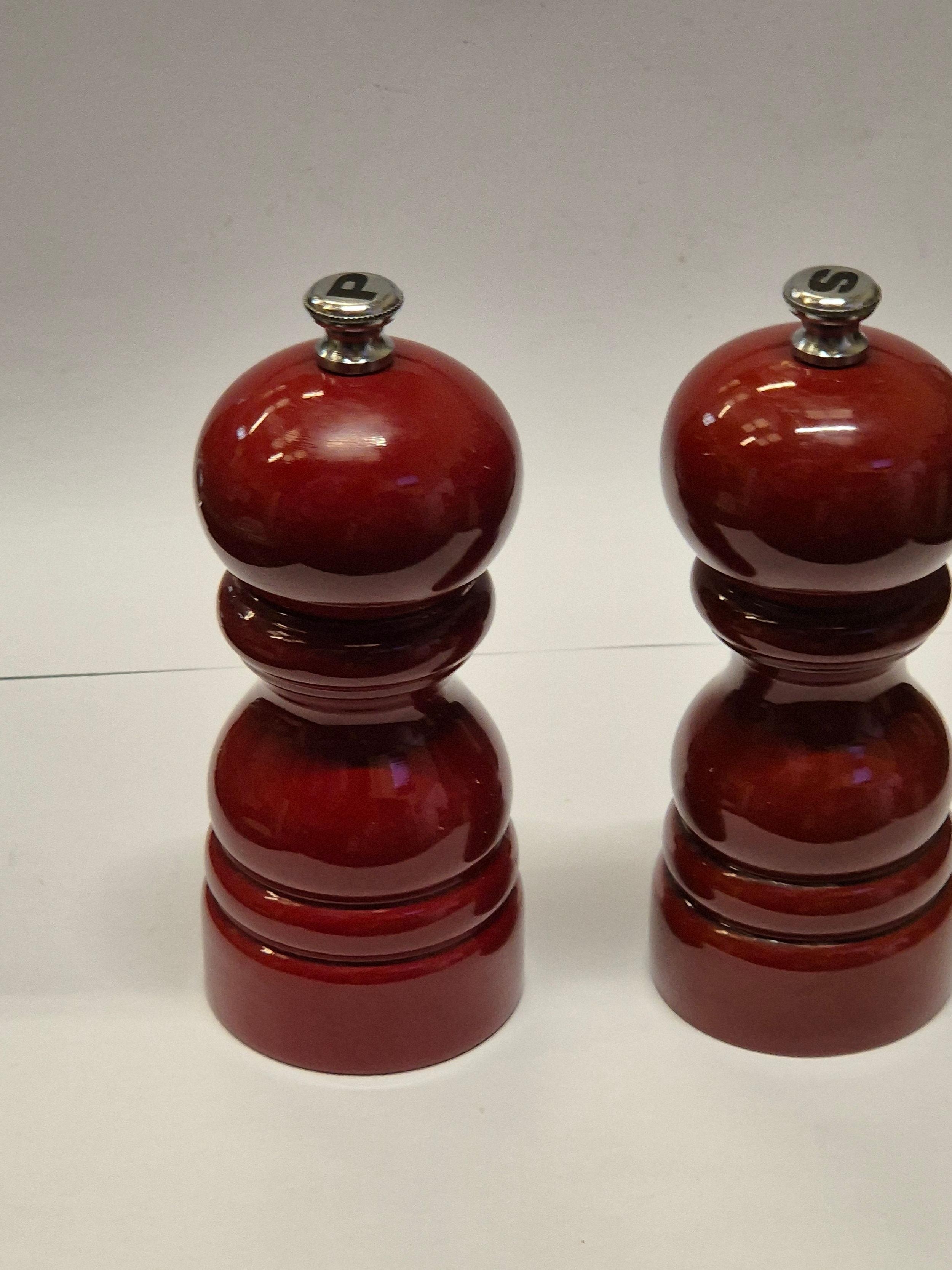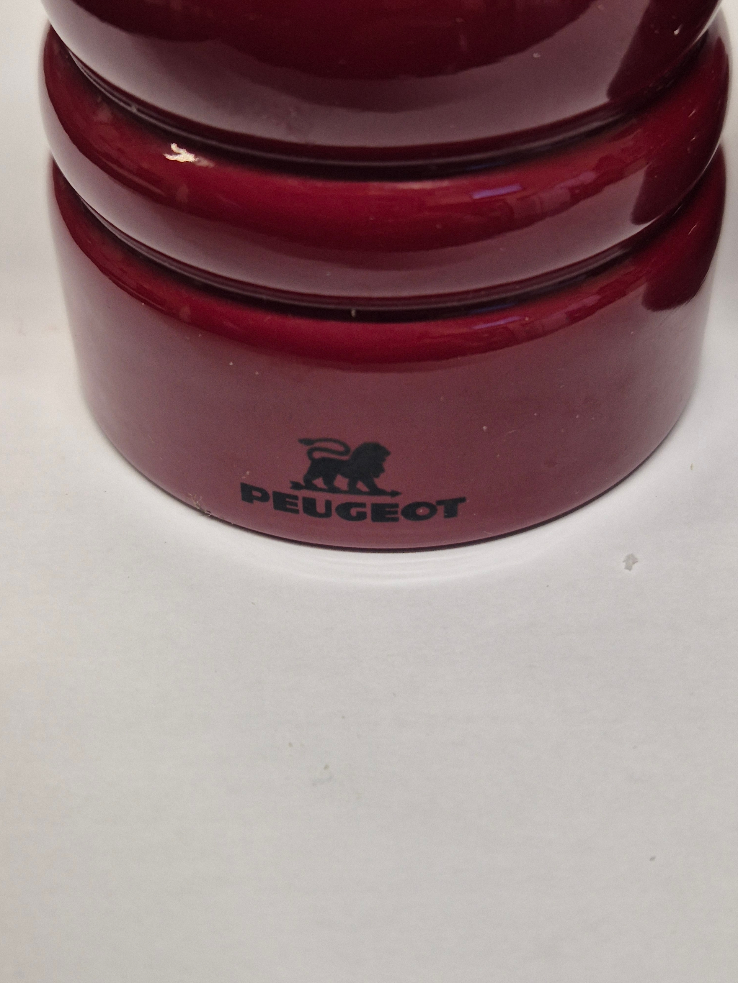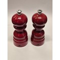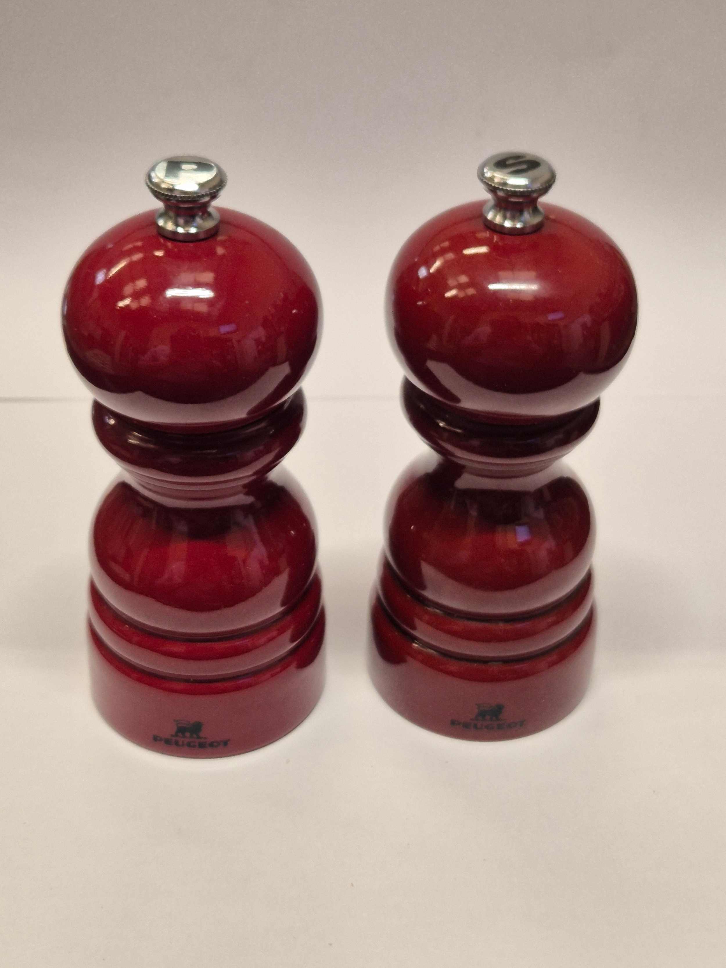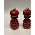 A PAIR OF PEUGEOT SALT AND PEPPER GRINDERS IN RED