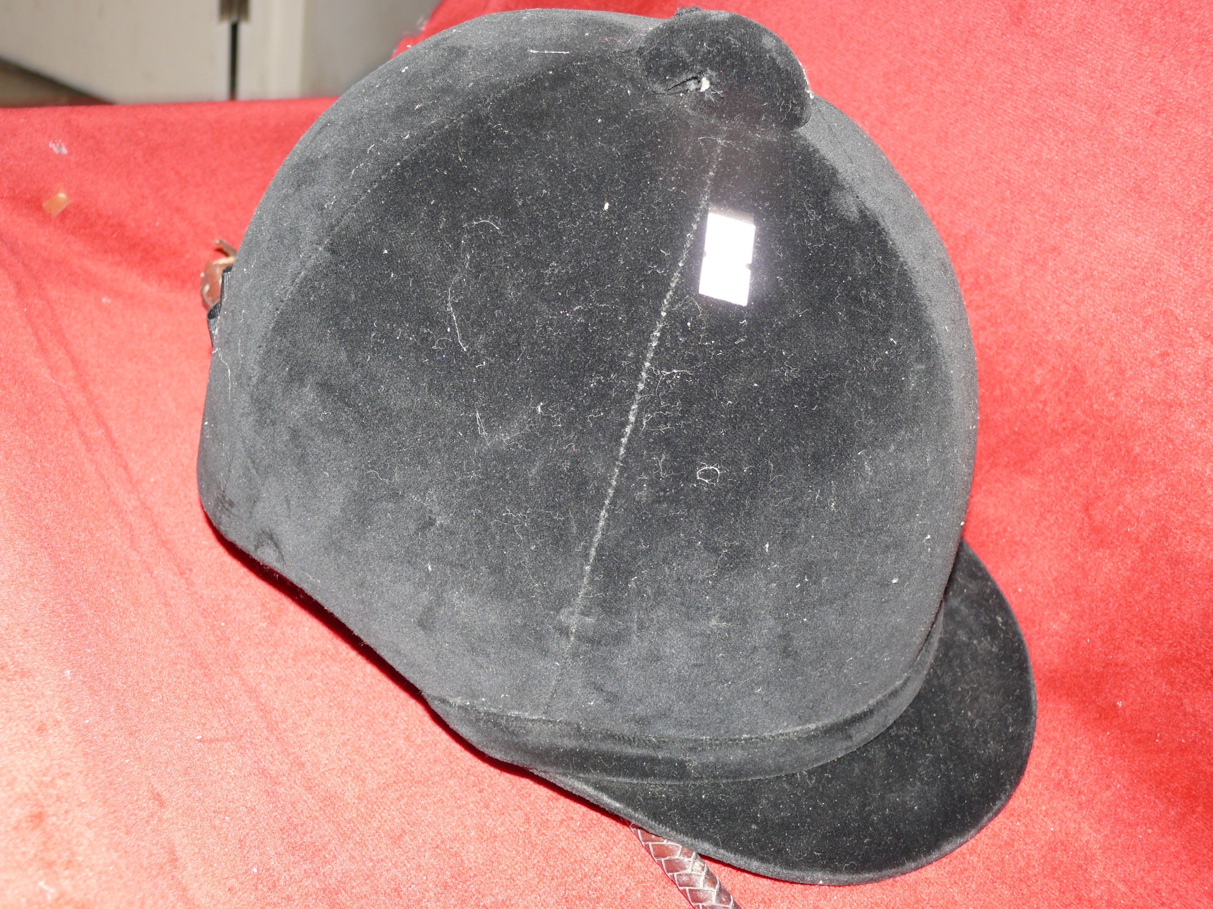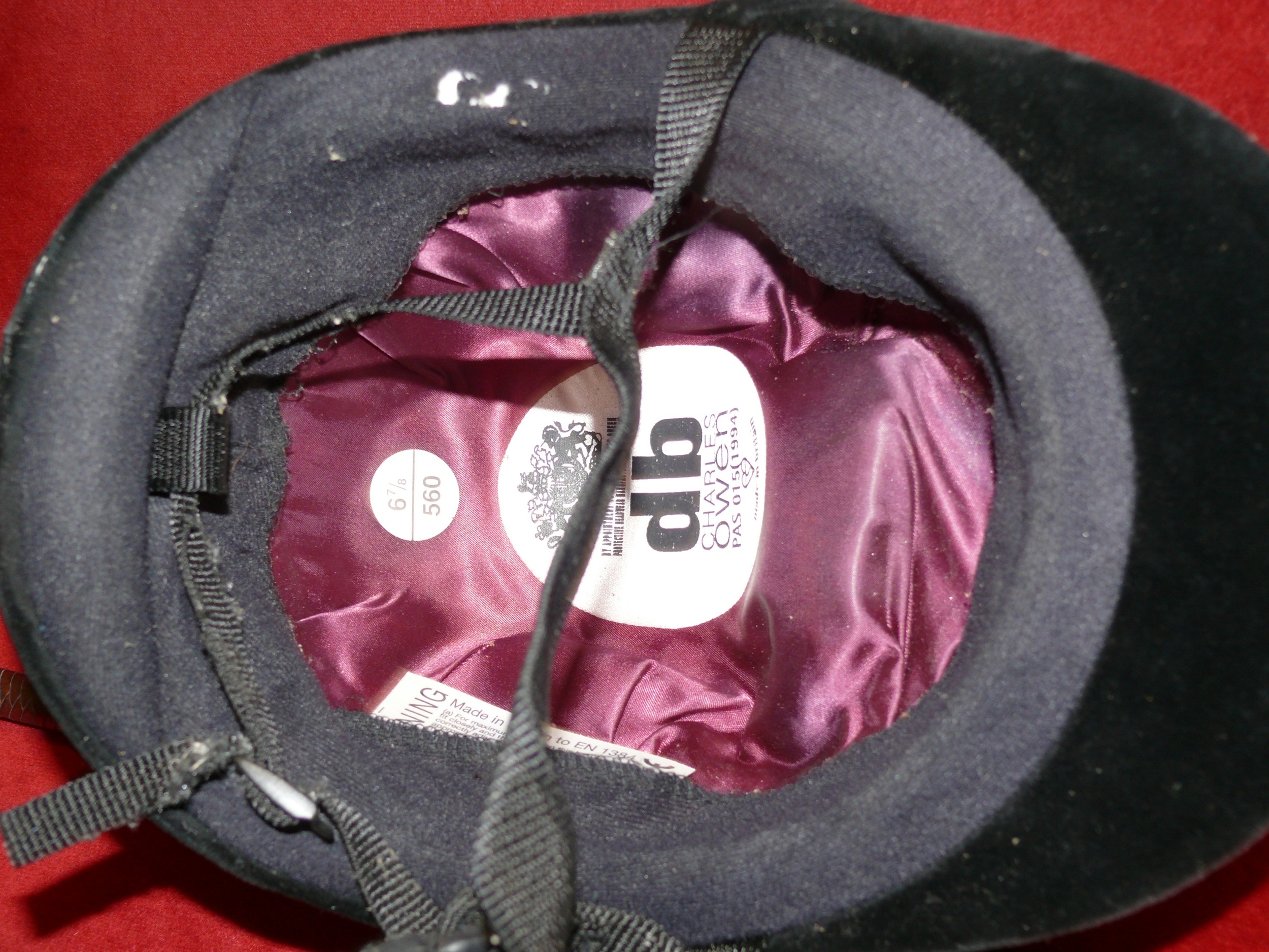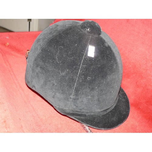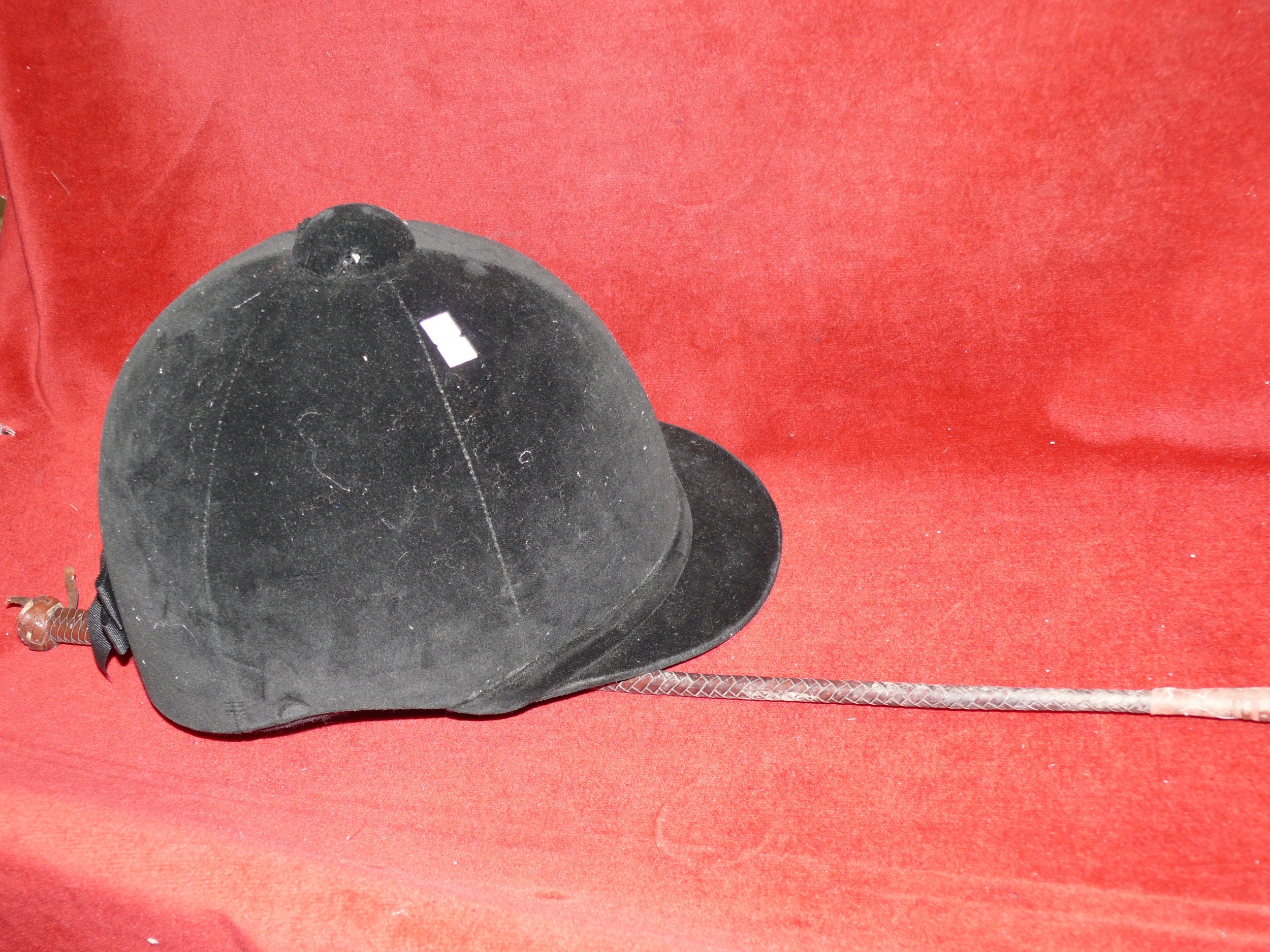 RIDING HAT BY CHARLES OWEN 6 & 7/8 PLUS A VINTAGE RIDING CROP