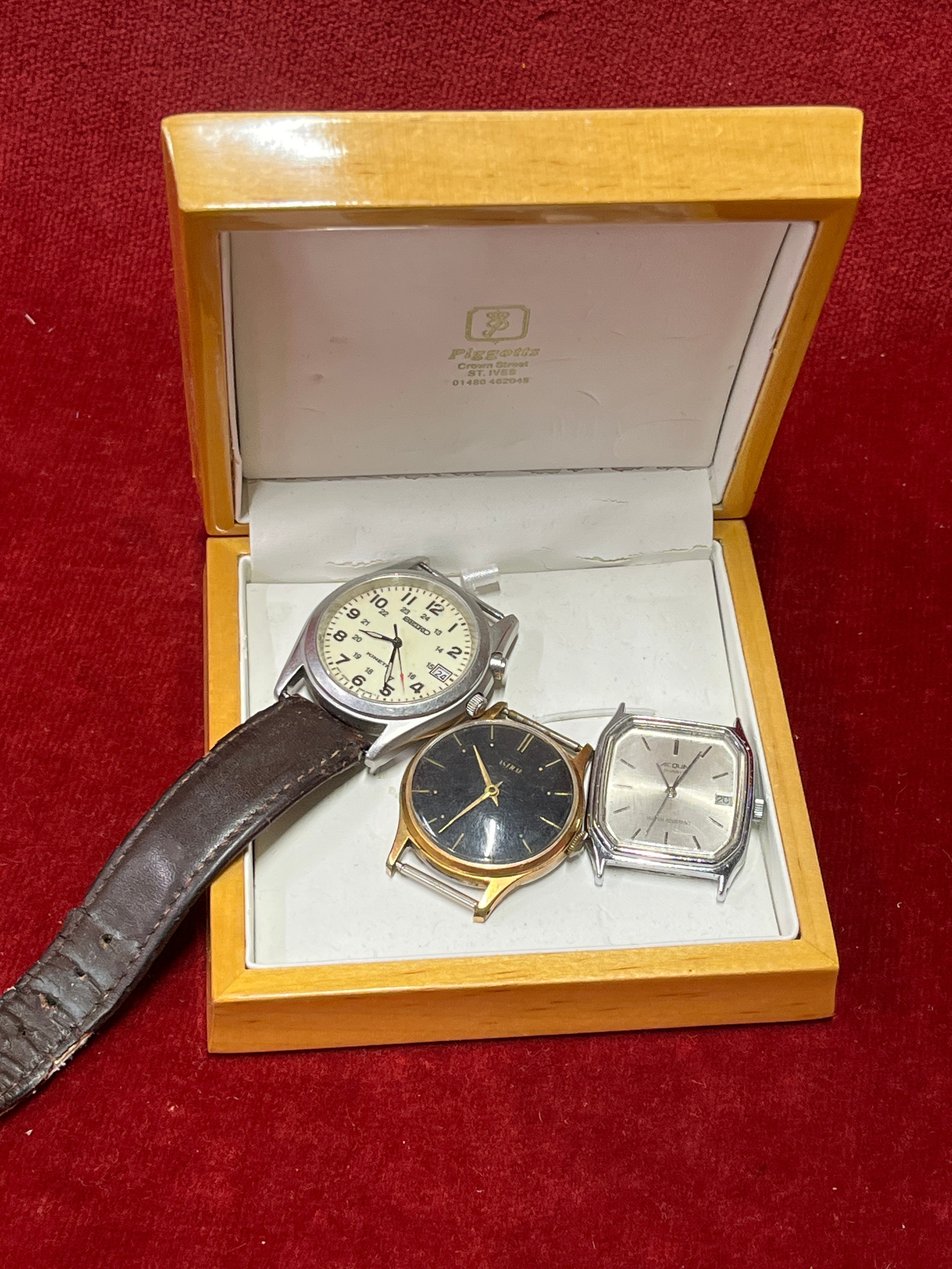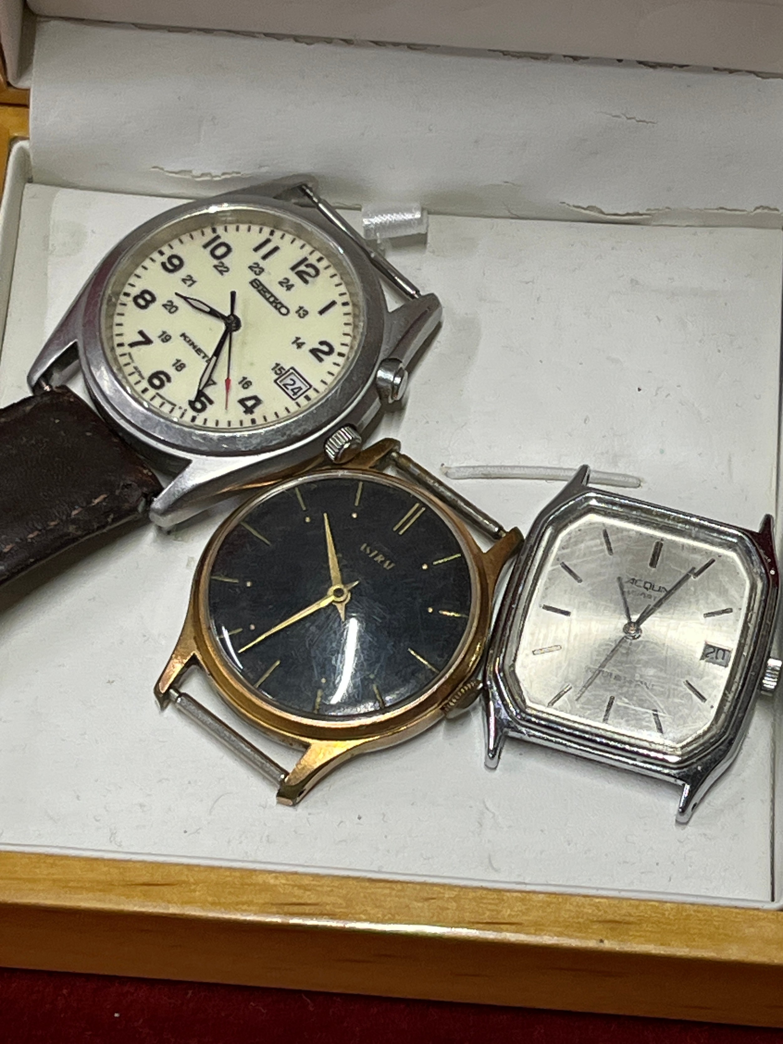 3 vintage gents watches, a mechanical one by Astral with black dial (working) and Acqua quartz & a Seiko