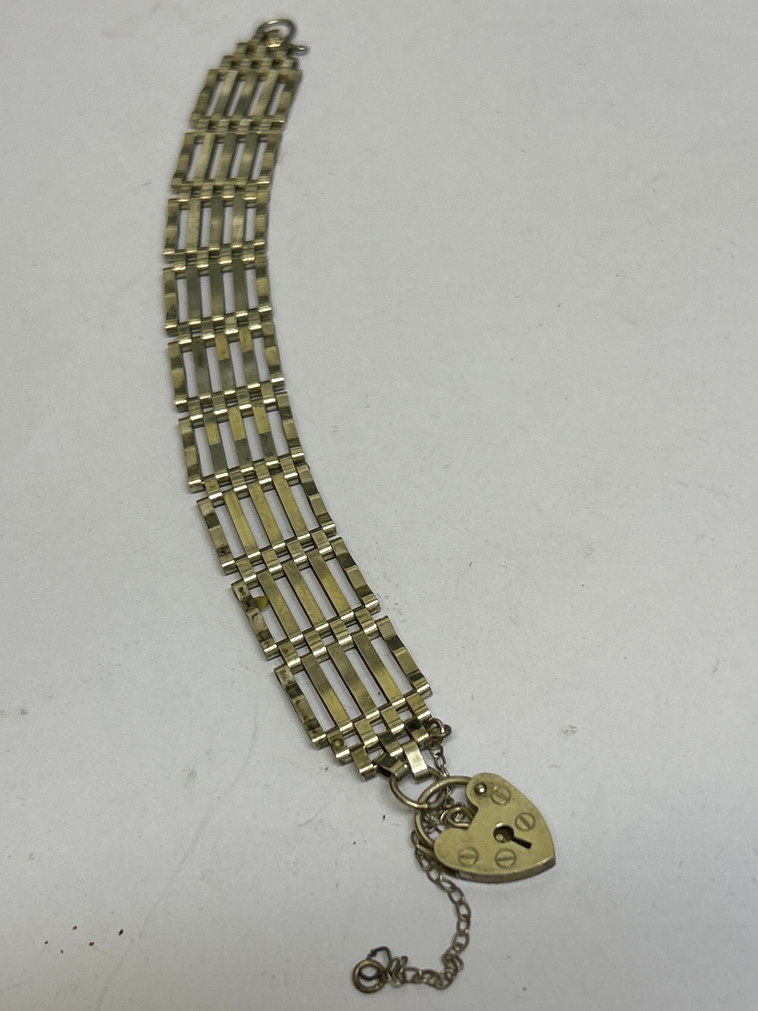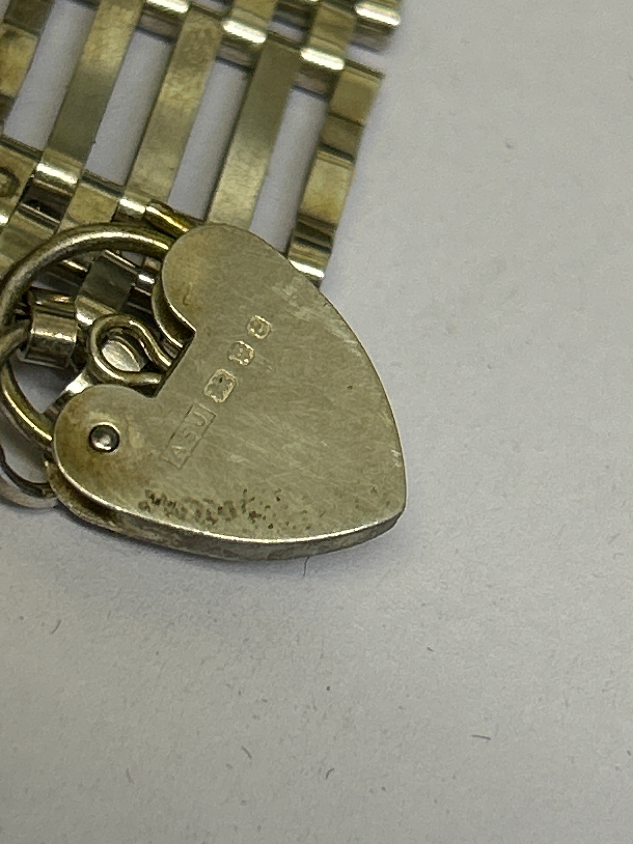 Sterling silver gate bracelet with padlock heart clasp, hallmarked London 1979. 17 grams