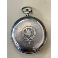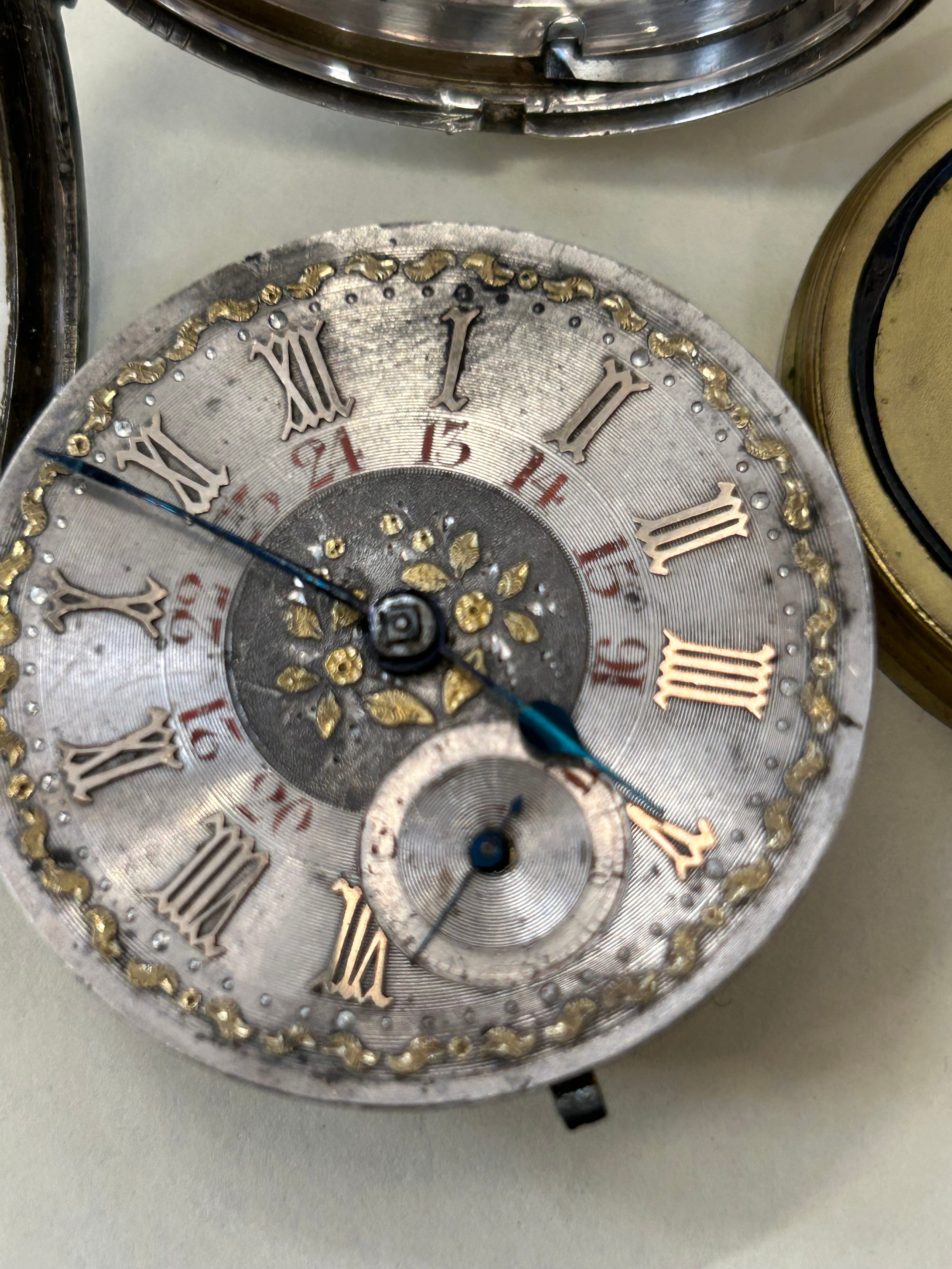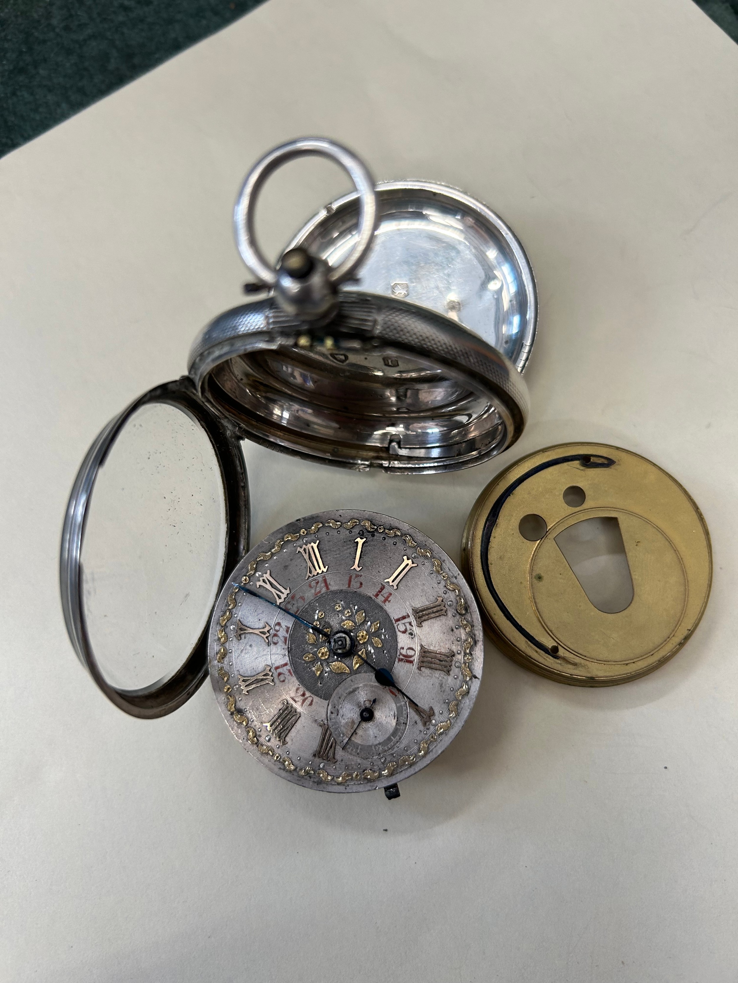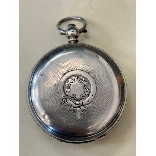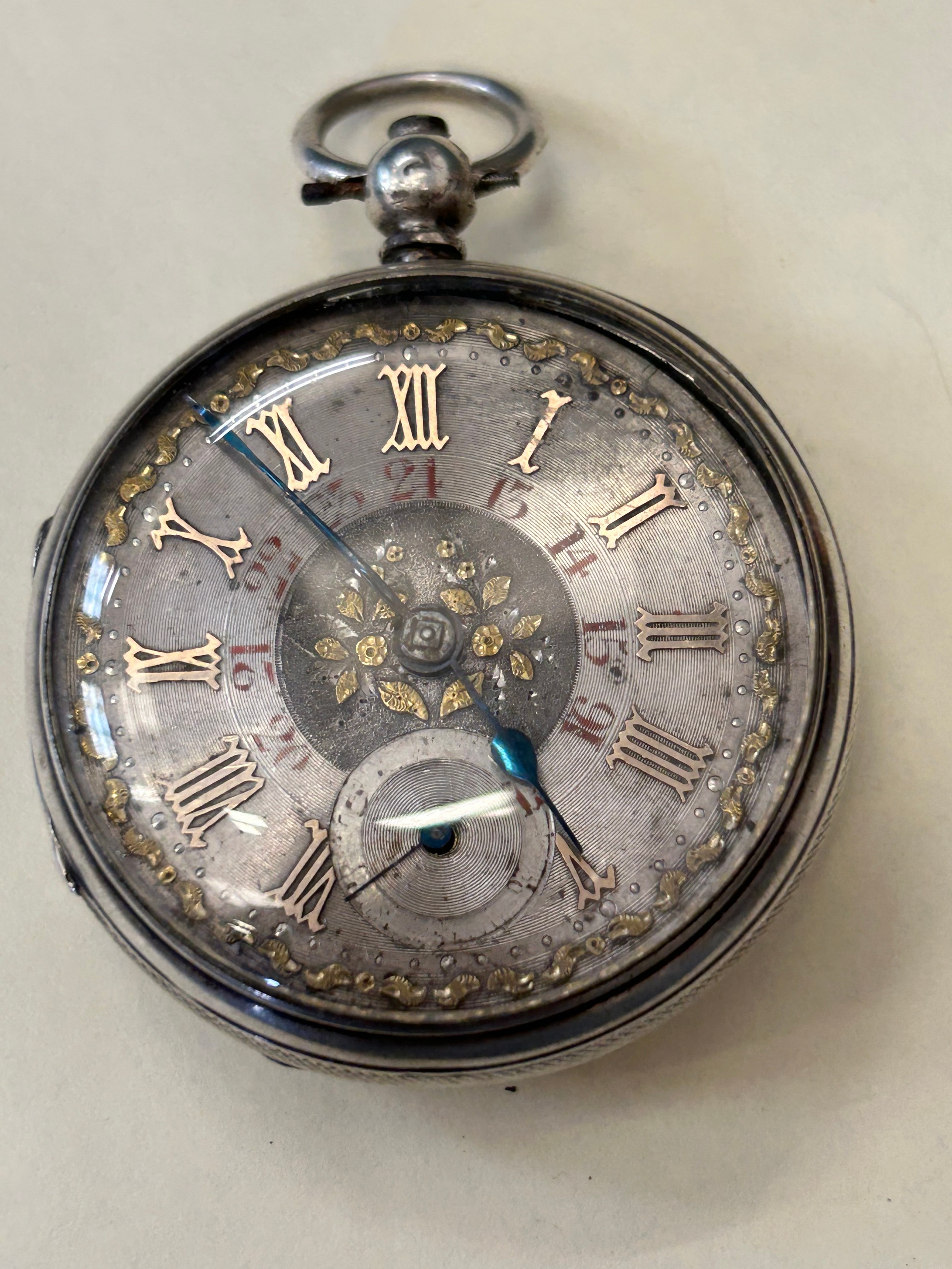 ANTIQUE FUSEE POCKET WATCH IN STERLING SILVER CASE - LONDON 1872, MOVEMENT BY THOMAS RUSSELL, 18 CHURCH STREET, LIVERPOOL "MAKER TO THE QUEEN". INLAID SILVERED FACE WITH ROMAN NUMERALS IN THE GOTHIC STYLE.