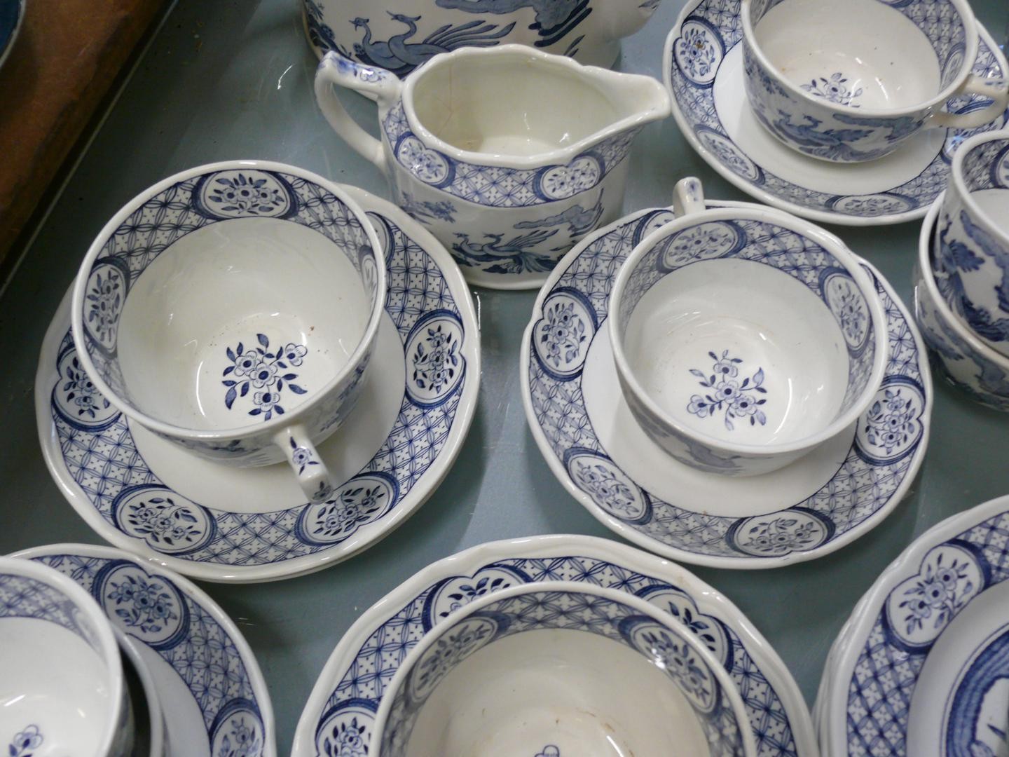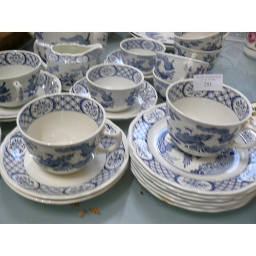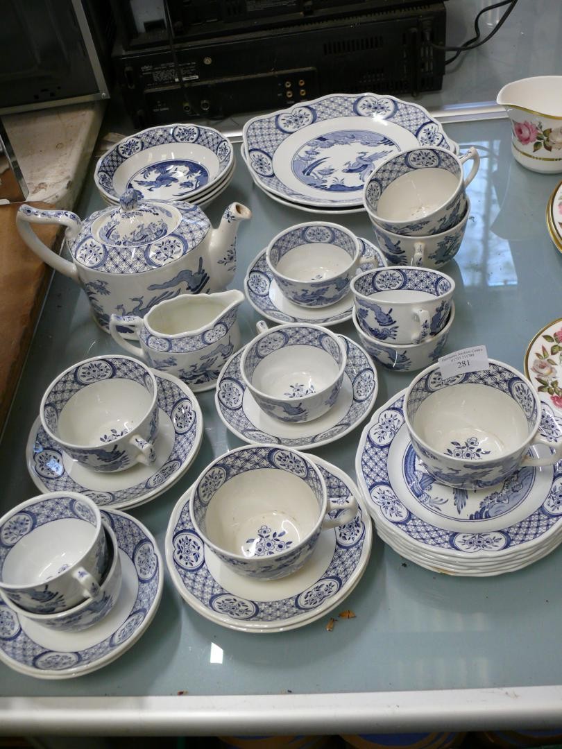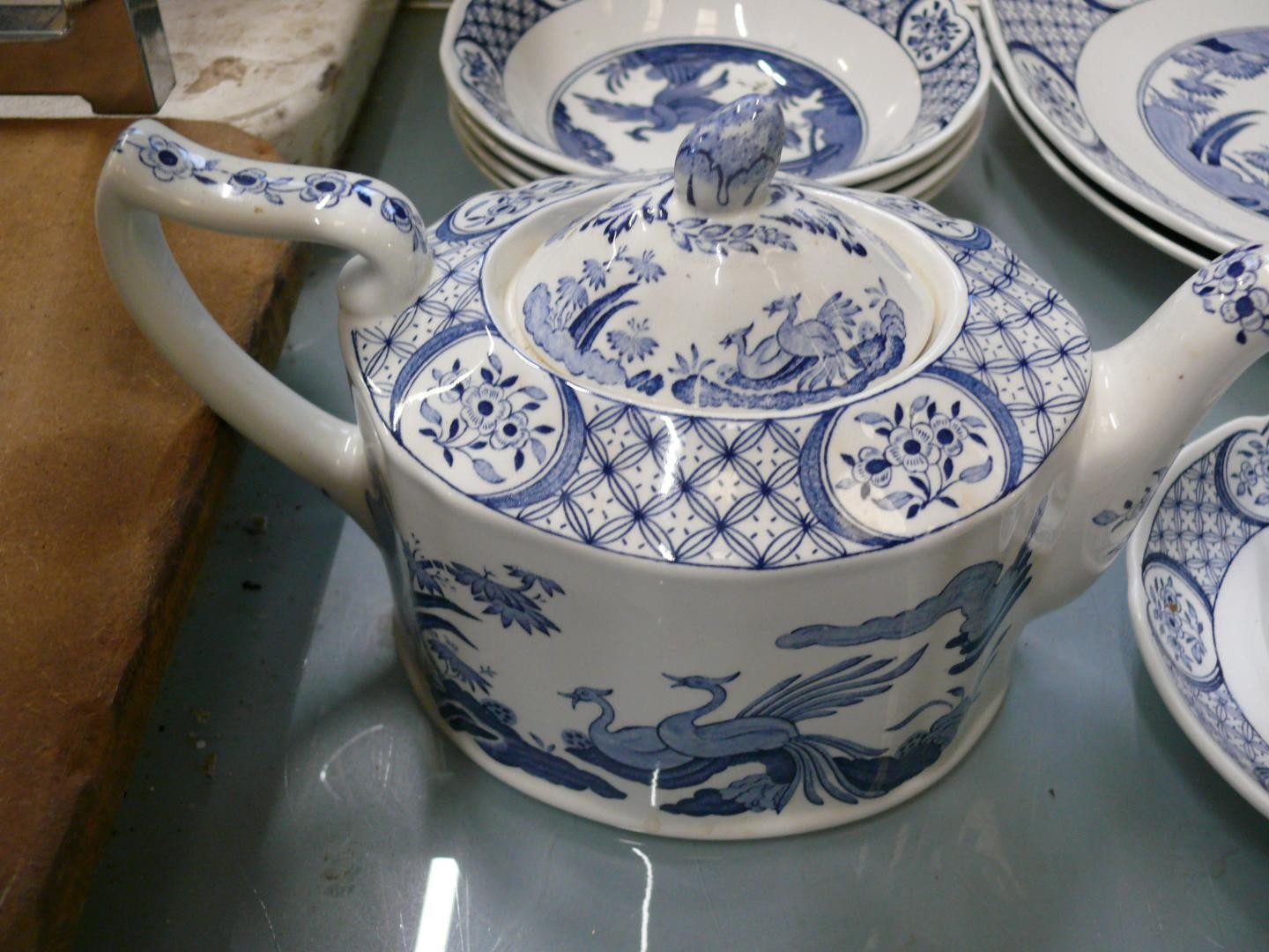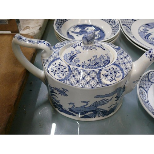 FURNIVALS 'OLD CHELSEA' TEA SERVICE TEAPOT, CUPS & SAUCERS, BOWLS, PLATES 34 PIECES