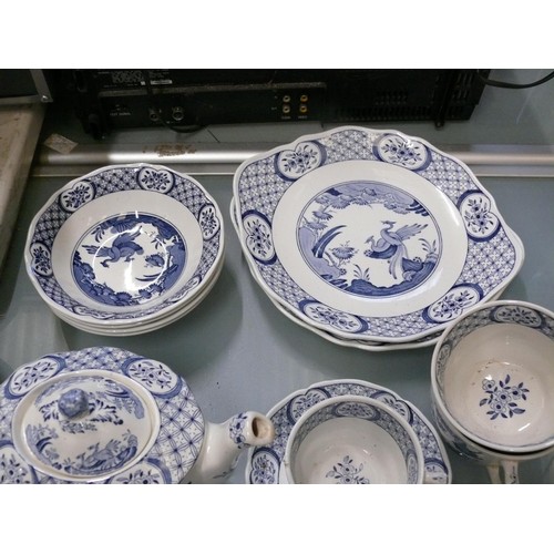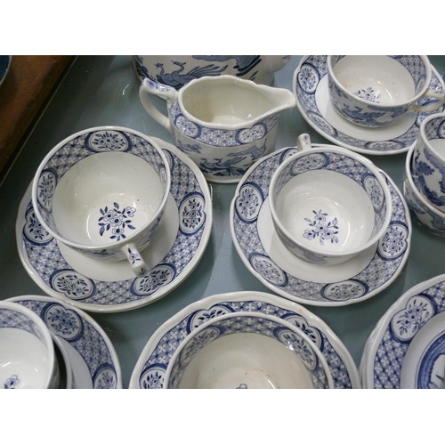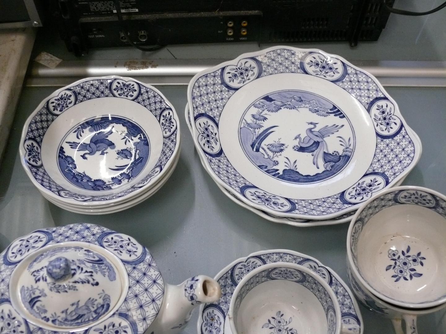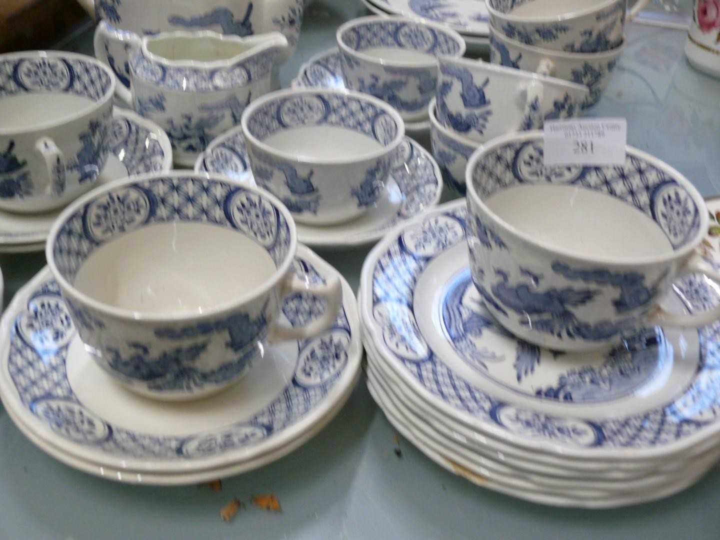 FURNIVALS 'OLD CHELSEA' TEA SERVICE TEAPOT, CUPS & SAUCERS, BOWLS, PLATES 34 PIECES