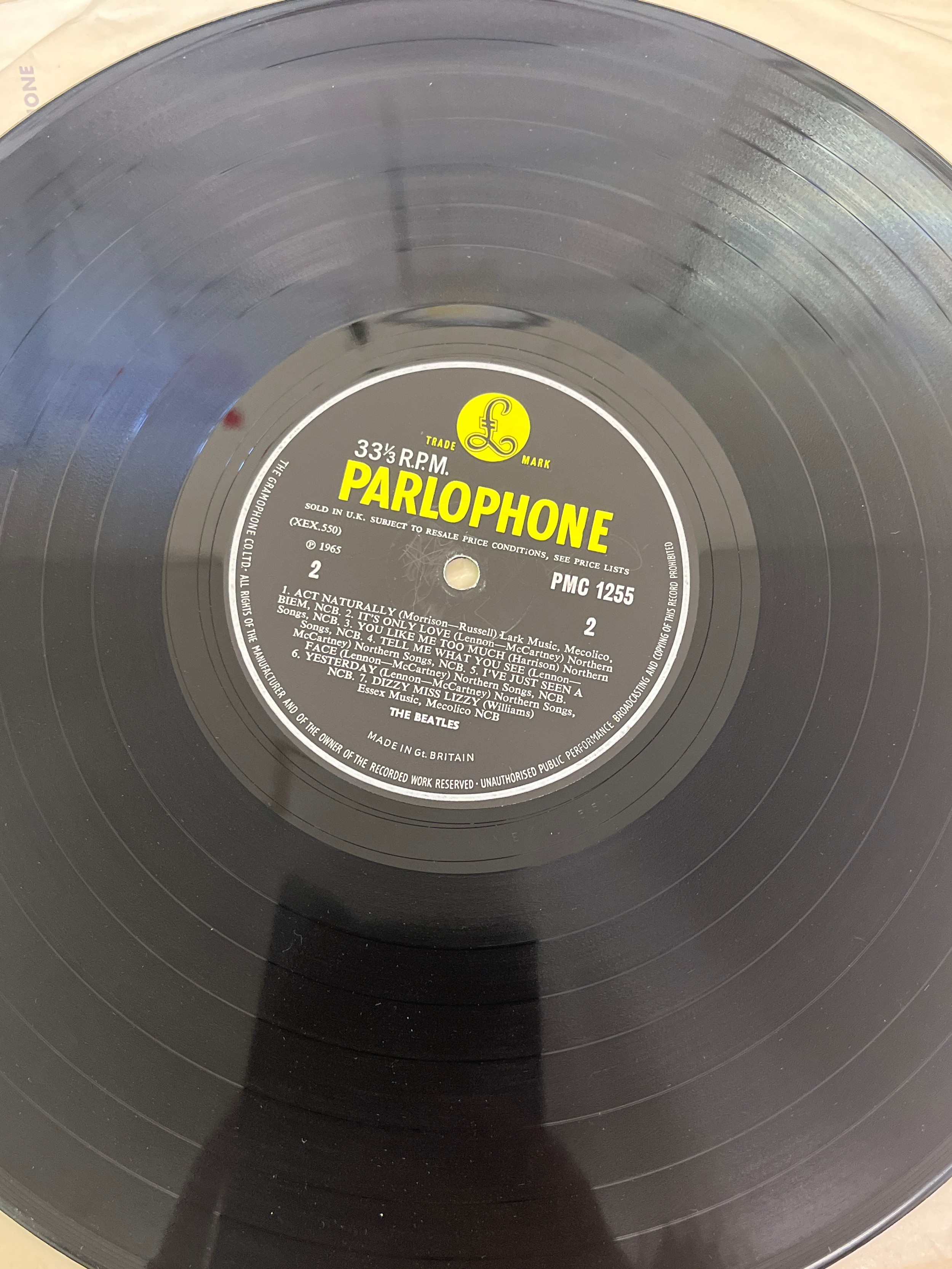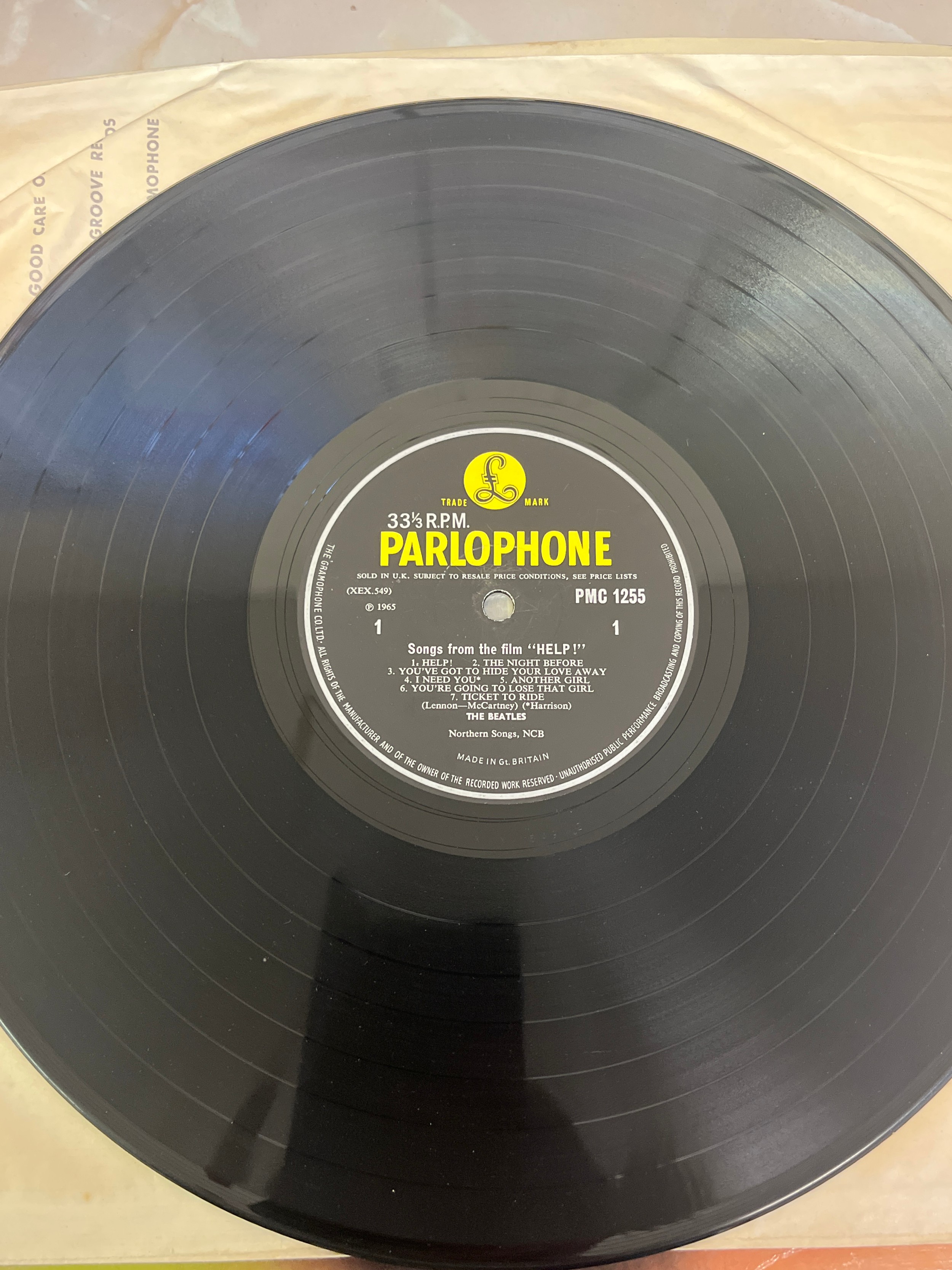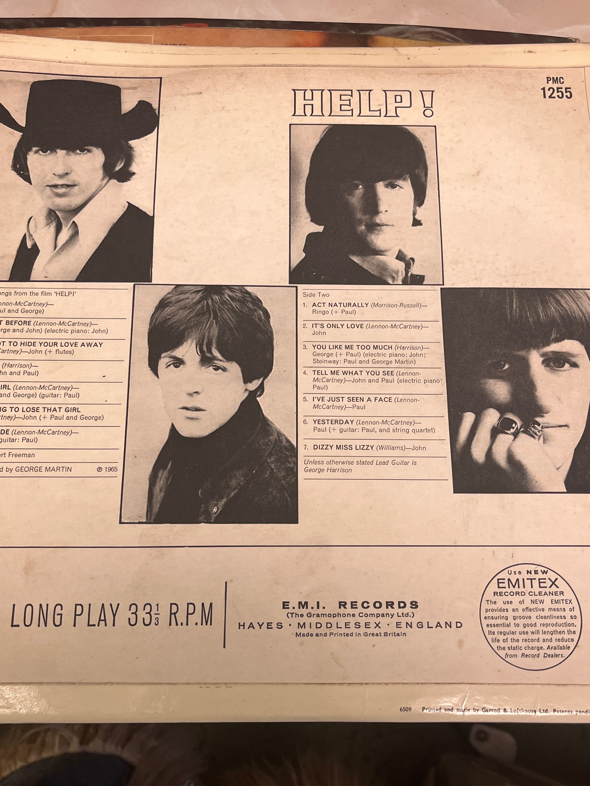 1965 Beatles LP Help PMC 1255 XEX 449-2 XEX 450-2 KT Tax Code Side 2, Side 1 4-AM Side 2 1-HG