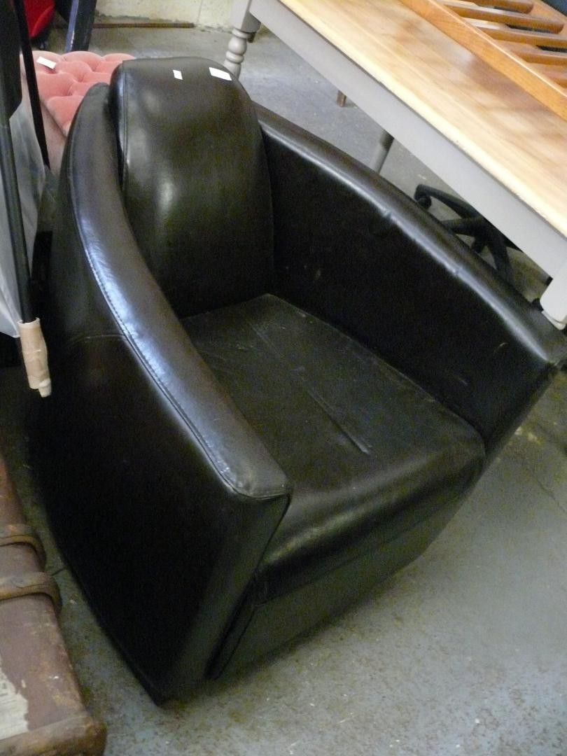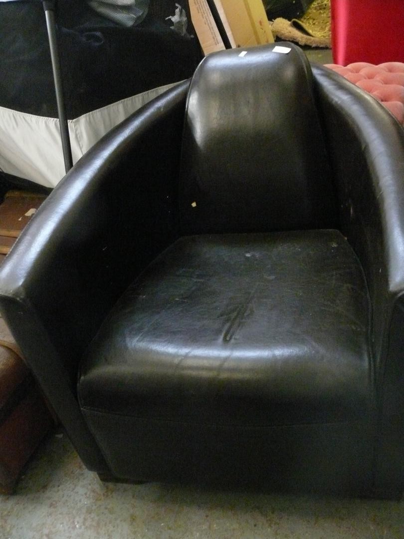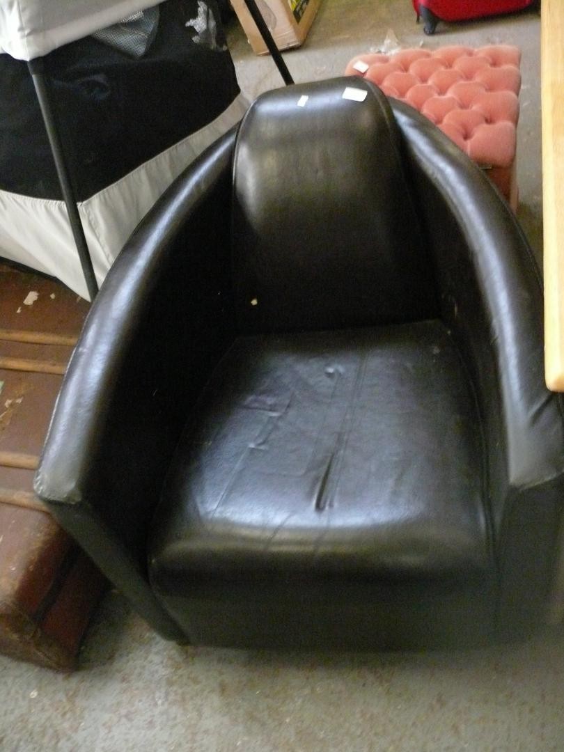 Unusual Retro brown faux leather tub chair
