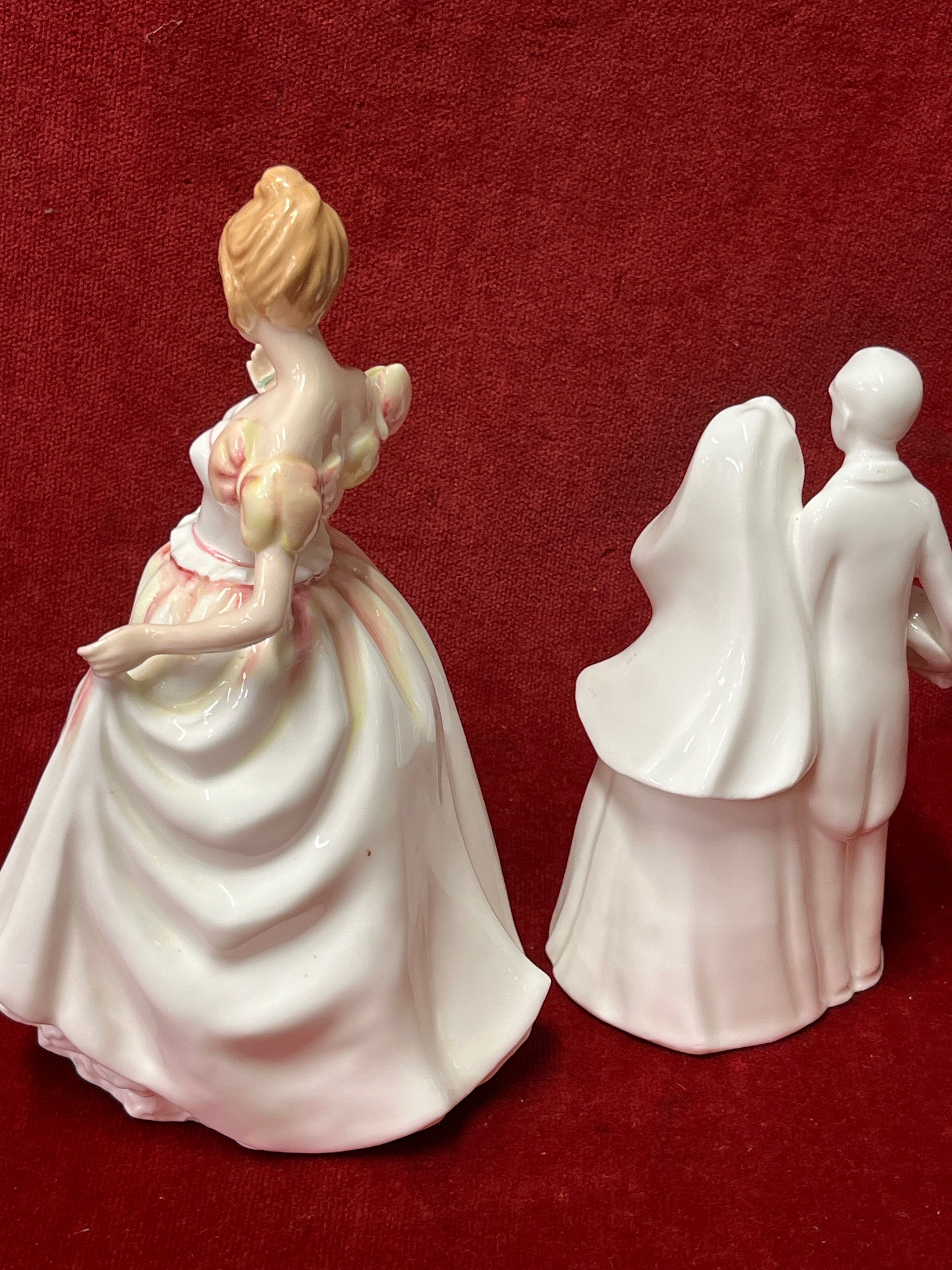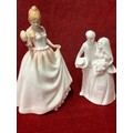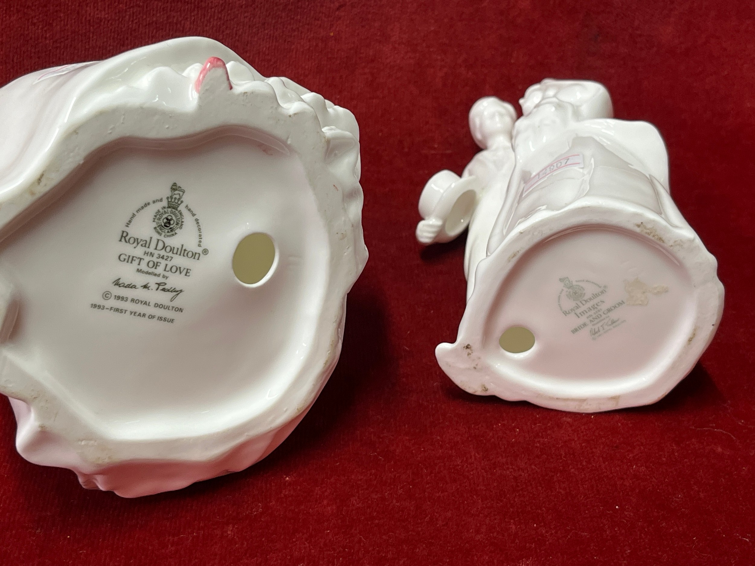 Royal Doulton bone china figurine HN3427 “Gift of Love” by Nada M Padley- 1993 together with “Bride & Groom” HN3281 which has cracks