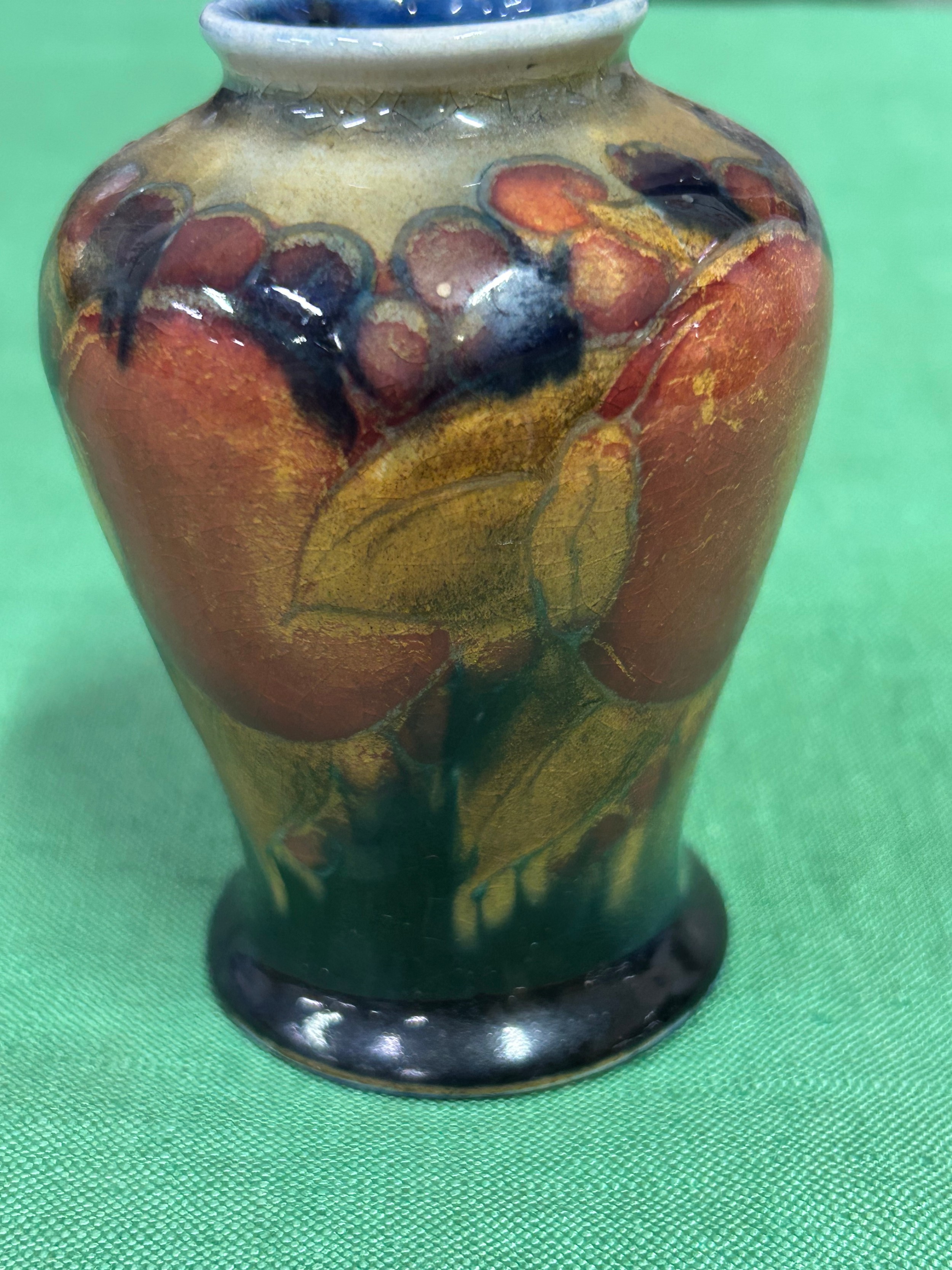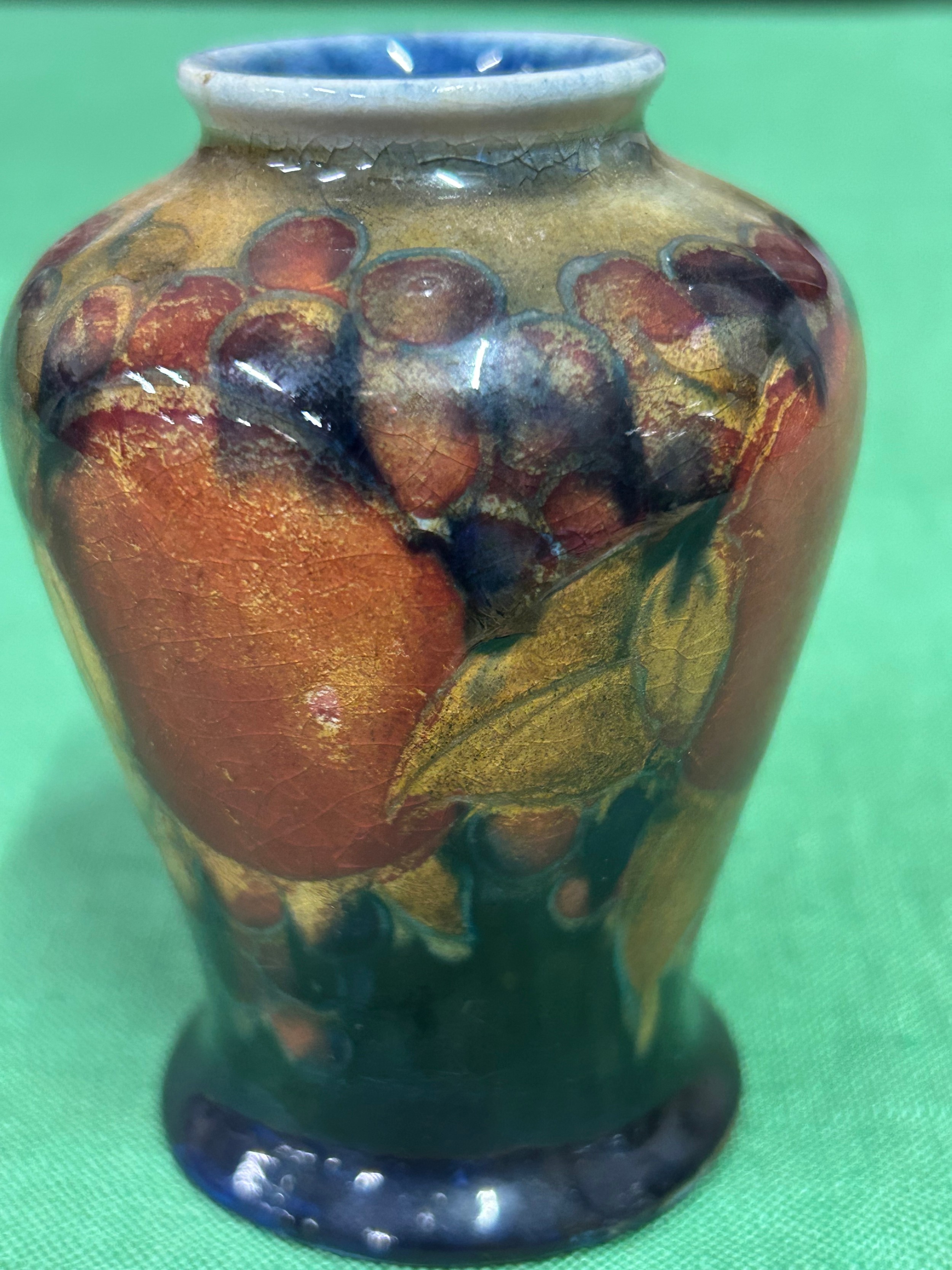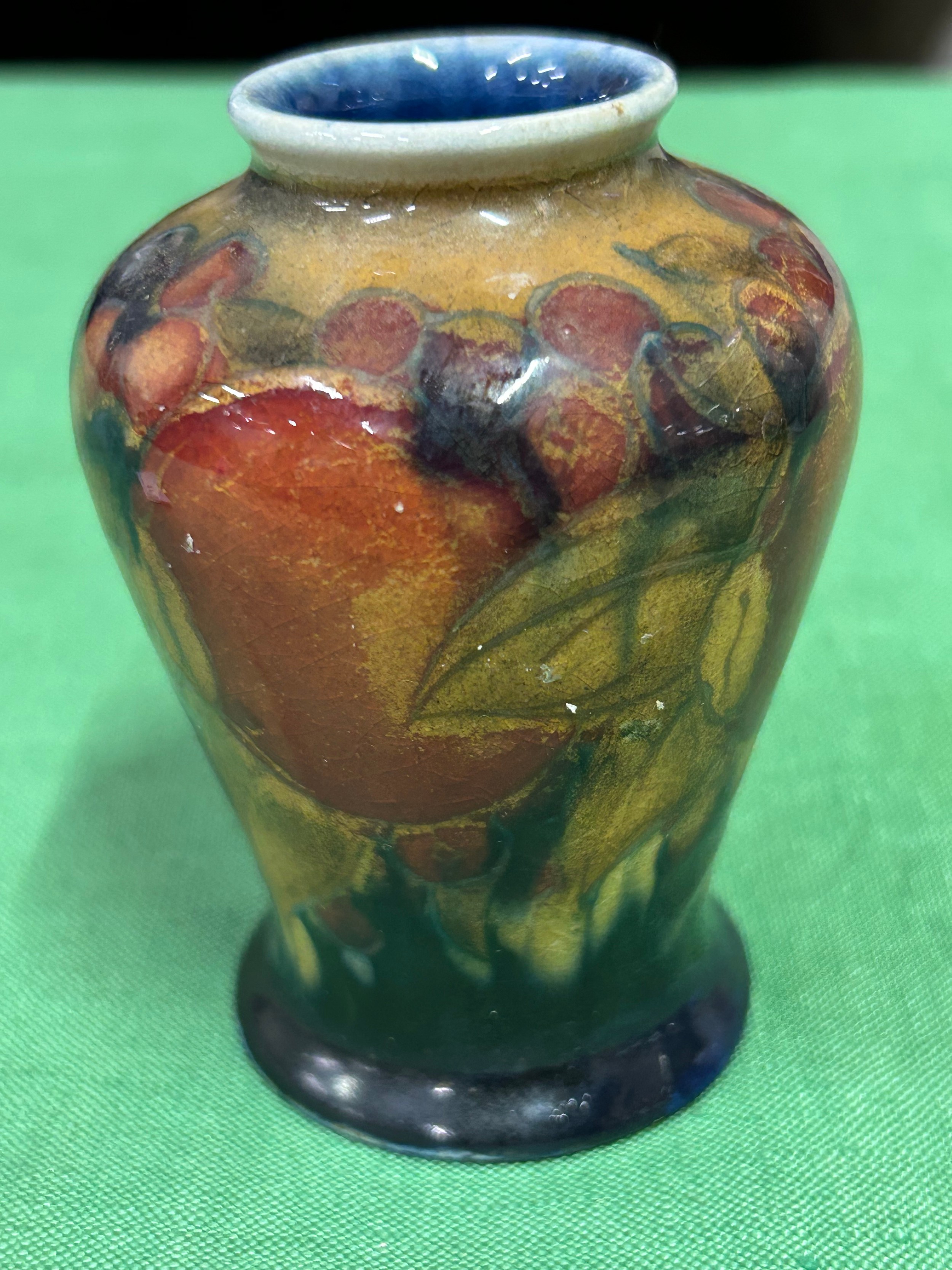 An early 20th Century Moorcroft vase in the Pomegranate pattern with impressed marks “MOORCROFT ENGLAND”. 8.5 cm h