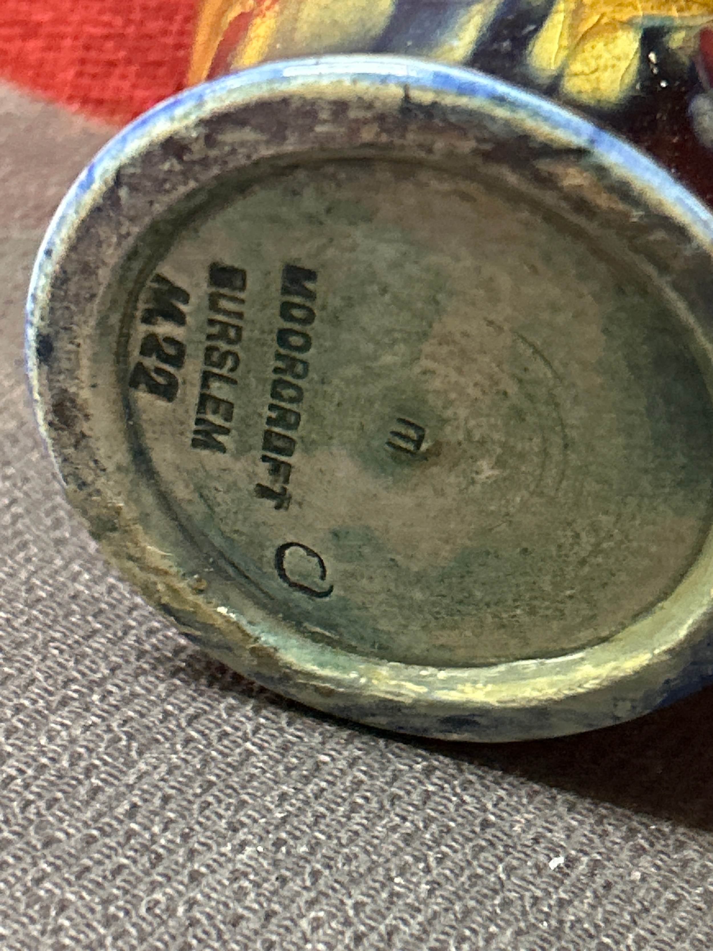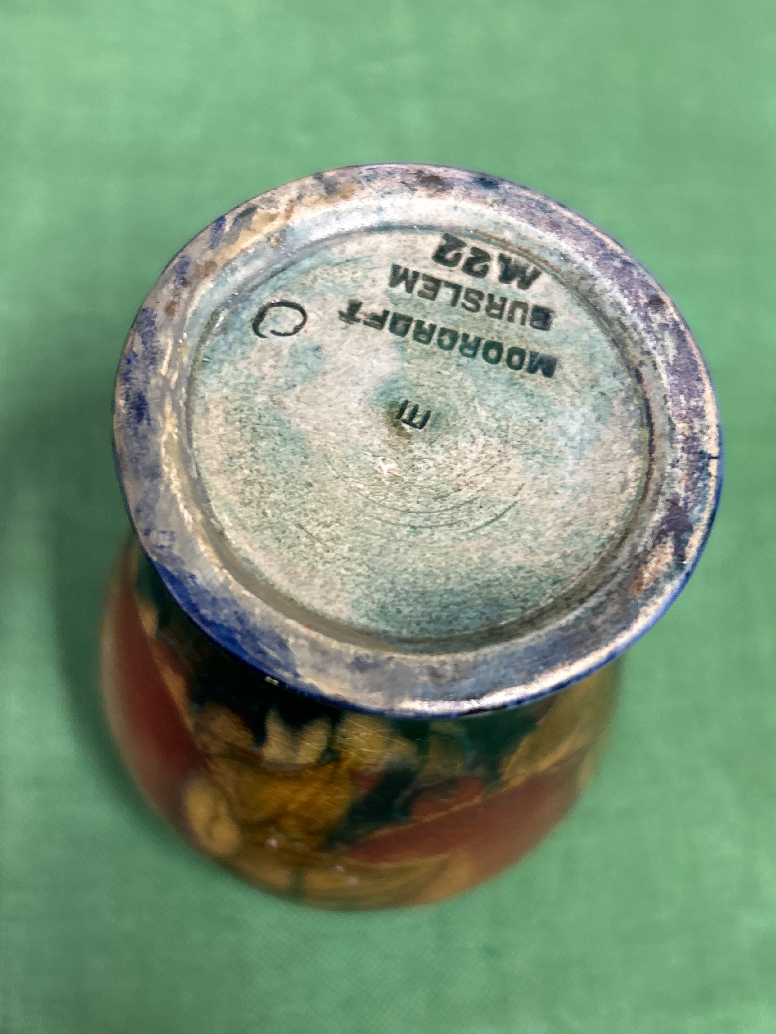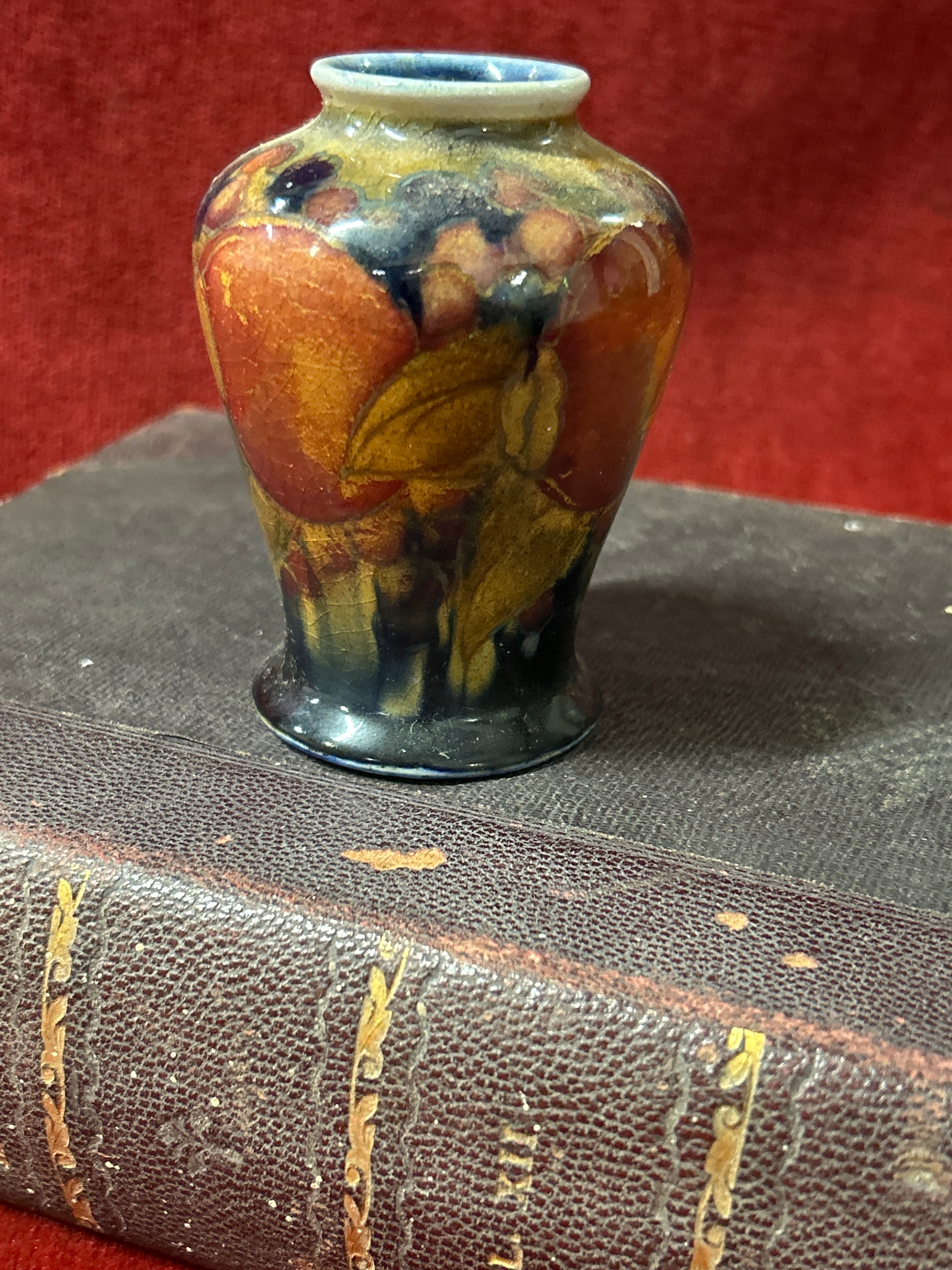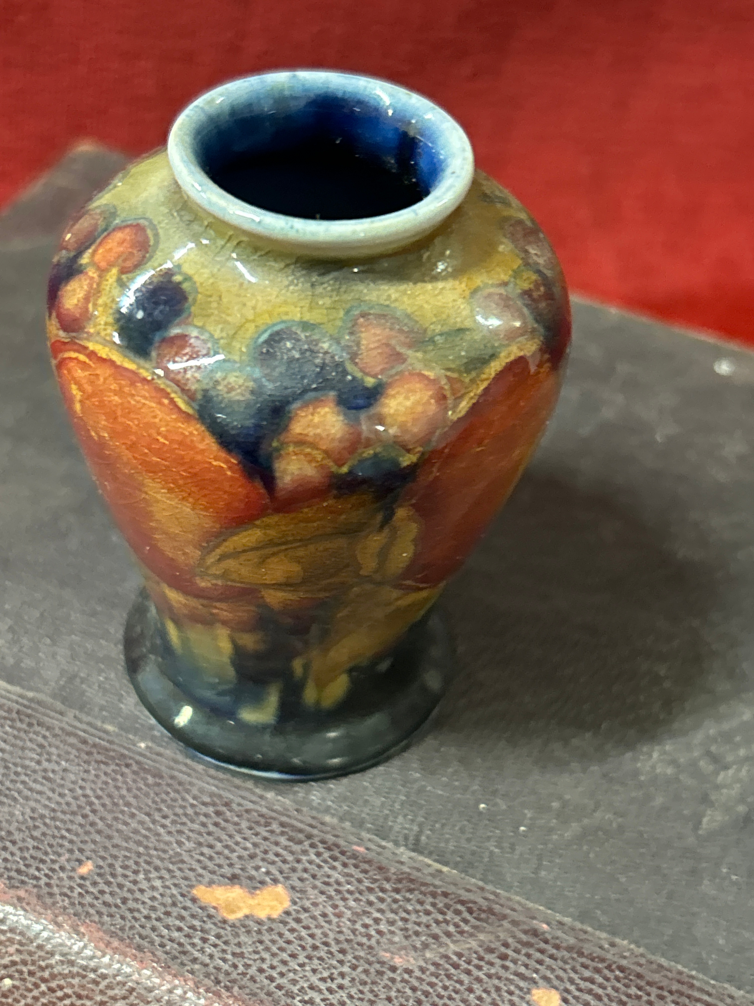 An early 20th Century Moorcroft vase in the Pomegranate pattern with impressed marks “MOORCROFT ENGLAND”. 8.5 cm h