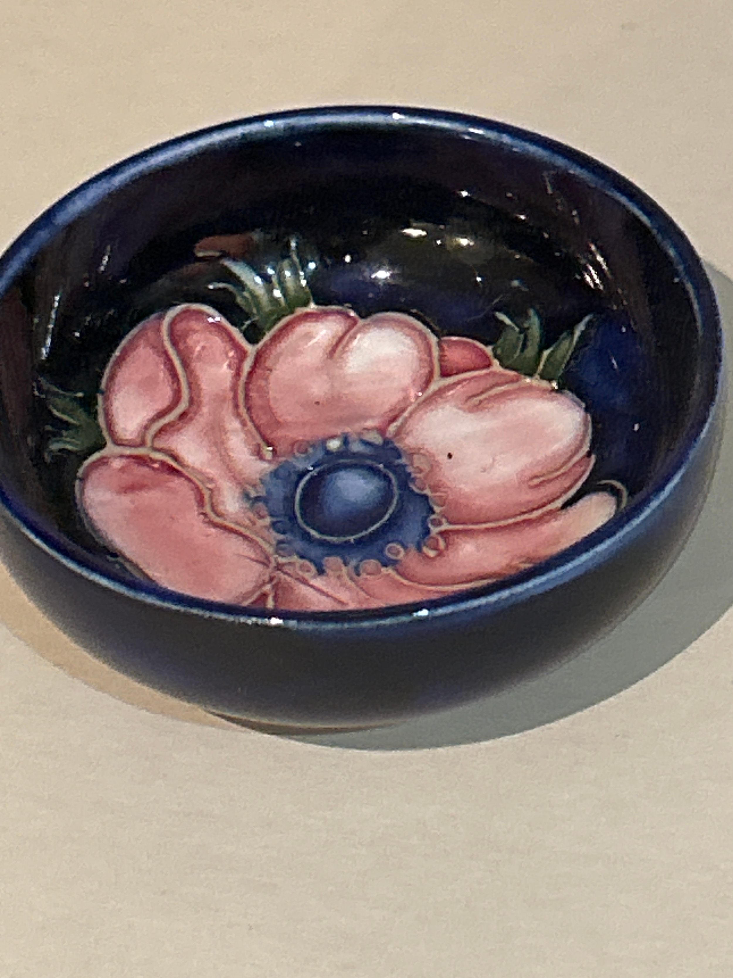 A vintage Moorcroft anemone pattern small bowl or pin dish, 7.5cm dia.