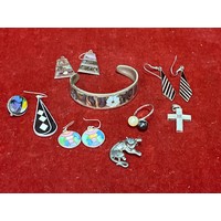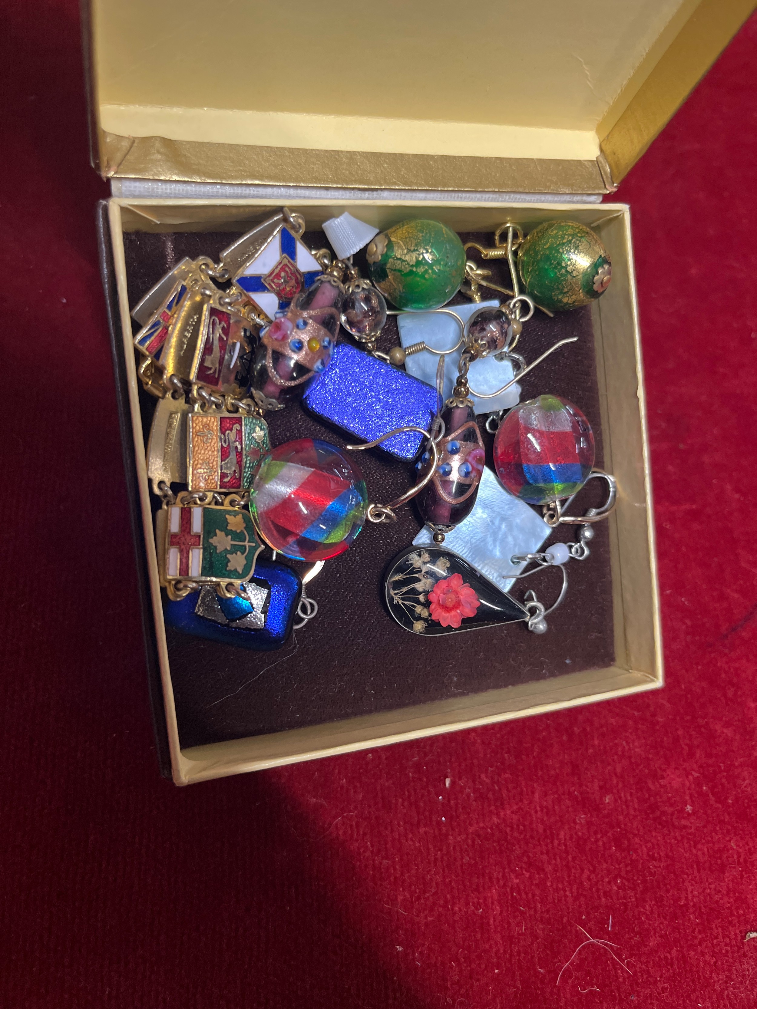 A BOX OF GLASS EARRINGS ALL LOOK NEW