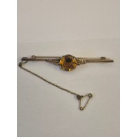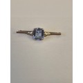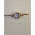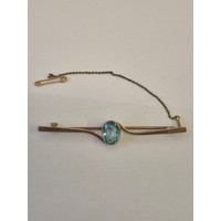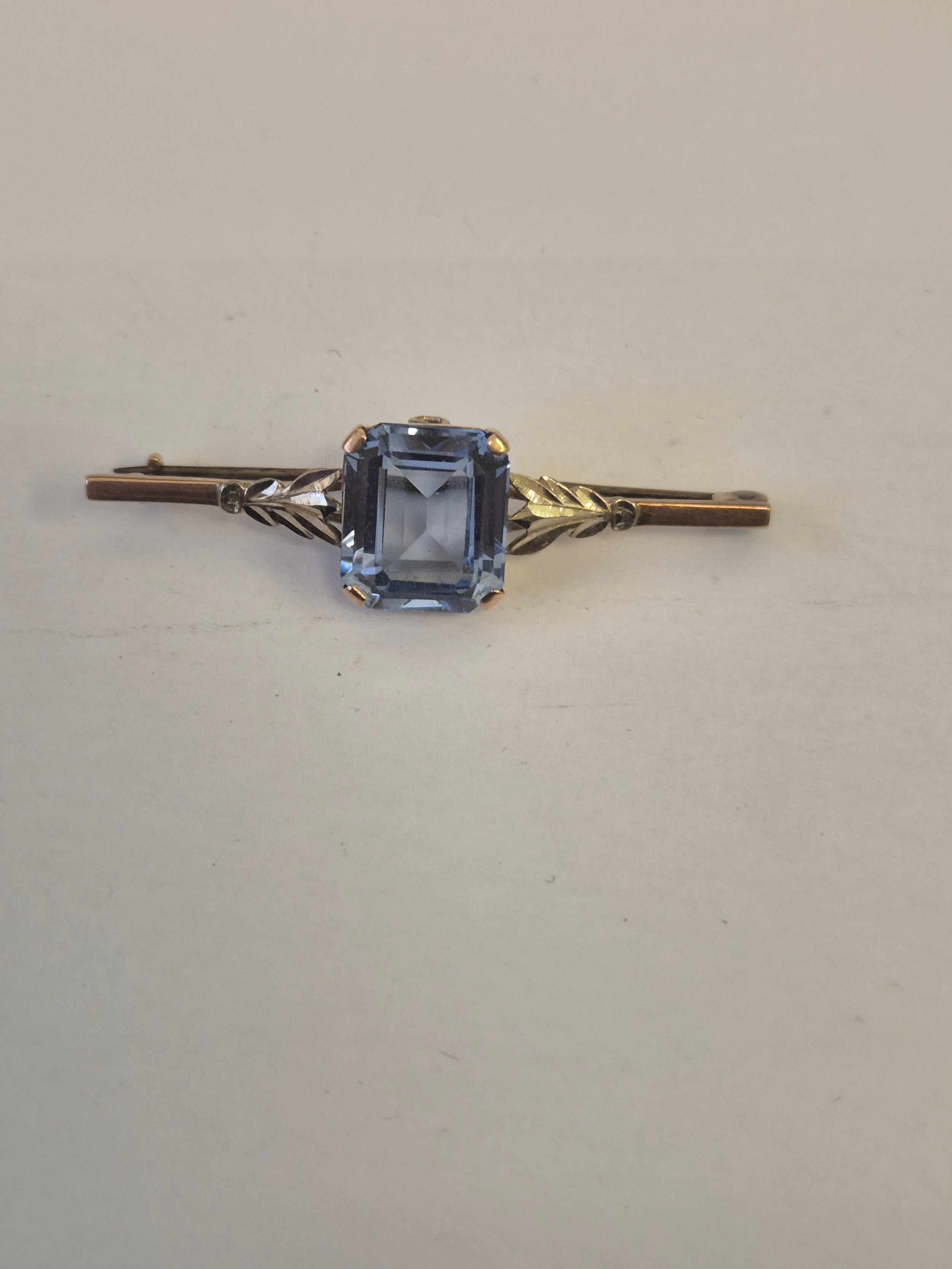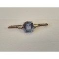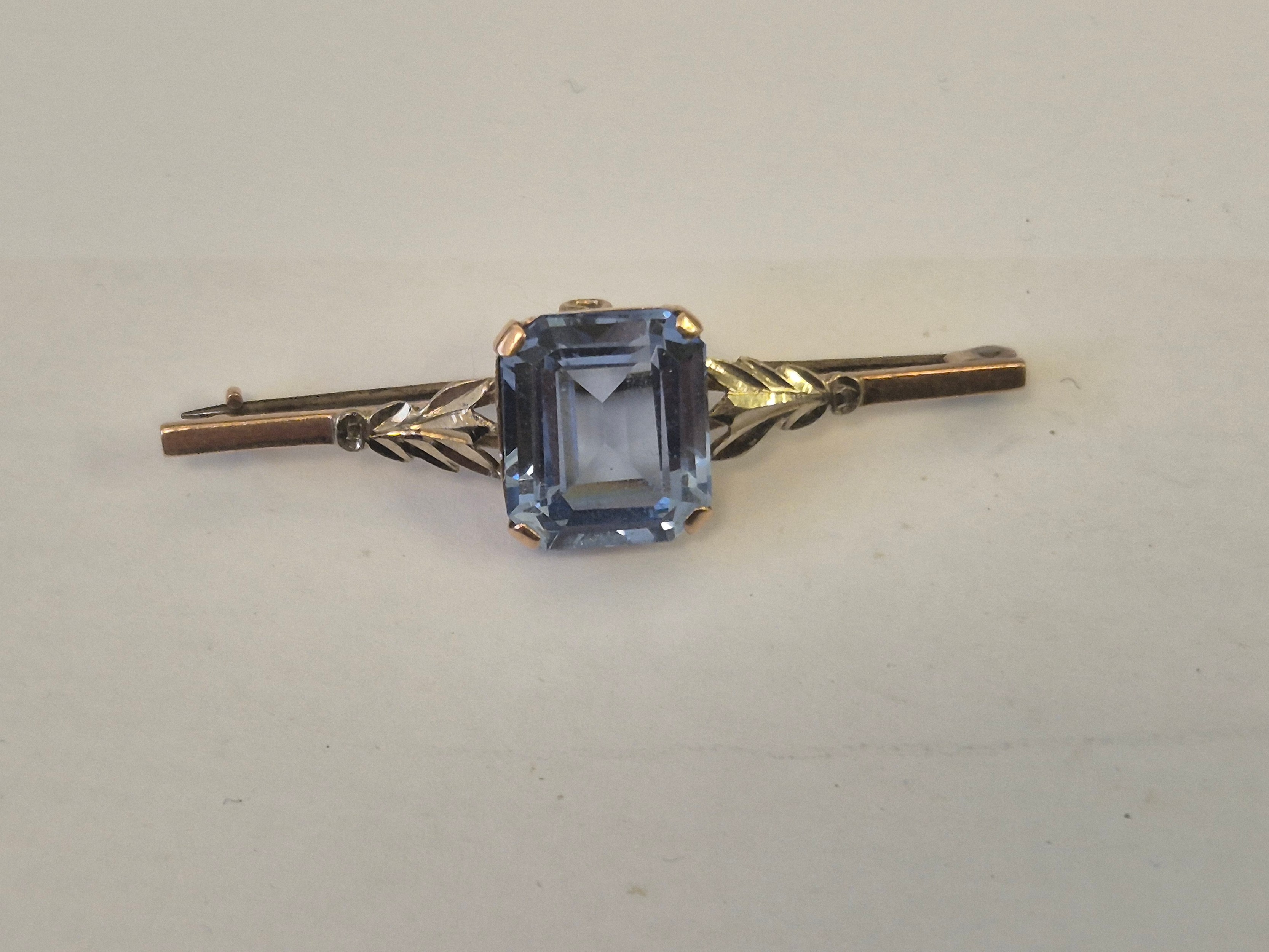 A 9CT ROSE GOLD BAR BROOCH WITH LARGE LIGHT BLUE TOPAZ STONE WEIGHT 6.01GR