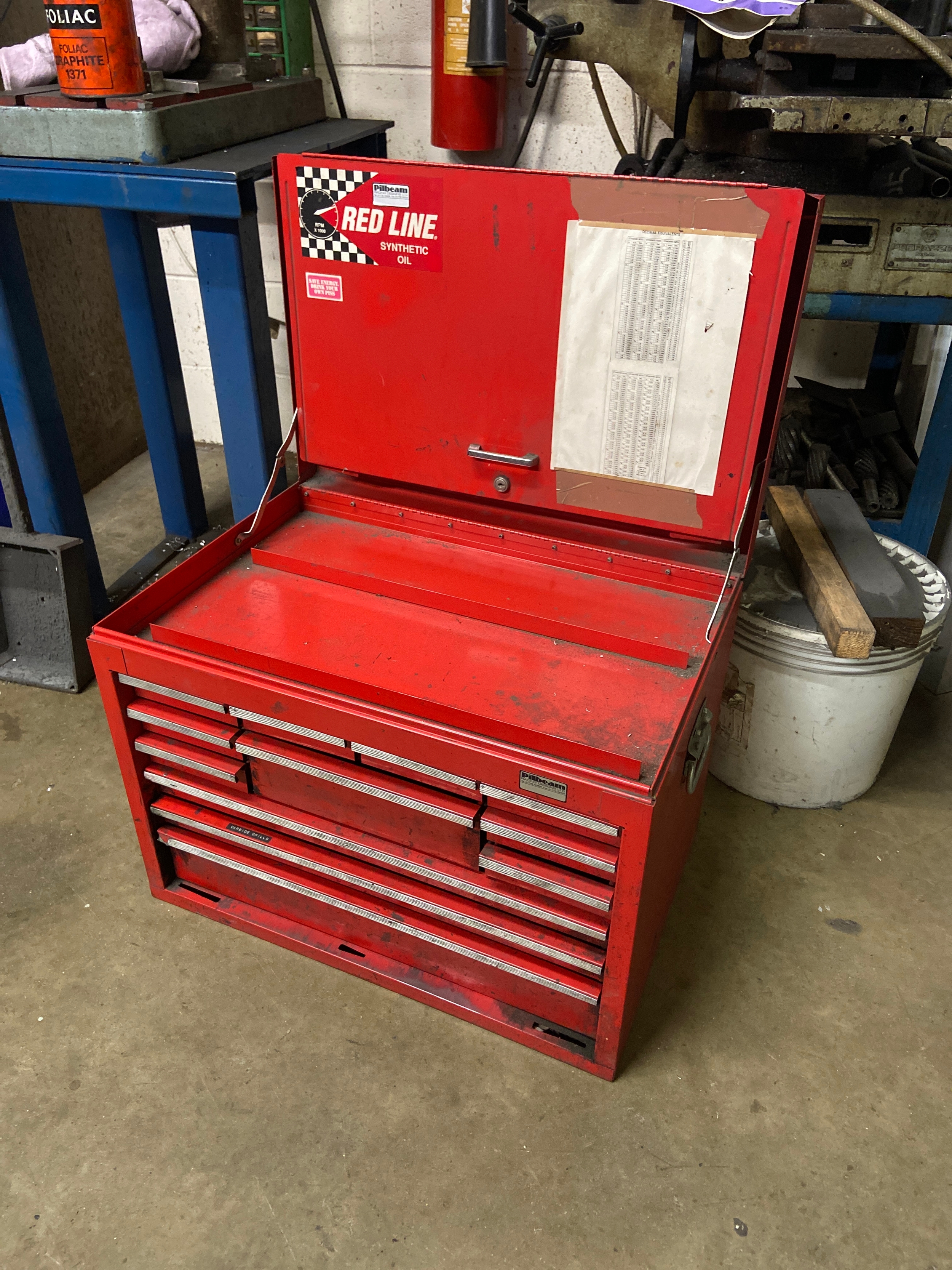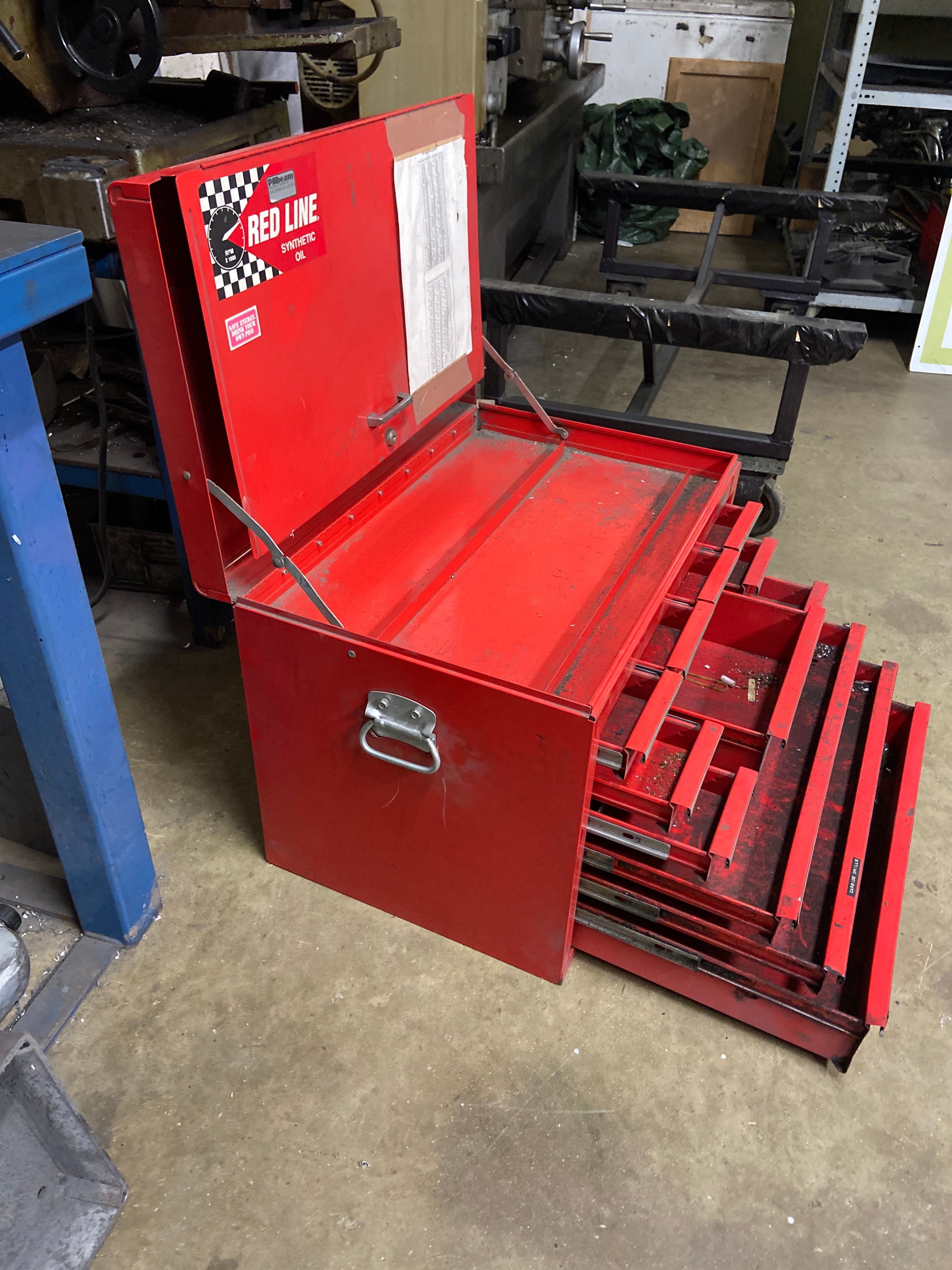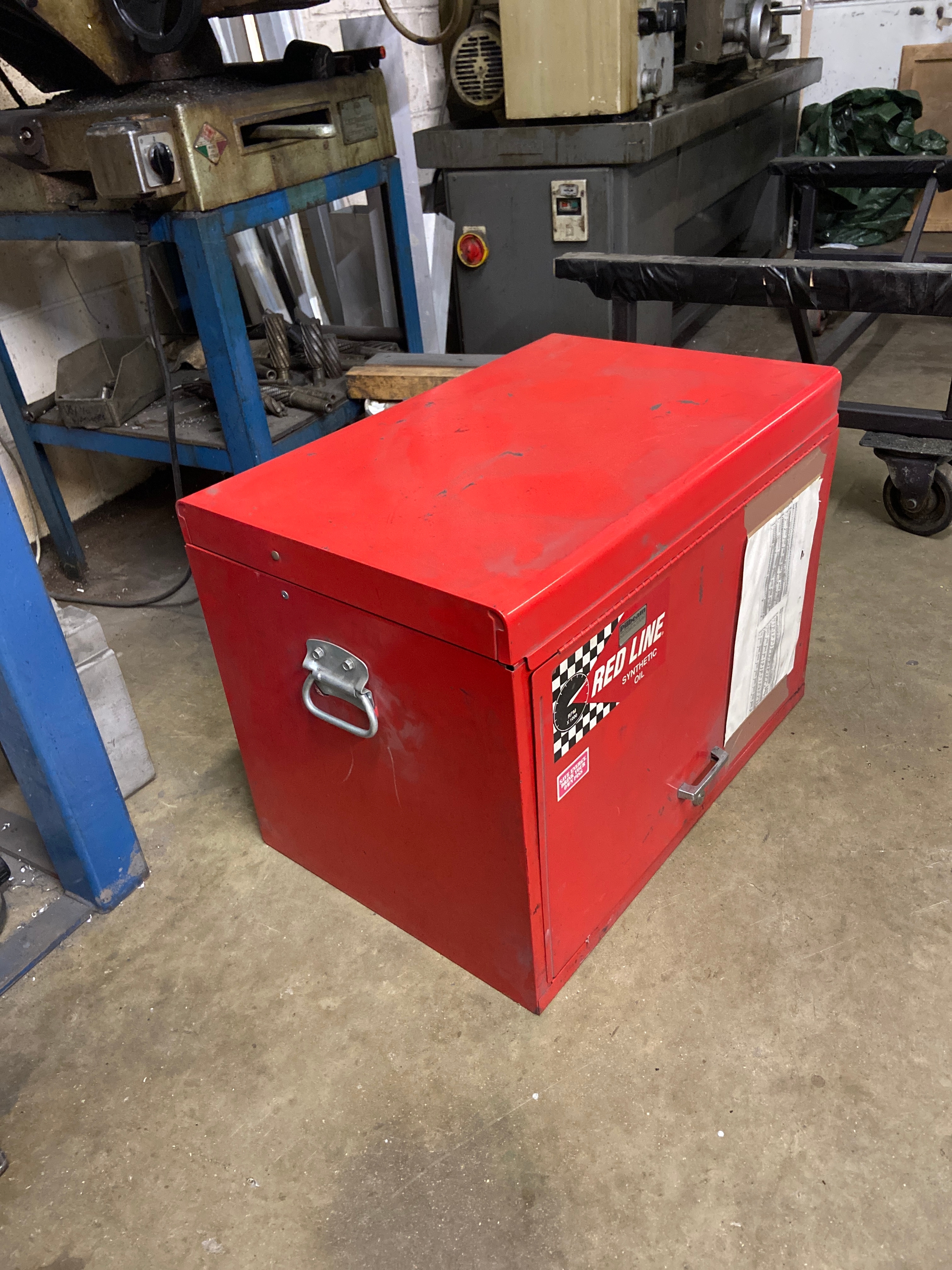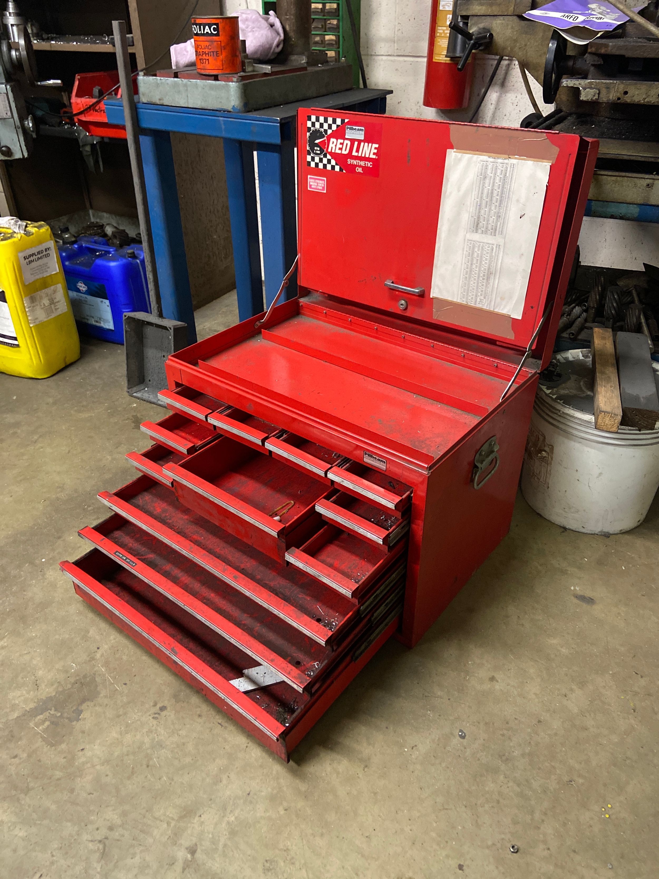 Vintage red Road Chest, likely a Kennedy Classic but no longer bearing any branding. Similarly good quality to a Snap On tool box.