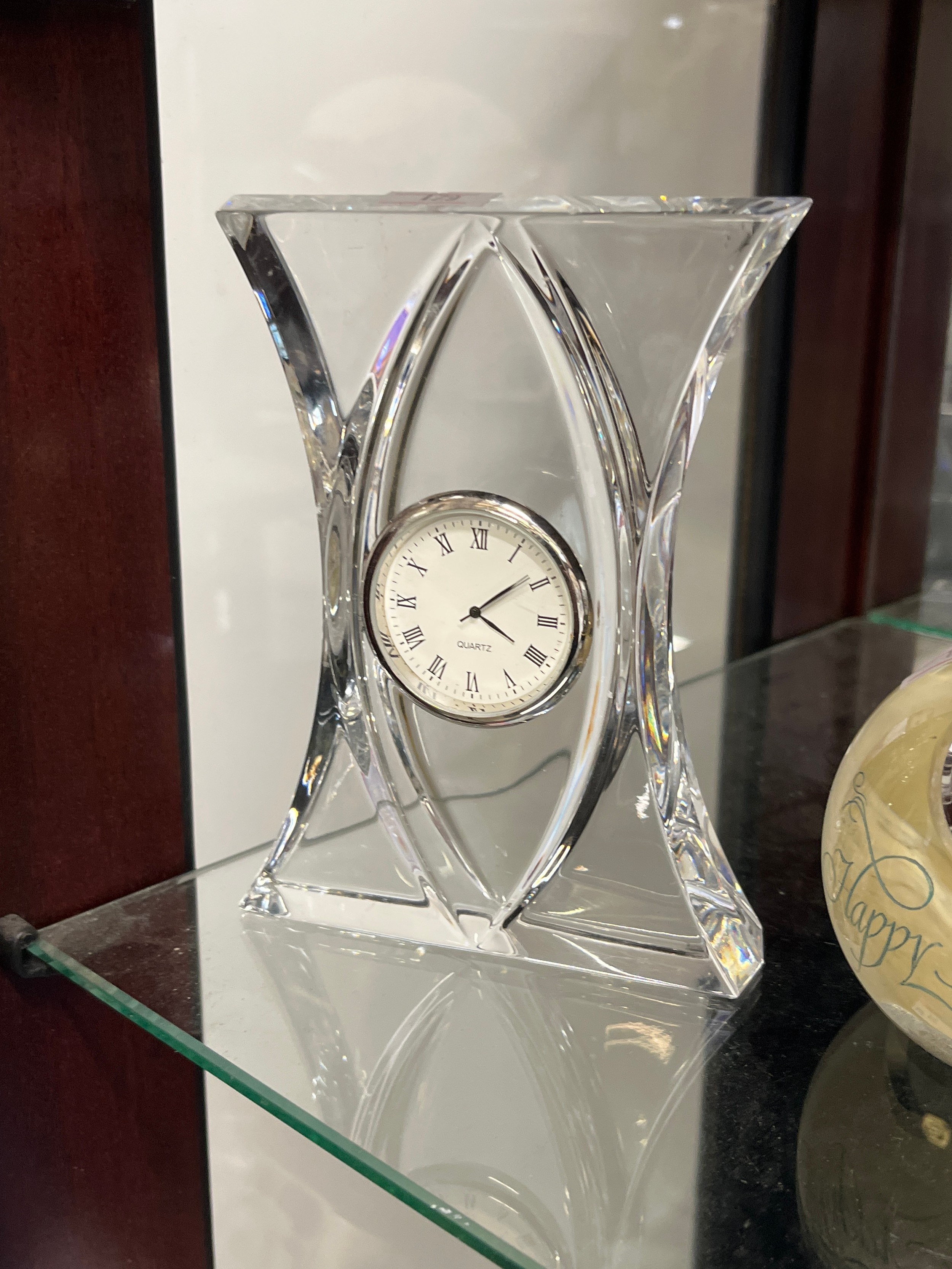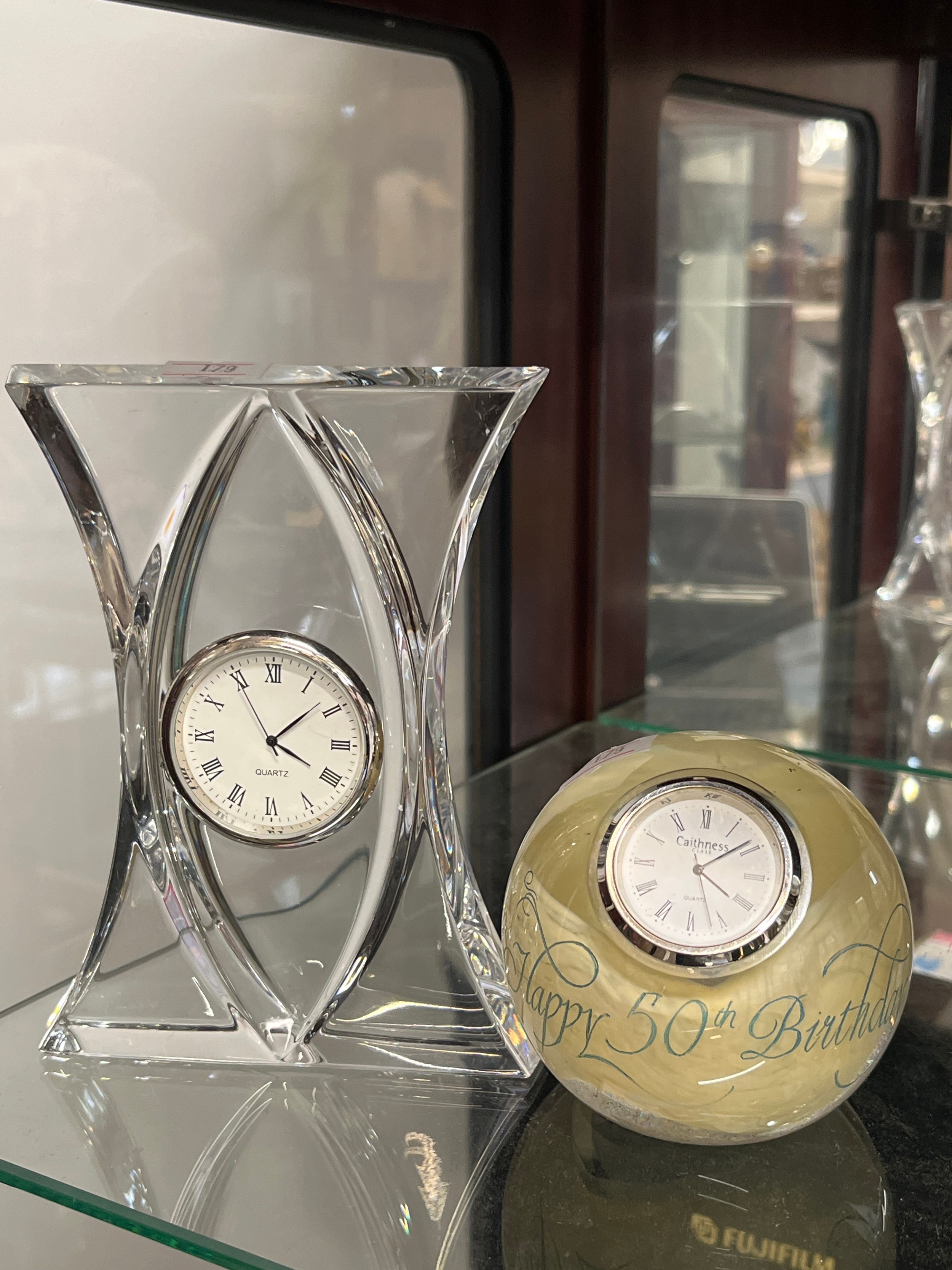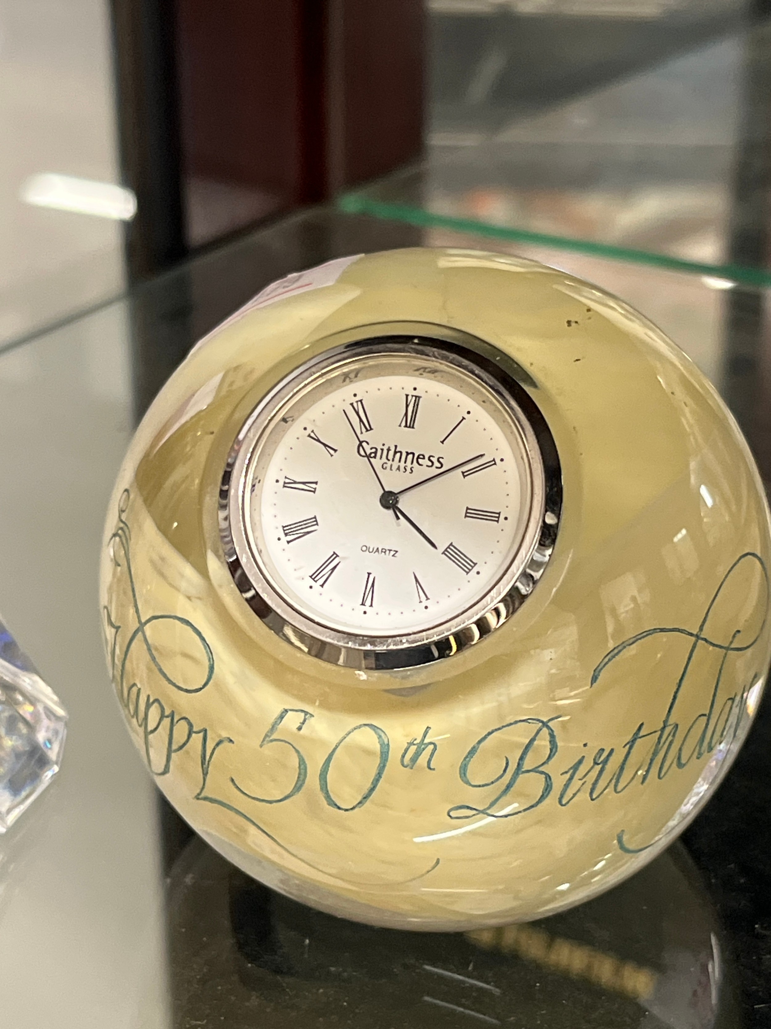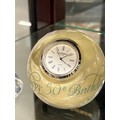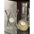 A CAITHNESS PAPER WEIGHT WITH A CLOCK PLUS A GLASS ART WORK WITH A CLOCK BOTH ARE WORKING