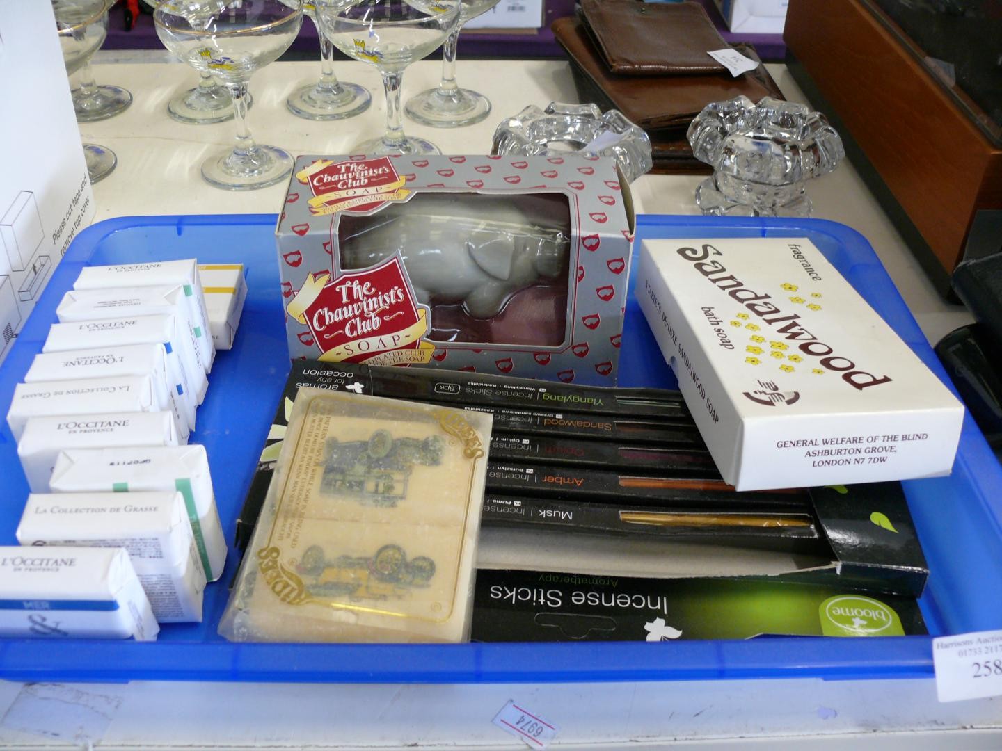 TRAY OF VARIOUS VINTAGE BOXED SOAP AND INCENSE STICKS