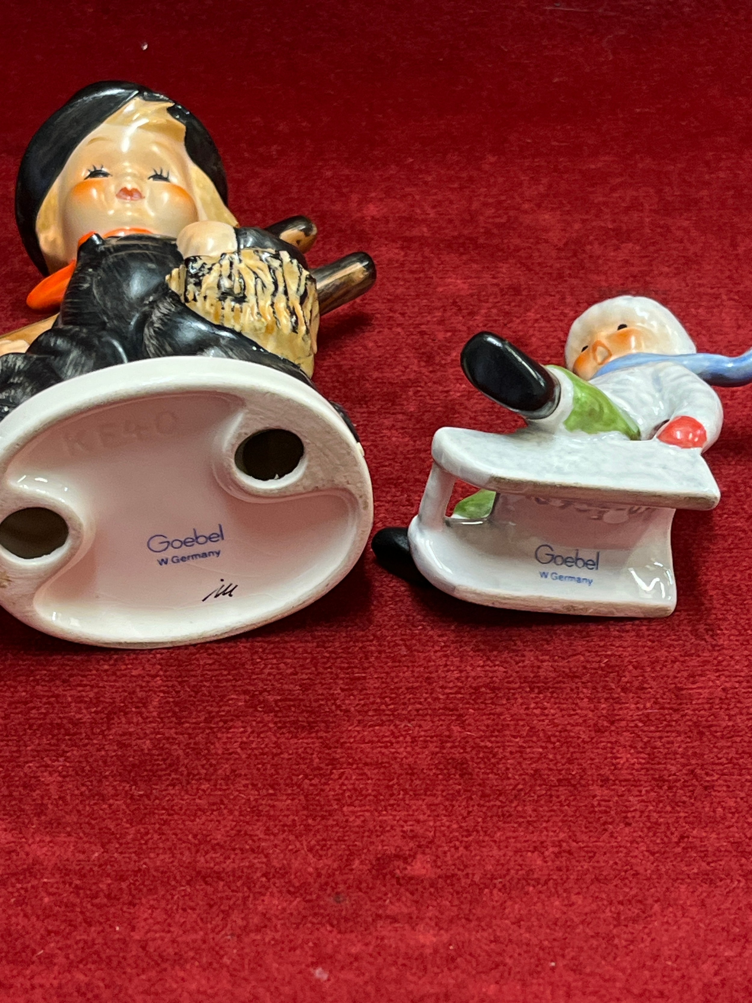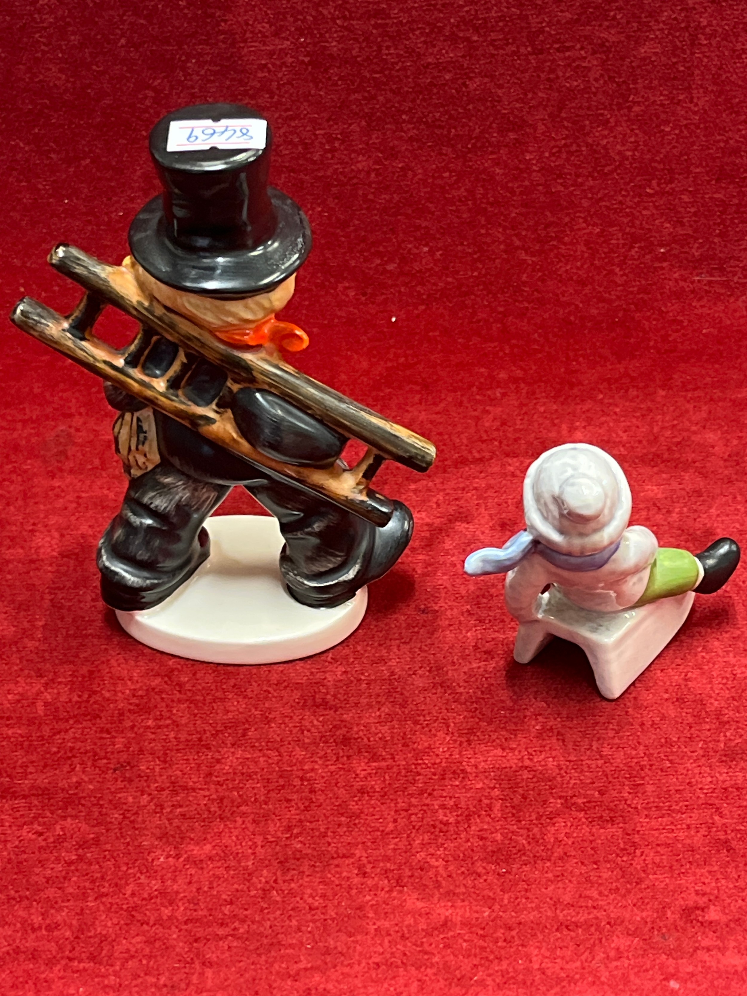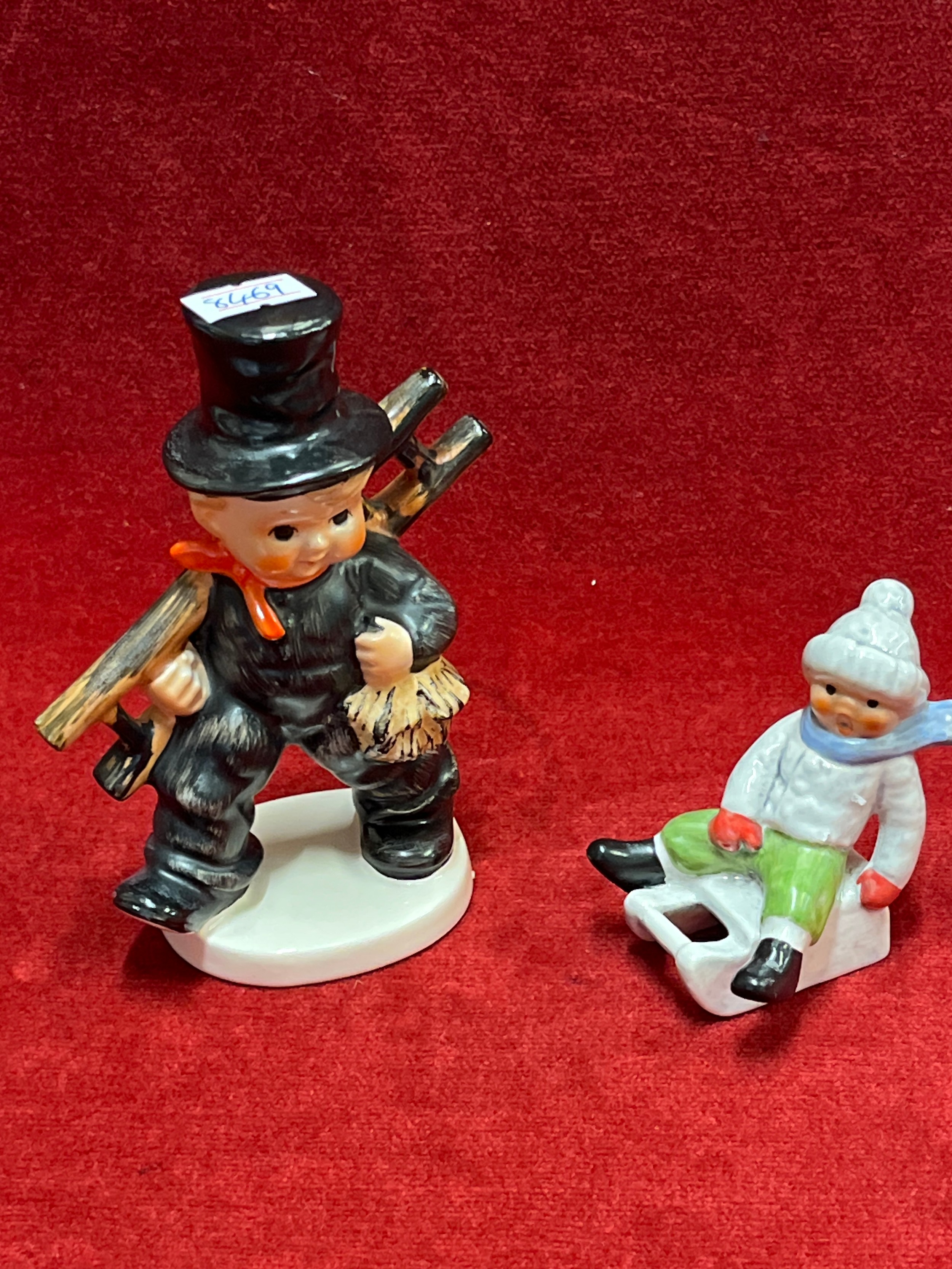 2 GOEBEL FIGURES A BOY ON SLEDGE AND LARGE CHIMNEY SWEEP