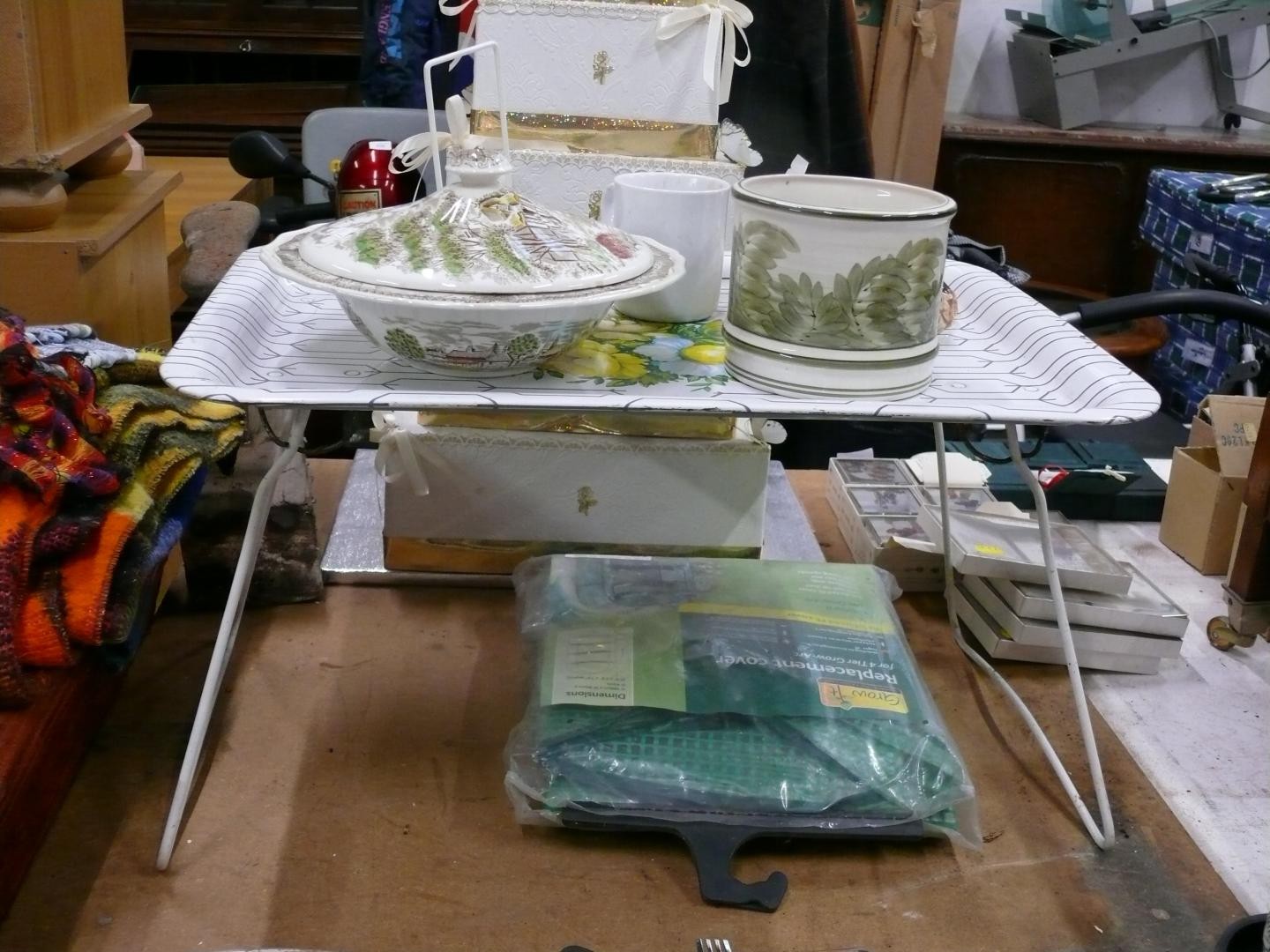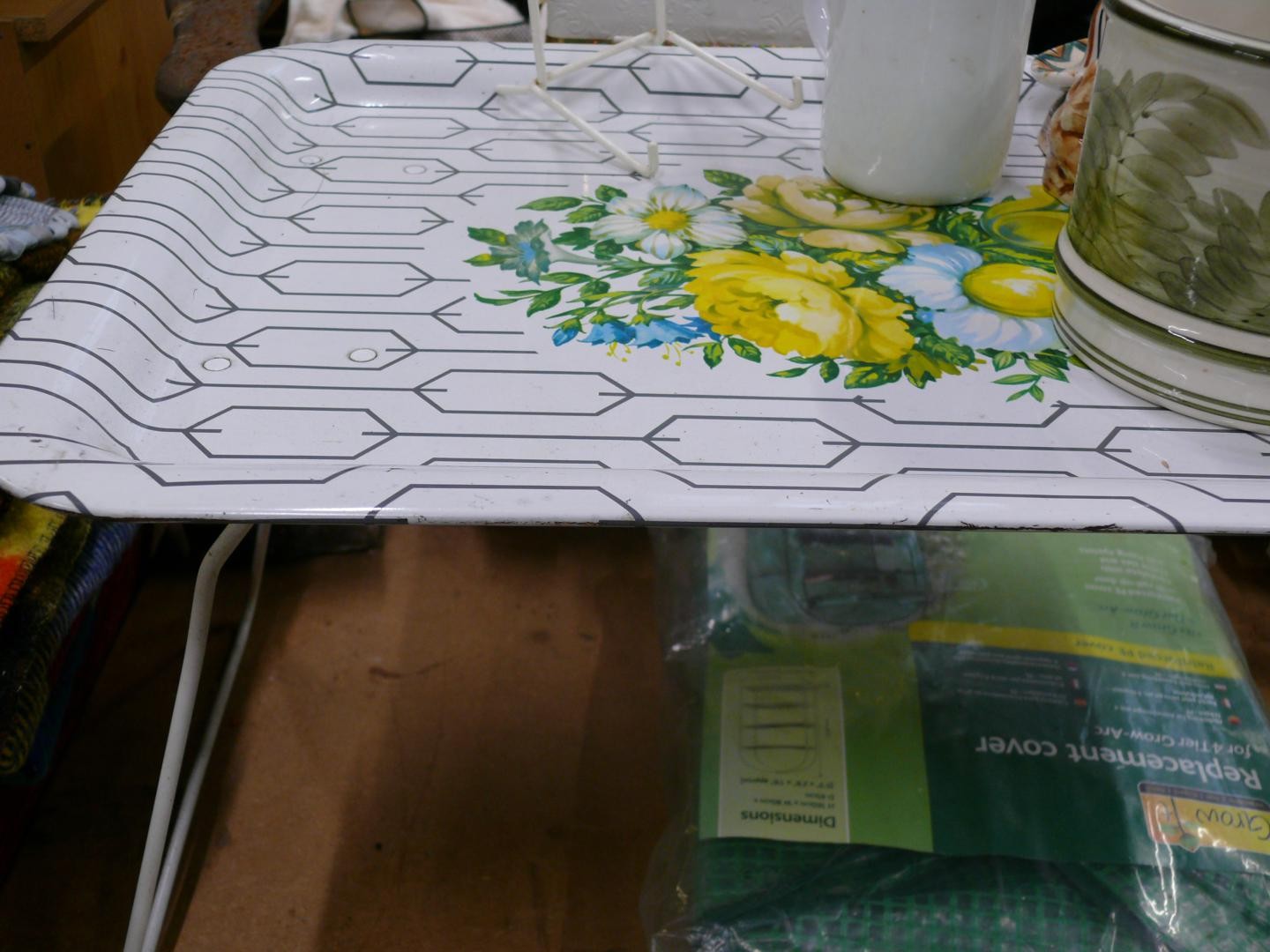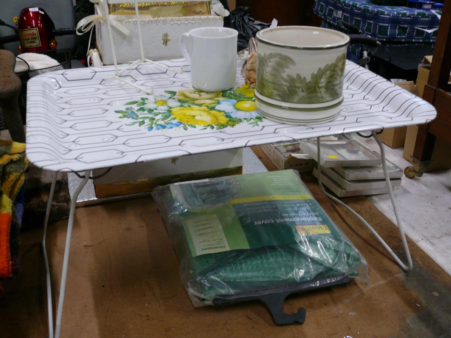 Retro enamel serving tray with metal folding legs