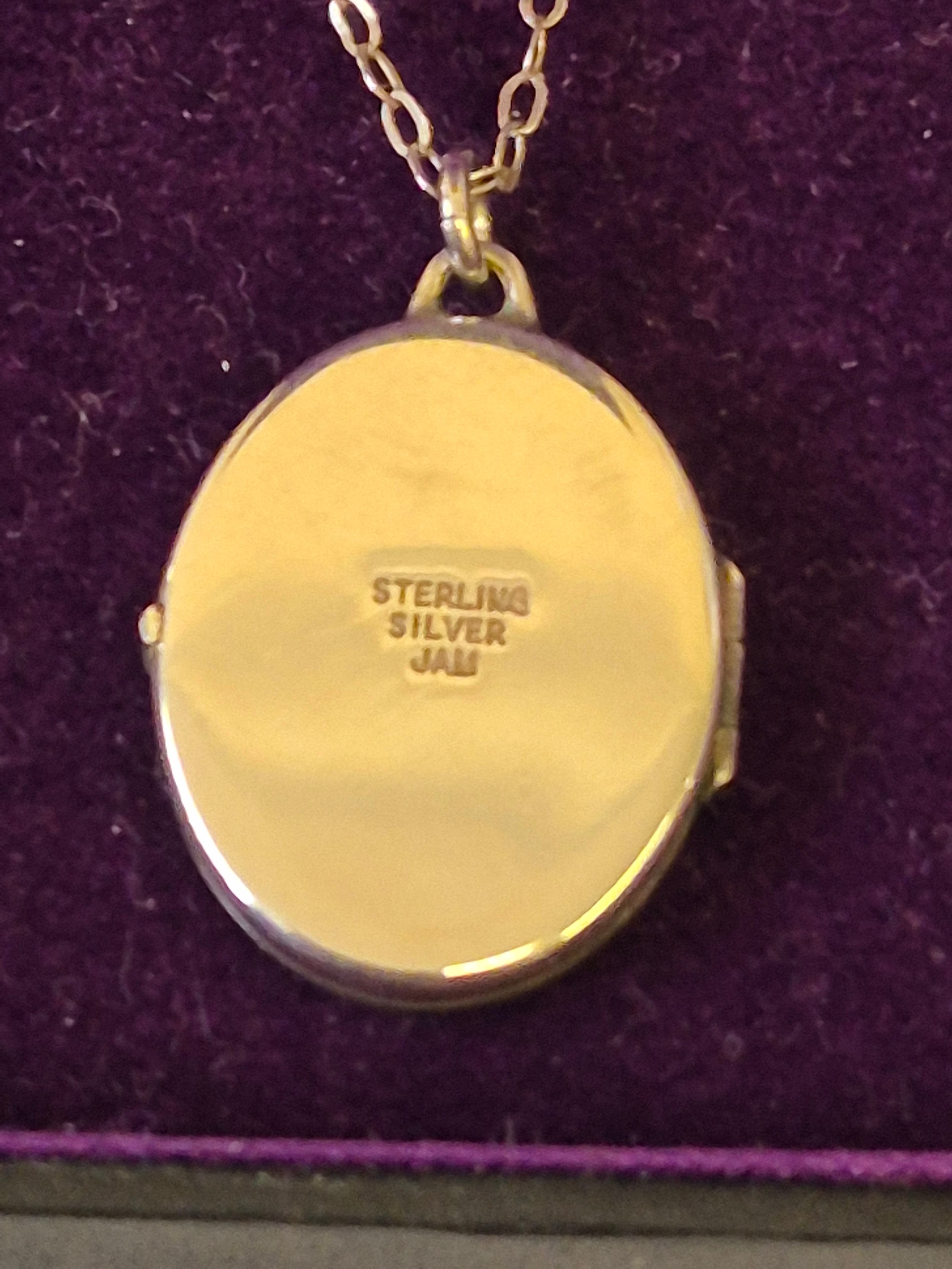 A SOLID SILVER BY ST JUSTIN LOCKET ON A CHAIN ORIGINAL GIFT BOX