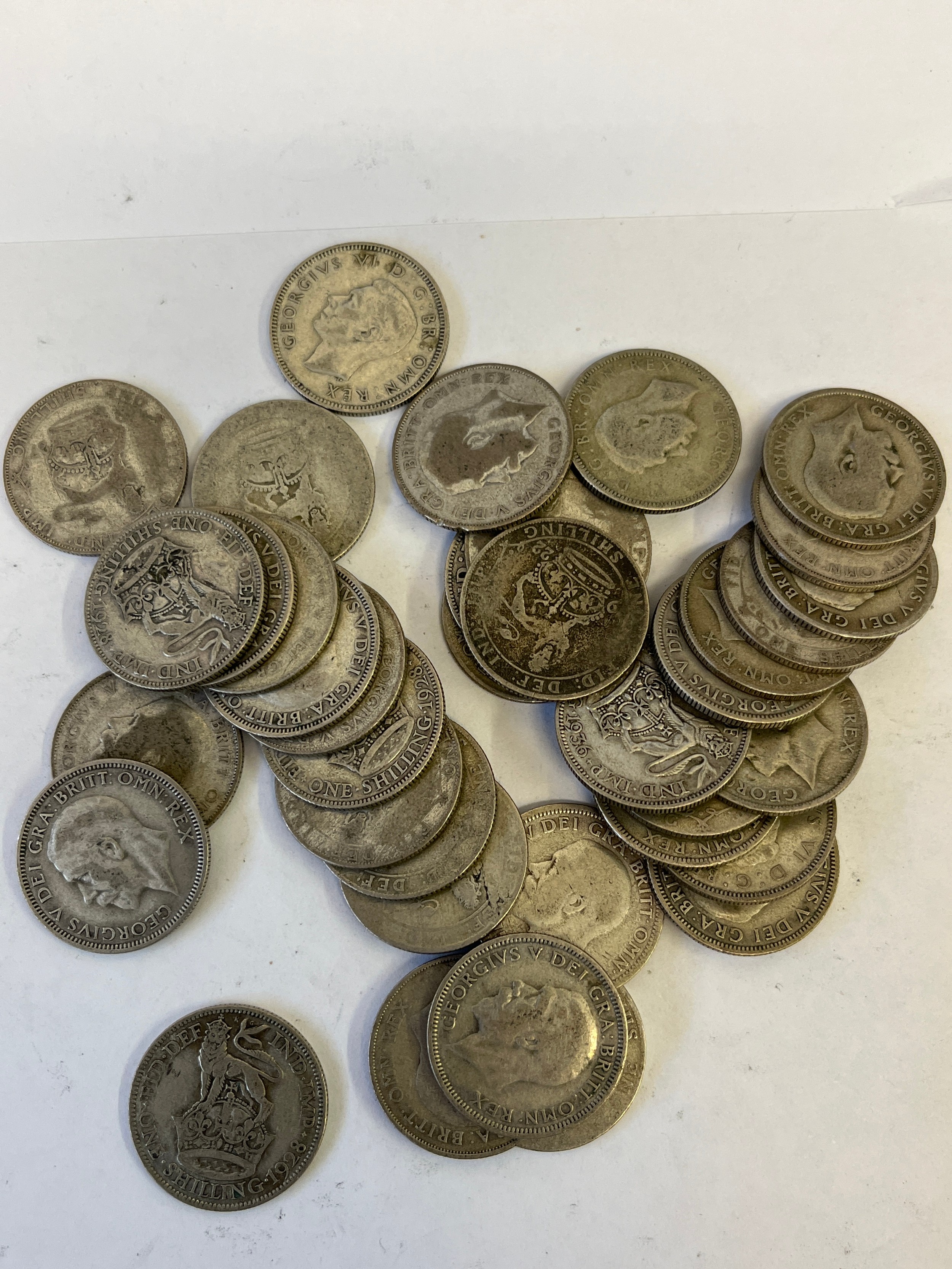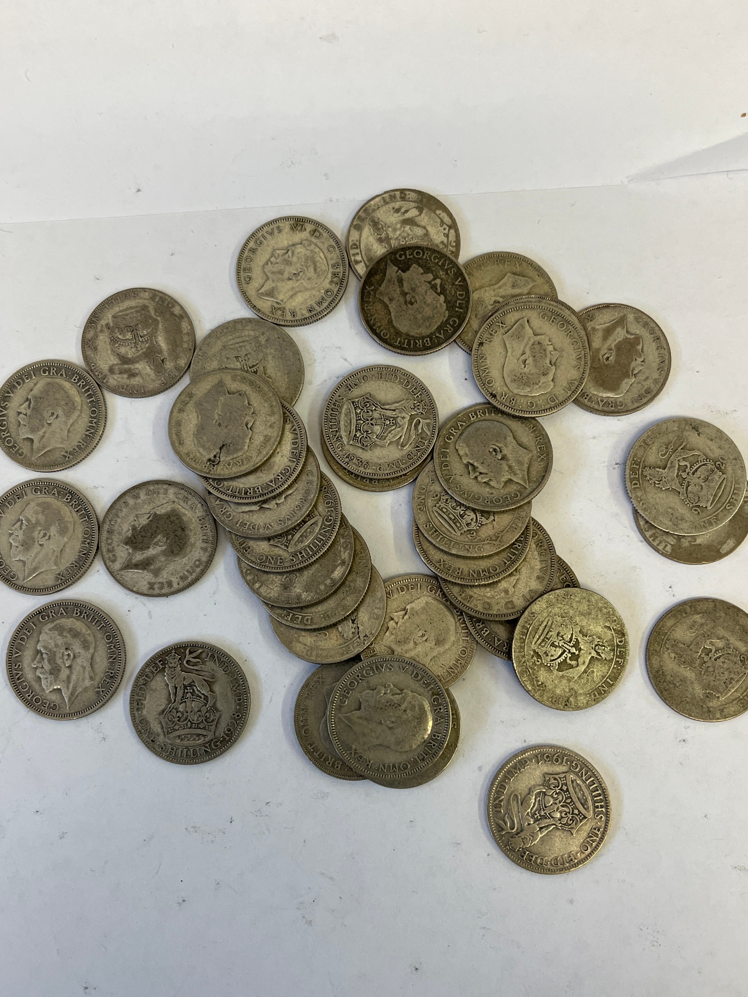 COLLECTION OF 1 SHILLING COINS 37 IN ALL WEIGHT 201GR GEORGE V