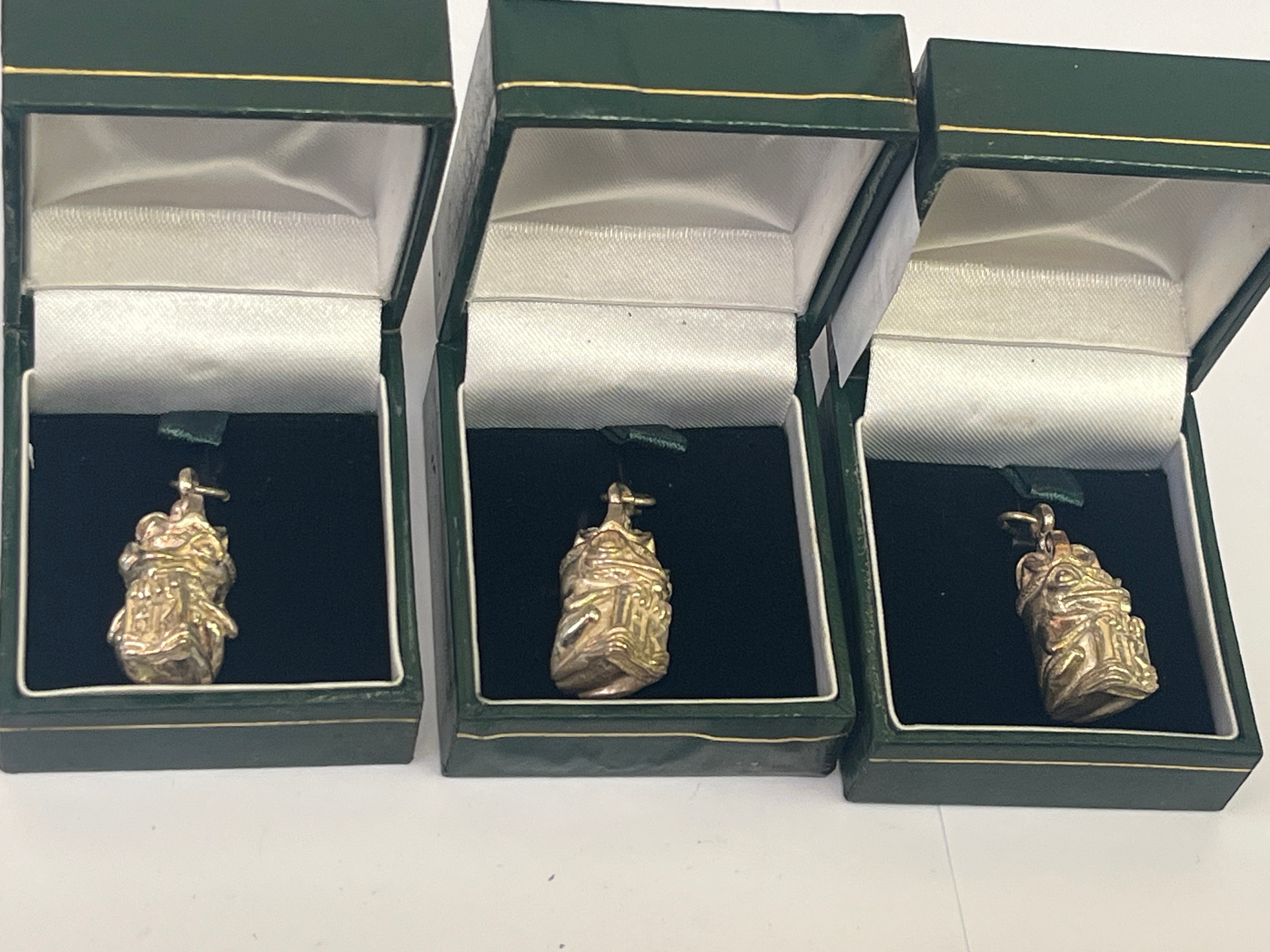 HARMONY KINGDOM SOLID SILVER 3 KING FROG PENDANTS HALLMARKED SOME BOXES DAMAGED
