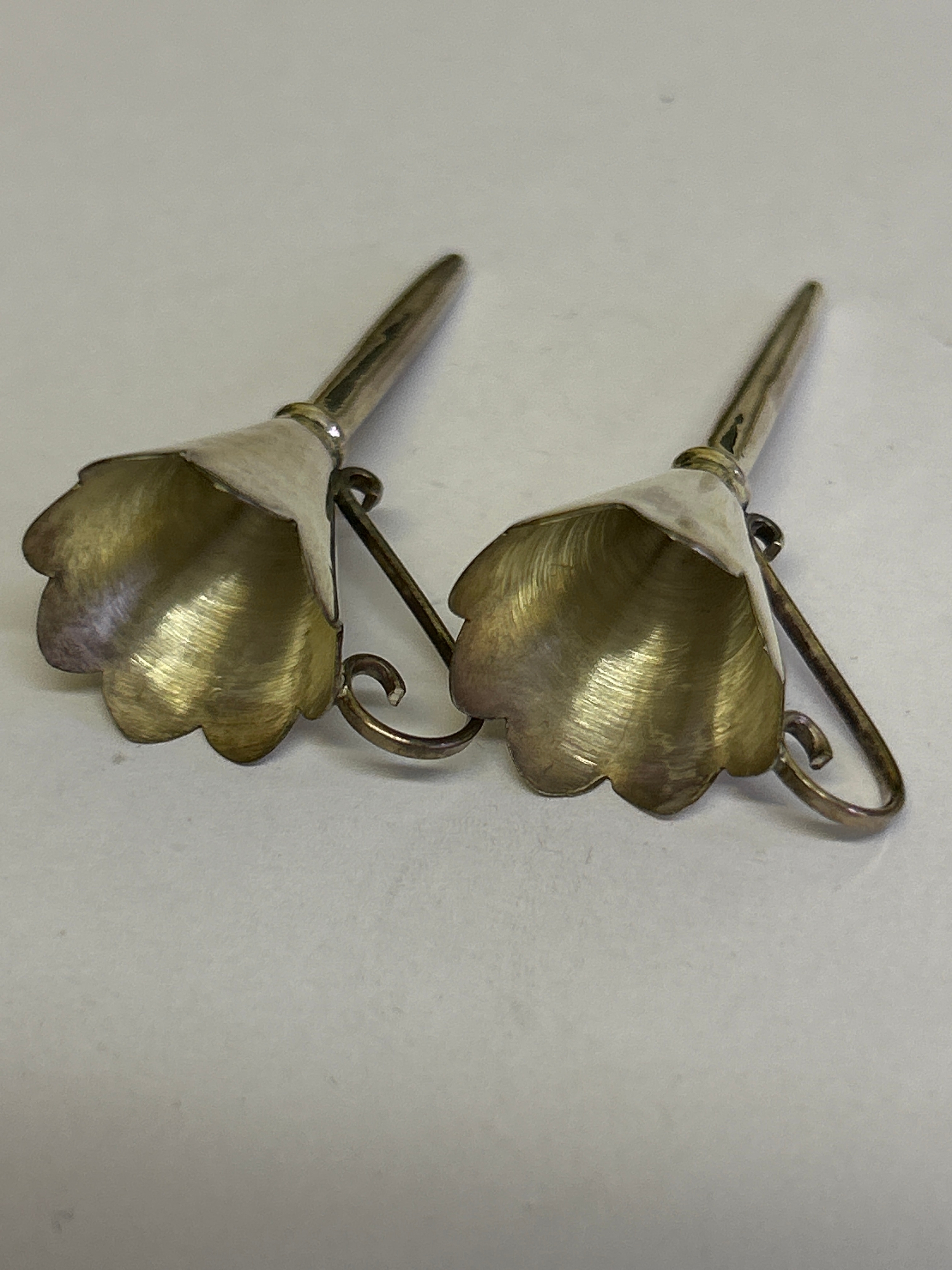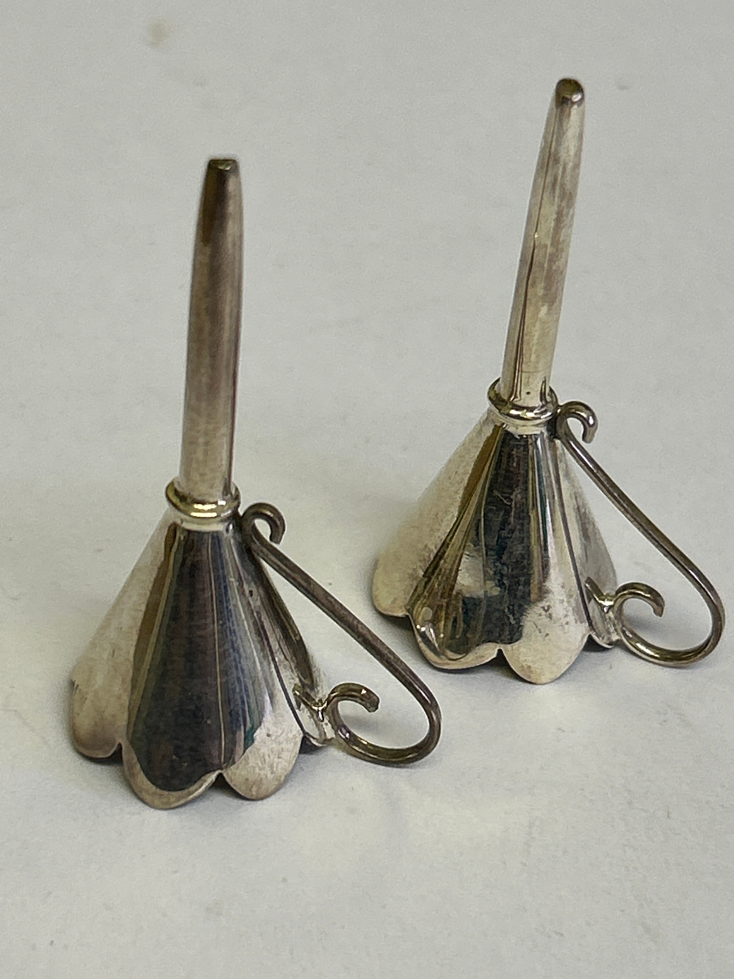 Pair of perfume funnels. Likely silver but unmarked. 4cm