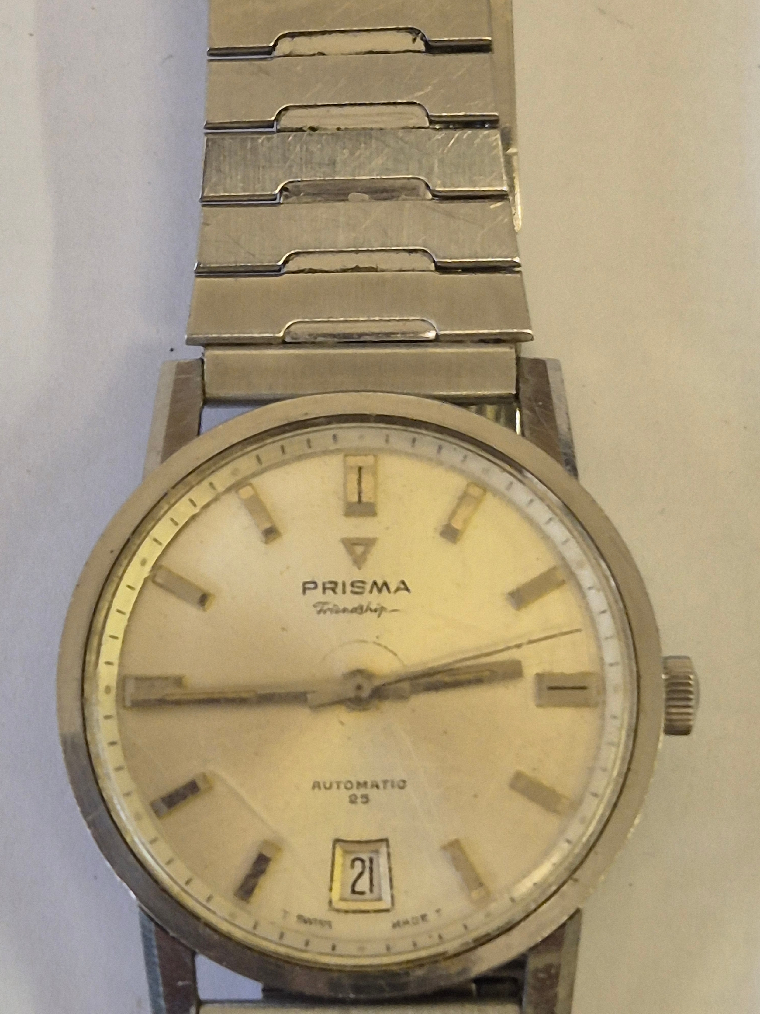 GENTS PRISMA STAINLESS 25 JEWEL AUTOMATIC WATCH FRIENDSHIP MODEL WITH DATE IN WORKING ORDER