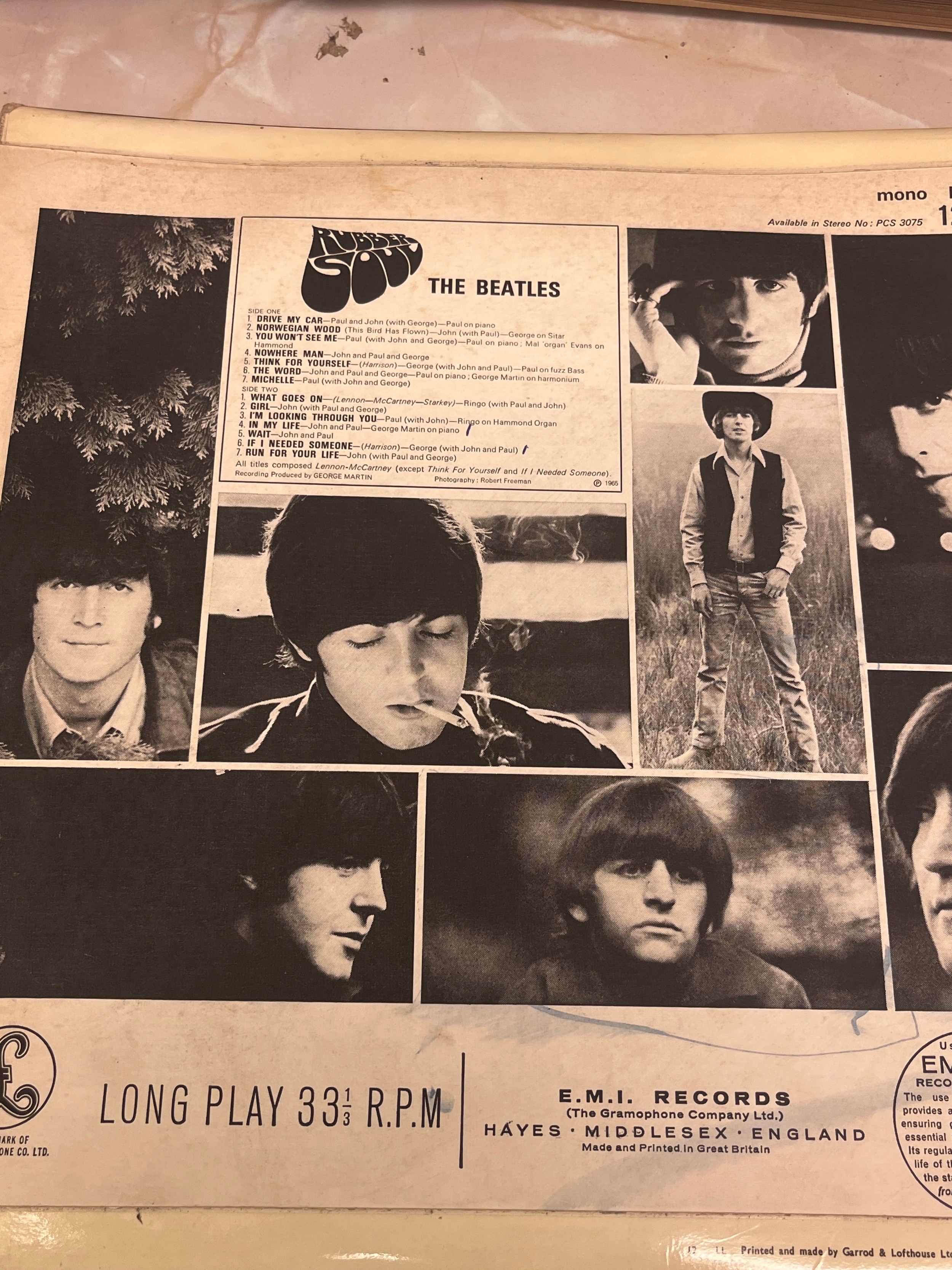 1965 Beatles LP "Rubber Soul" PMC 1267 XEX 579-4 XEX580-4 KT Tax Code Side 2 Side 1 3 RGD Side 2 3 AGG with 4 crossed out