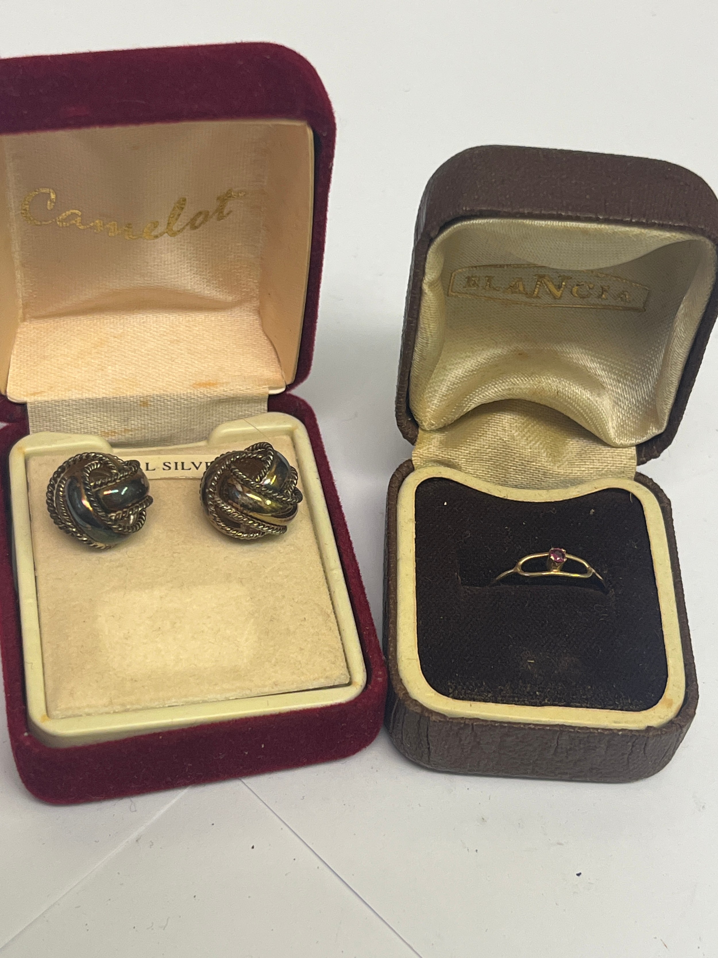 9ct gold and ruby small ring size I plus a pair of silver earrings